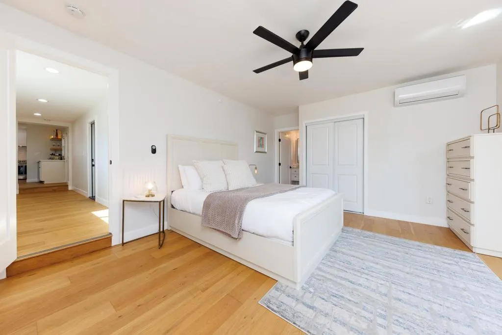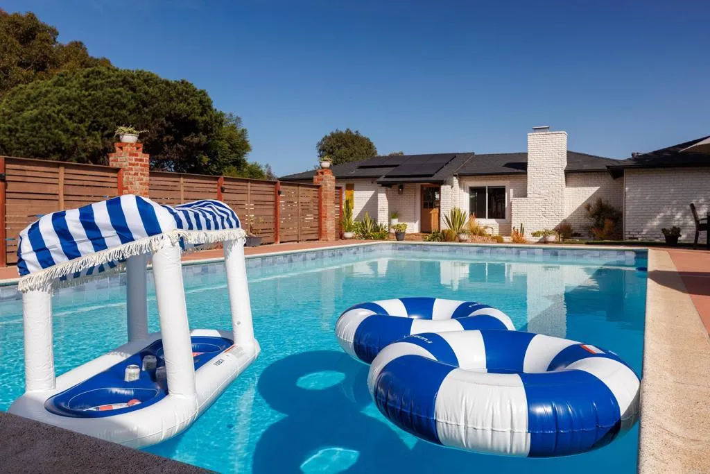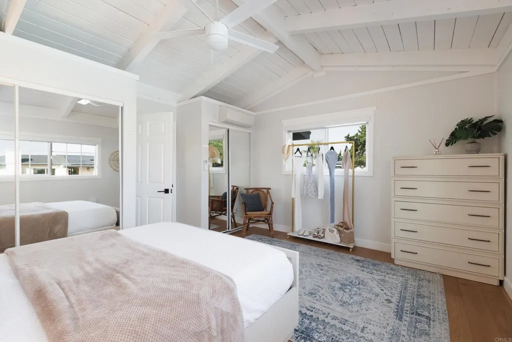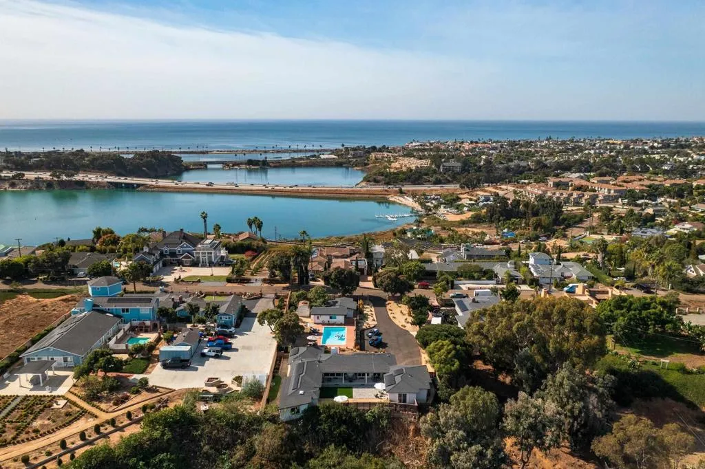 Perched high above the Agua Hedionda Lagoon on one of the most desirable streets of Carlsbad only 1.5 mile walk or bike ride to Tamarack Beach, stands this Chic Modern Coastal Property. Originally built in 1946 and completely renovated, offering two detached homes, including a full 910 sq ft 1 bed/1 bath guest house/ADU with full kitchen, separate laundry hook ups, living room and office or yoga studio. Ocean and Lagoon Views are enjoyed from the kitchen and office as well from the private exclusive yard, large enough for entertaining and gardening, and offers dedicated parking. This is the perfect guest quarters, multi generational or an incredible short term rental opportunity within Carlsbads Short Term permissible zone. The main house exhibits an elegant modern style, open floor plan and indoor out-door living space, featuring 4 bedrooms with en-suite baths, including Jr and Master suites both with their own private entrances on opposite sides of the home. An attached double car garage and an amazing backyard with easterly rolling hill views from a private covered porch and grass space for family and entertaining. A beautiful renovated swimming pool sits between the main house and the guest house allowing for another entertaining area. A new solar system and new tankless water heaters have recently been installed. This estate combines classic charm with modern lifestyle conveniences, offering endless opportunities for income-generating or multi generational mini resort living.