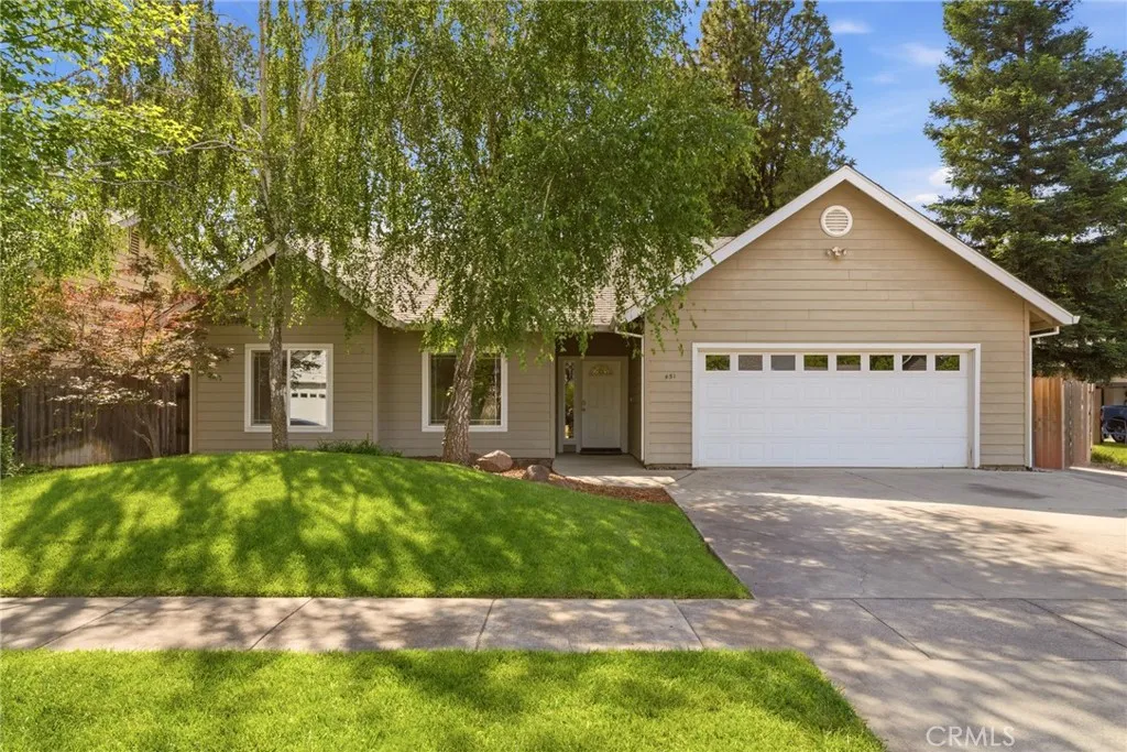 Hidden in plain sight in central Chico—minutes to Enloe Medical Center, California State University Chico, food, shopping, and everything you actually use—this one just makes sense. Cul-de-sac living = no cut-through traffic, no chaos. Mature trees out front, a spacious driveway, and gated side yard access (boat, trailer, toy potential?). Built for efficiency, this home features 26 solar panels, battery backup, and R45 insulation—helping keep those monthly costs low, and comfort high. Inside, it's bright, open, and built for real life. Tall ceilings, easy flow, and a gas fireplace that hits just right. The kitchen offers granite tiled counters, stainless appliances, newer sink, and an island built for coffee mornings, quick dinners, late-night chats. The primary suite brings the style—wood slat accent wall, backyard access, and a clean, modern ensuite with hex tile floors, walk-in shower, newer vanity, and a legit walk-in closet. Backyard = low maintenance, high enjoyment. Covered patio, storage shed, and room to relax without the weekend workload. And the garage? Fully dialed with 220V + mini-split (2024) perfect for your gym, workshop, side hustle HQ—you choose. Affordable. Energy-smart. Move-in ready. Don’t overthink this one.