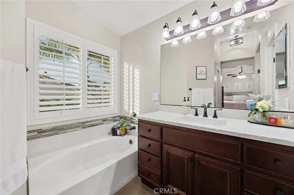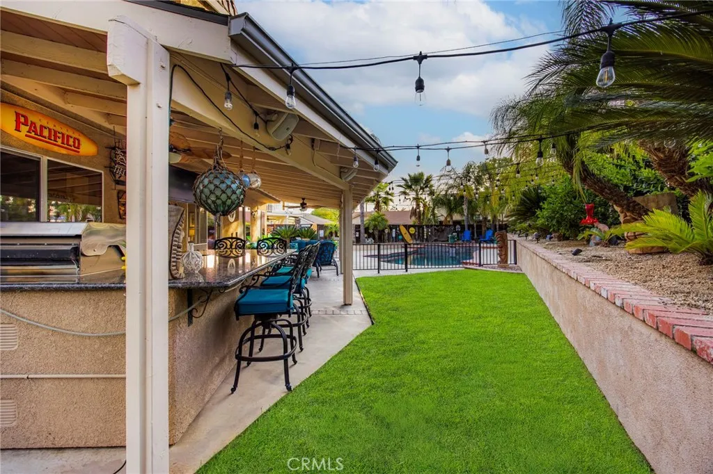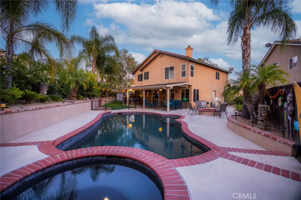 Welcome Home! Exceptional POOL home, completely renovated, located at the end of cul-de-sac on a premium lot in one of Riverside’s most desirable gated communities. From the moment you arrive, the home’s impeccable curb appeal and premium lot set the tone for what awaits inside. Step through the grand entry and experience soaring ceilings, expansive natural light, and custom double-sided staircase that creates an unforgettable first impression. Thoughtfully designed with modern elegance, entertaining and functionality in mind, this home offers formal living and dining spaces that seamlessly transition into everyday comfort. At the heart of the home lies a beautifully remodeled kitchen—featuring custom white cabinetry, granite countertops, farmhouse sink perfectly positioned beneath a window overlooking the backyard oasis, and a layout that opens effortlessly into the breakfast nook and inviting family room anchored by a stone fireplace and enhanced with surround sound and views from every window. Upstairs, 4 spacious bedrooms and 2 tastefully remodeled bathrooms provide both comfort and sophistication. The primary suite is a true retreat—generous in size with dual walk-in closets and a spa-inspired bathroom designed for relaxation. Step outside and discover an entertainer’s dream. The backyard has been curated for unforgettable moments, complete with an expansive covered patio, custom outdoor kitchen and bar, gas firepit, sparkling pool and spa, and lush grassy areas framed by tropical, low-maintenance landscaping. Whether hosting large gatherings or enjoying quiet evenings, this space creates that everyday vacation feel. Additional highlights include plantation shutters, upgraded windows, newer HVAC, and 2 whole house fans—bringing both style and efficiency to everyday living. Enjoy access to private community amenities including a park, picnic areas with BBQs, and tennis courts—all just moments from top-rated schools, shopping, dining, entertainment, and easy freeway access to the 215, 60, and 91. An exceptional opportunity to own a completely turnkey pool home in the heart of Mission Grove Community. This is a home you do not want to miss.