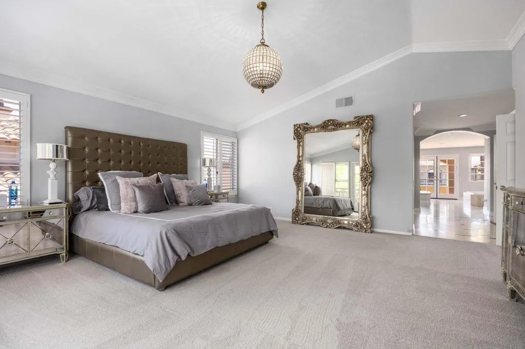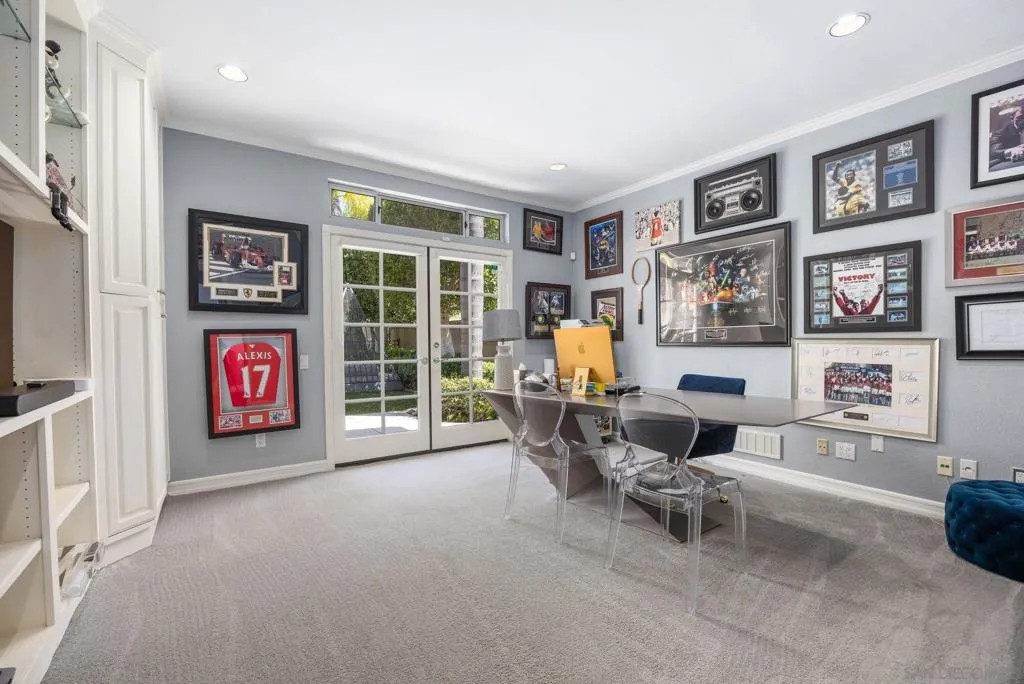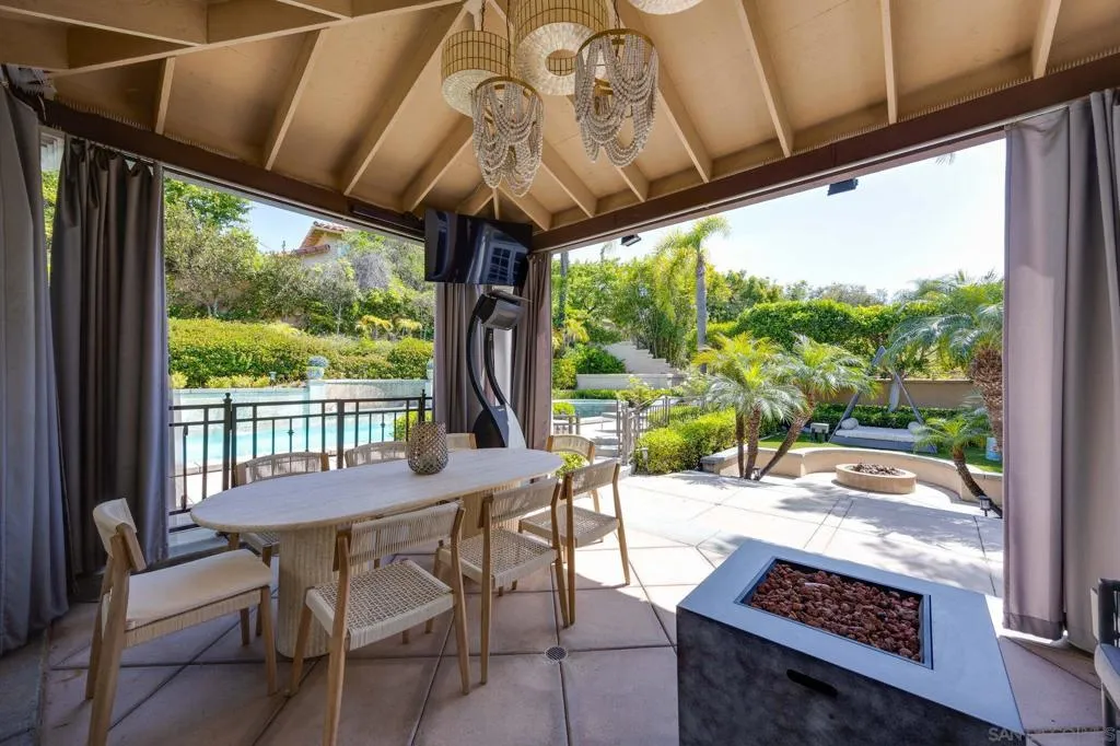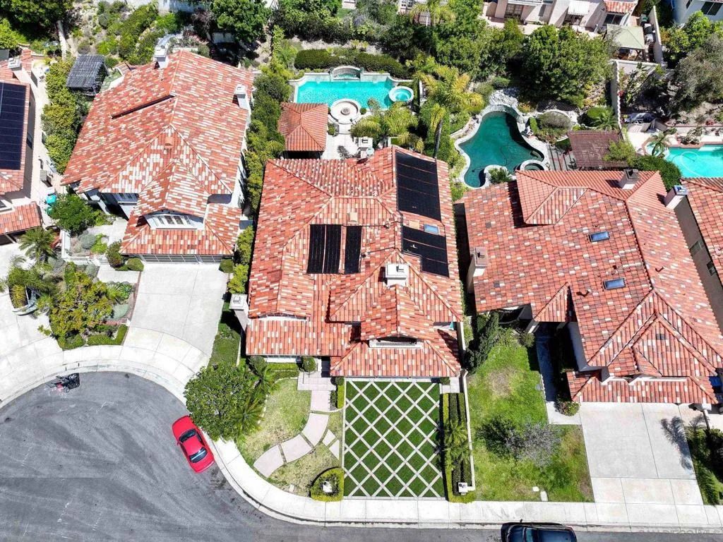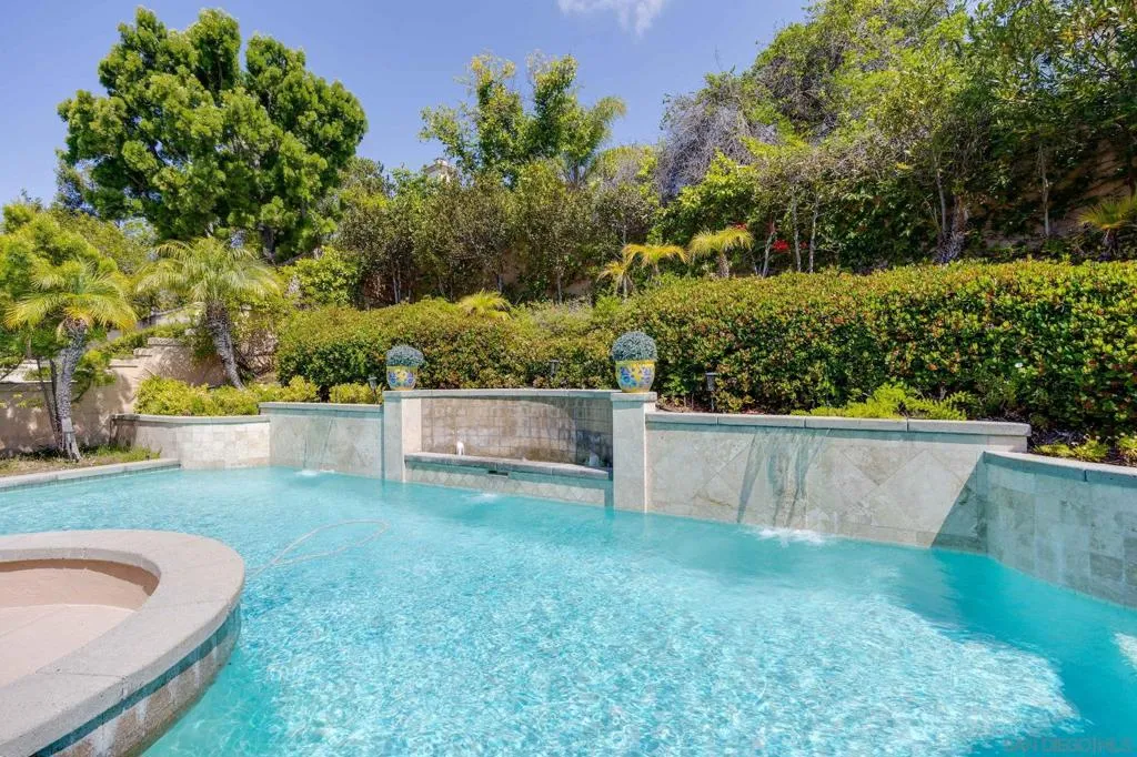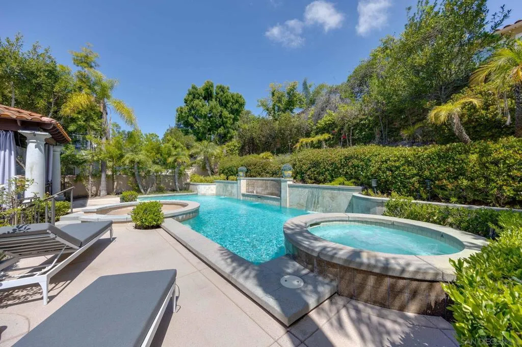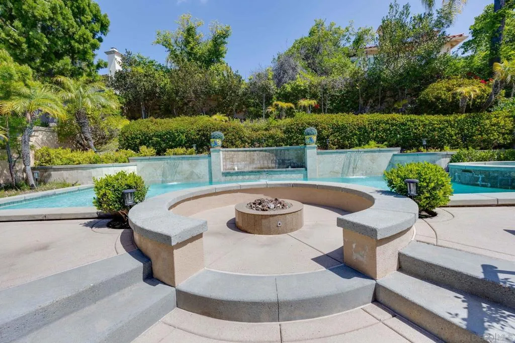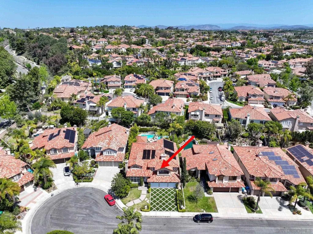 Tucked away on a quiet cul-de-sac in Carmel Valley, this home sits on one of the largest lots in the neighborhood and offers an ideal blend of space, functionality, and lifestyle—just moments from Ashley Falls Elementary School, parks, and greenbelts. When you enter the home, you are greeted by vaulted ceilings and reception space. The open layout features a formal dining & living room. The spacious family room flows seamlessly into the kitchen, complete with stainless steel appliances, a double oven, and ample space for everyday living and entertaining. You'll also find a dedicated office space, a convenient downstairs suite, designated laundry room, and a 3 car garage. Upstairs includes an additional office/media room, two ensuite bedrooms, and a private primary retreat with a balcony overlooking the backyard. The spa-inspired primary bath features a soaking tub, double-sided fireplace, walk-in shower with dual shower-heads, dual vanities, and a custom walk-in closet. Step outside to your own private oasis—designed for year-round enjoyment. The expansive backyard features three outdoor firepits, a built-in barbecue with grill and wine refrigerator, outdoor heaters, multiple lounge areas, and a European-inspired pool and spa with tranquil waterfalls. A custom-built pergola completes the space, creating the ultimate setting for entertaining or relaxing. With no HOA, owned solar, and an unbeatable location, this is a rare opportunity to own a truly special home in one of North County’s most sought-after communities. Mello Roos scheduled to end next year!