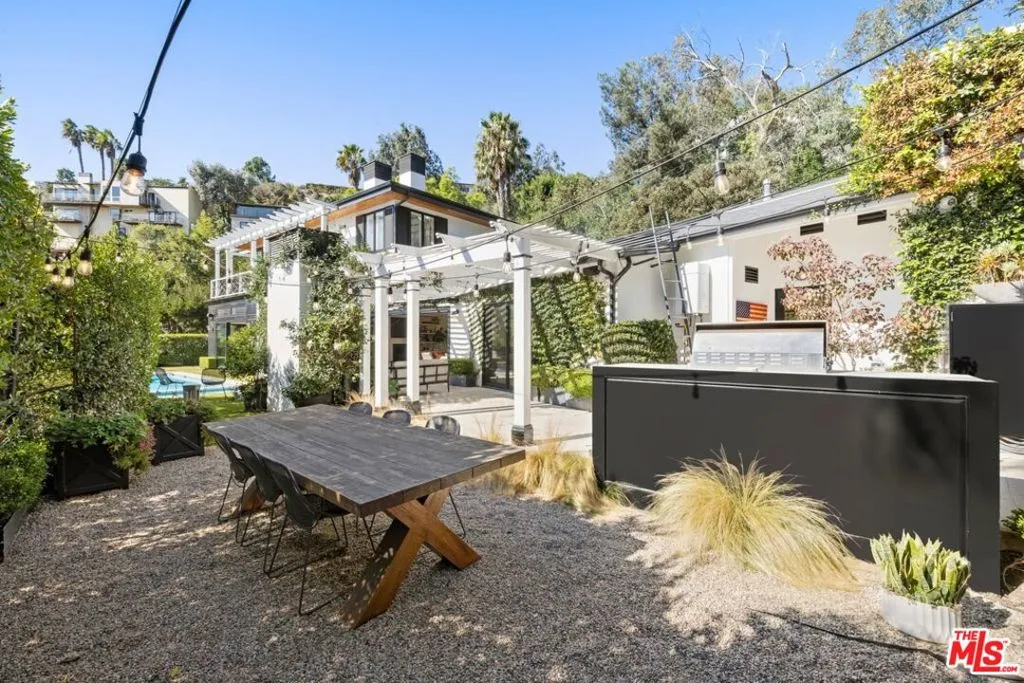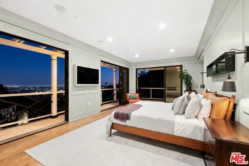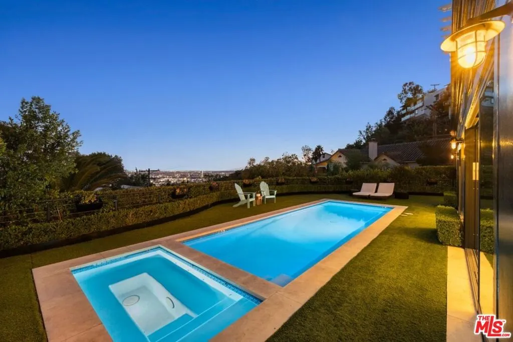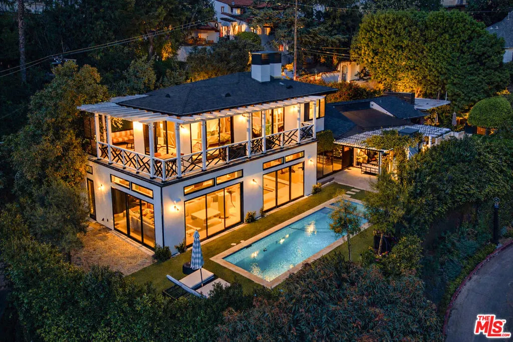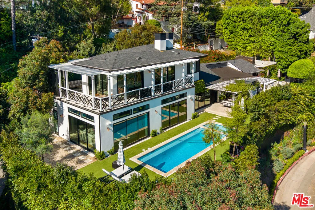 Tucked into the iconic hills just above the Sunset Strip, this stylish residence offers a rare blend of privacy, light and effortless indoor-outdoor living. You're greeted by an expansive living room with sexy fireplace and handcrafted millwork. The adjoining chefs kitchen, drenched in natural sunlight, sumptuous marble and custom woodwork. Your eye is immediately drawn outside- Fleetwood sliding glass walls blur the lines between interior and exterior. Extending throughout the main floor are mesmerizing views of the garden and pool from all rooms including the adjacent Family and Dining Rooms. Adding to the drama of this space are custom floor to ceiling draperies, bespoke lighting & 11 ft ceilings. A separate wing highlights 2 bedrooms and 2 bathrooms designed with style and sophistication.The second floor is your own private oasis, the primary suite encompasses the entire floor. Tastefully designed and meticulously appointed, complete with an enormous spa quality bathroom and walk in closet of your dreams. A generous outdoor wrap around deck and patio overlook the pool and offers the most gorgeous of Sunsets or perfect setting for morning coffee.The large, flat yard is highlighted with a pool and spa, built-in BBQ, fireplace with sitting area and a large dining area. The lush landscaping is complemented by limestone decking, faux grass and olive trees. The entertainment options are endless- ideal for hosting a large-scale or intimate dinner party. While nestled North of Sunset, you are just a stroll down to The Sunset Tower, Soho House and a quick drive to Studios.