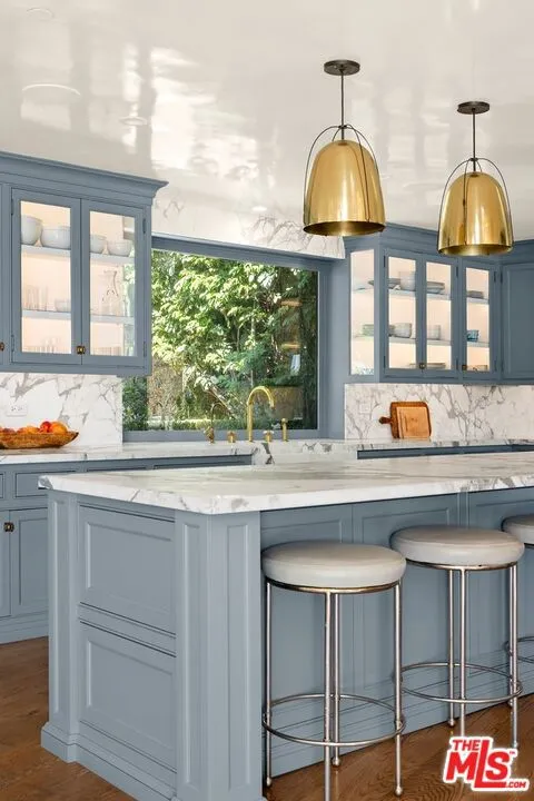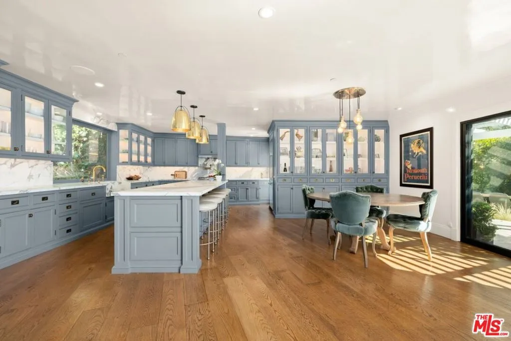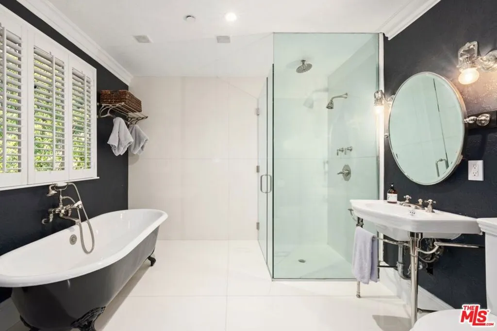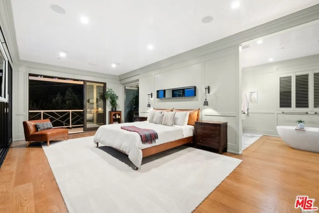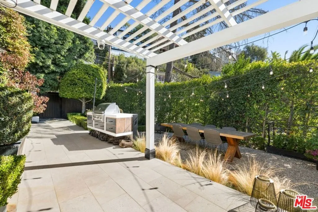 Tucked into the iconic hills just above the Sunset Strip, this stylish residence offers a rare blend of privacy, light and effortless indoor-outdoor living. You're greeted by an expansive living room with sexy fireplace and handcrafted millwork. The adjoining chefs kitchen, drenched in natural sunlight, sumptuous marble and custom woodwork. Your eye is immediately drawn outside- Fleetwood sliding glass walls blur the lines between interior and exterior. Extending throughout the main floor are mesmerizing views of the garden and pool from all rooms including the adjacent Family and Dining Rooms. Adding to the drama of this space are custom floor to ceiling draperies, bespoke lighting & 11 ft ceilings. A separate wing highlights 2 bedrooms and 2 bathrooms designed with style and sophistication.The second floor is your own private oasis, the primary suite encompasses the entire floor. Tastefully designed and meticulously appointed, complete with an enormous spa quality bathroom and walk in closet of your dreams. A generous outdoor wrap around deck and patio overlook the pool and offers the most gorgeous of Sunsets or perfect setting for morning coffee.The large, flat yard is highlighted with a pool and spa, built-in BBQ, fireplace with sitting area and a large dining area. The lush landscaping is complemented by limestone decking, faux grass and olive trees. The entertainment options are endless- ideal for hosting a large-scale or intimate dinner party. While nestled North of Sunset, you are just a stroll down to The Sunset Tower, Soho House and a quick drive to Studios.