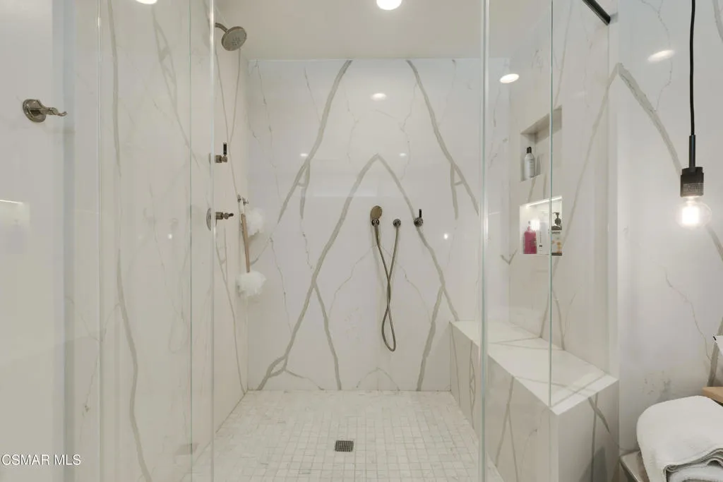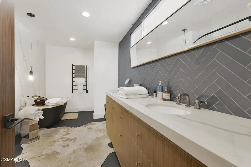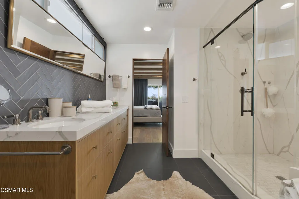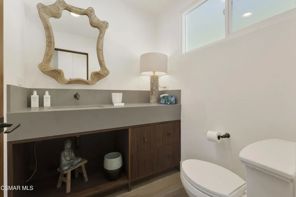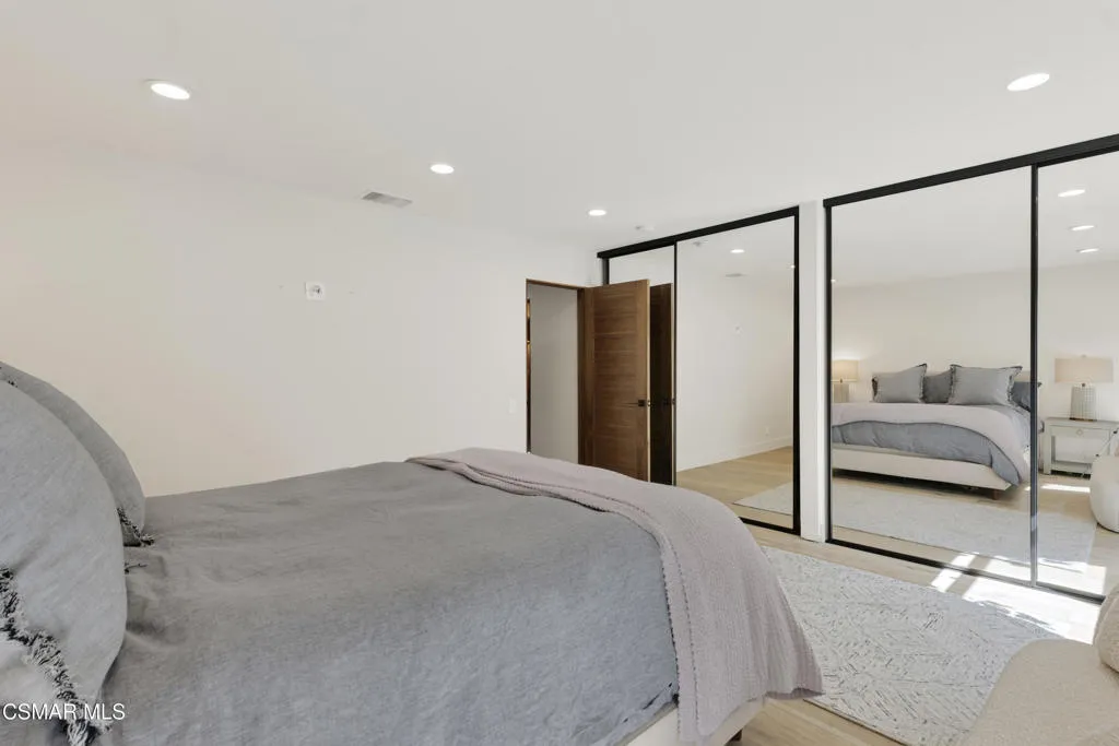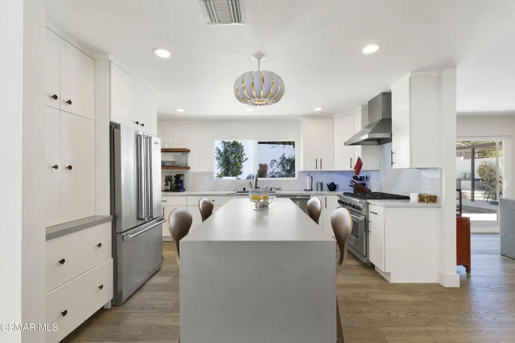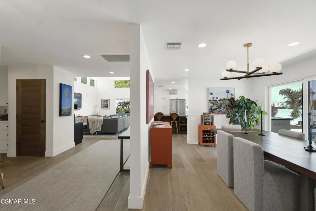 Stunning one story Mid- century completely remodeled, corner single story home! You are welcomed into an elegant, light and bright living room with high ceilings & recessed lighting. Beautifully upgraded kitchen with a new island that features stone/waterfall top and walnut components and new cabinets throughout. All the bathrooms have been beautifully remodeled with custom vanities, toto toilets, new lighting and more. All of the interior doors have been upgraded to new solid core walnut with new hardware. This home also features, new A/C ducting, new roof, copper plumbing, beautiful wood floors, a new tankless water heater, and a nicely manicured backyard. A brand new custom pool with an auto-recessed built in cover was just completed. Enjoy the lovely outdoors with new sandstone paver decking, a firepit and sitting area and a built in bbq unit. Located south of the boulevard and minutes to the 'Commons' in Calabasas. Less than 15 miles from the beach and close to great schools. Great location! No HOA fees! Don't let this one go!