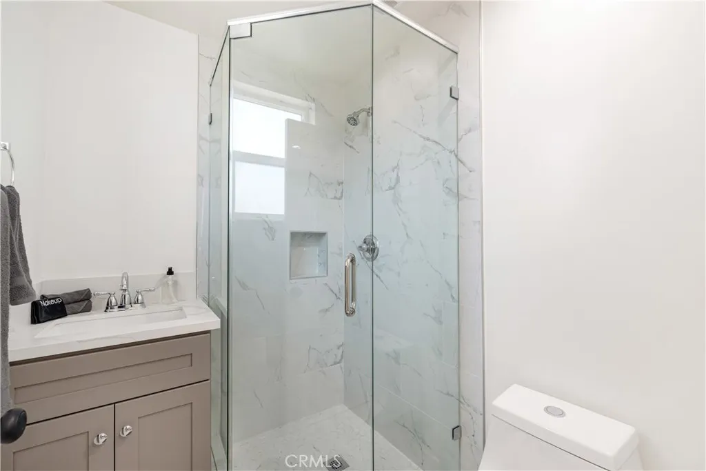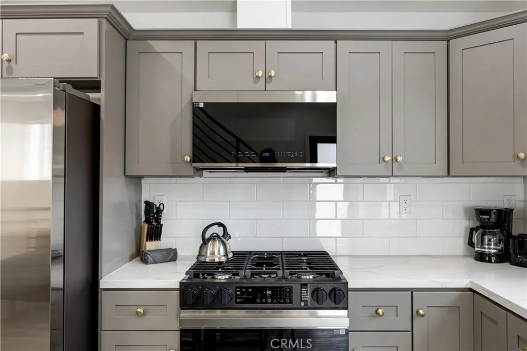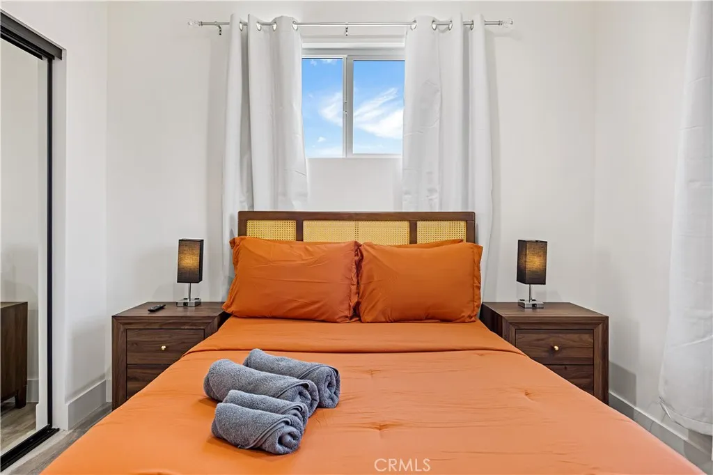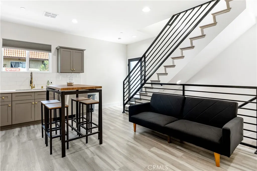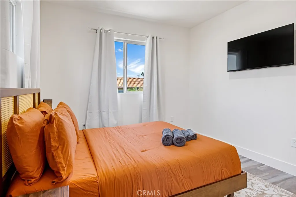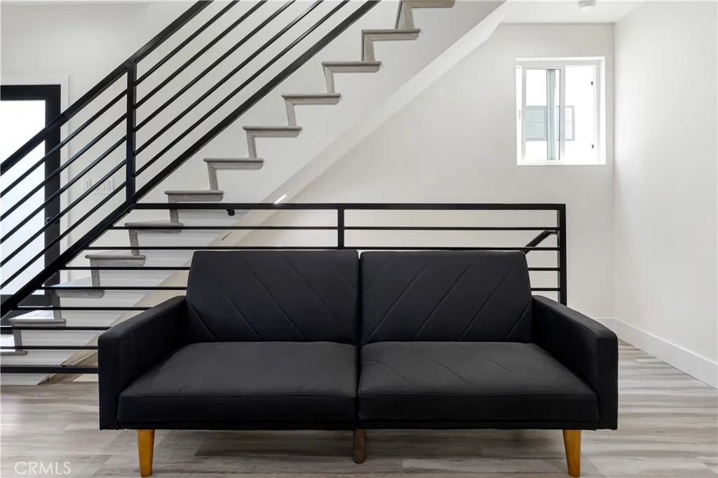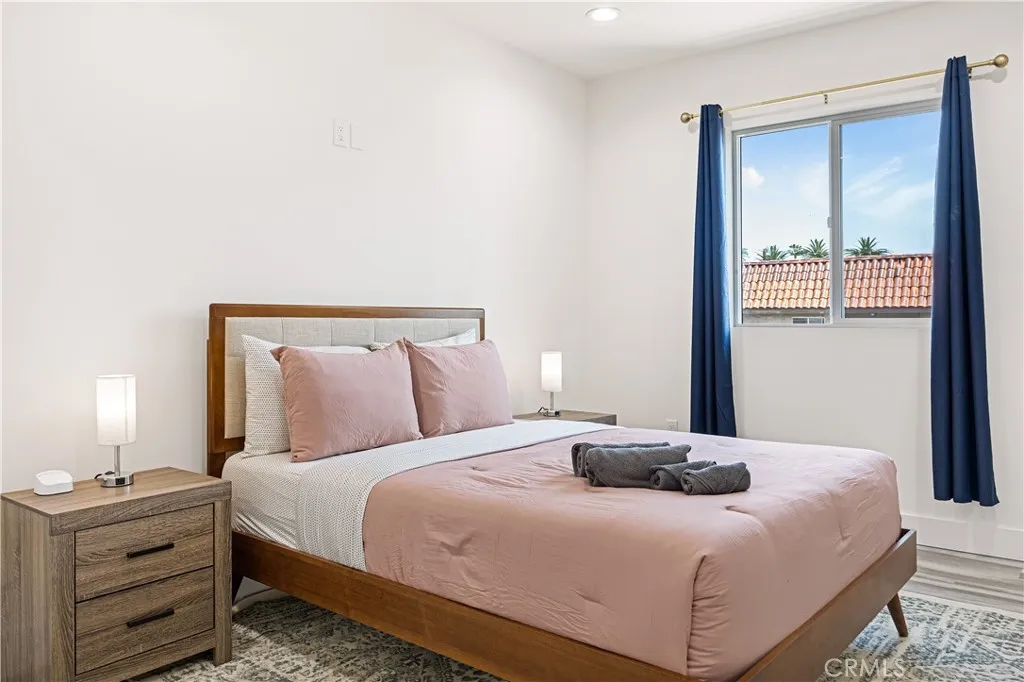 Step into modern, elevated living in this newly built corner-lot townhouse, offering a rare combination of privacy, natural light, and thoughtful design in a prime central Los Angeles location. Positioned on a corner and set back from the street, this rear unit benefits from added openness, enhanced light exposure, and a quieter living experience. This three-story residence features a smart layout with living space across the second and third floors. The main living level is bright and inviting, showcasing an open-concept living, dining, and kitchen area designed for both everyday comfort and entertaining. Large windows flood the space with natural light, and a private balcony off the living room extends your indoor-outdoor living. The modern kitchen is equipped with stainless steel appliances, including a range, refrigerator, dishwasher, and over-the-range microwave, along with sleek cabinetry and ample counter space. Conveniently located just off the kitchen, the in-unit washer and dryer are tucked discreetly within the living area, offering everyday functionality without compromising space or design. A spacious bedroom with its own en-suite bathroom is also located on the main level, offering flexibility for guests or a home office. Upstairs, the top floor features additional generously sized bedrooms, each with its own private en-suite bathroom, providing maximum privacy and convenience. The lower level is dedicated to entry and access, helping maintain a quiet and elevated living environment above. Additional highlights include two dedicated parking spaces, solar-powered utilities with all services separately metered, and the flexibility to lease the unit furnished or unfurnished with a 12-month minimum lease. Located in a central and highly accessible pocket of Los Angeles, you’re just minutes from top dining, shopping, and entertainment, with convenient access to major freeways and surrounding neighborhoods. This home offers a blend of modern construction, functional design, and privacy—perfect for those seeking a high-quality rental in the heart of the city.