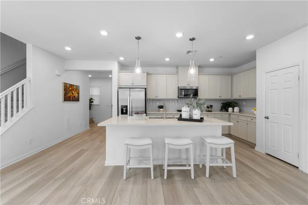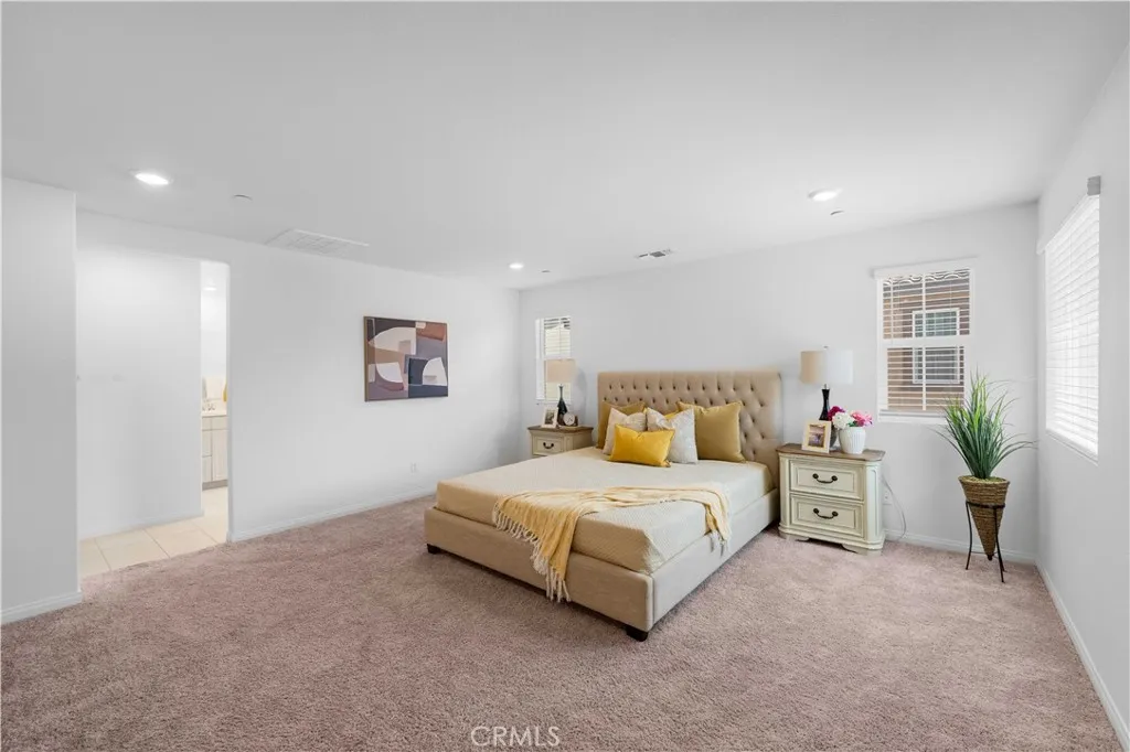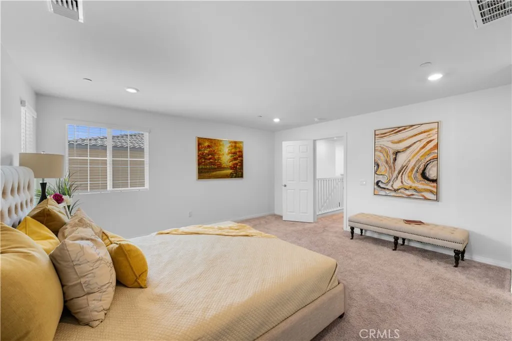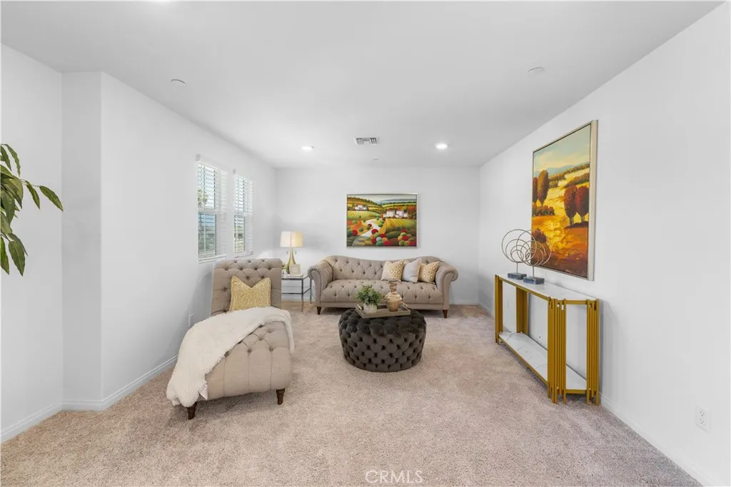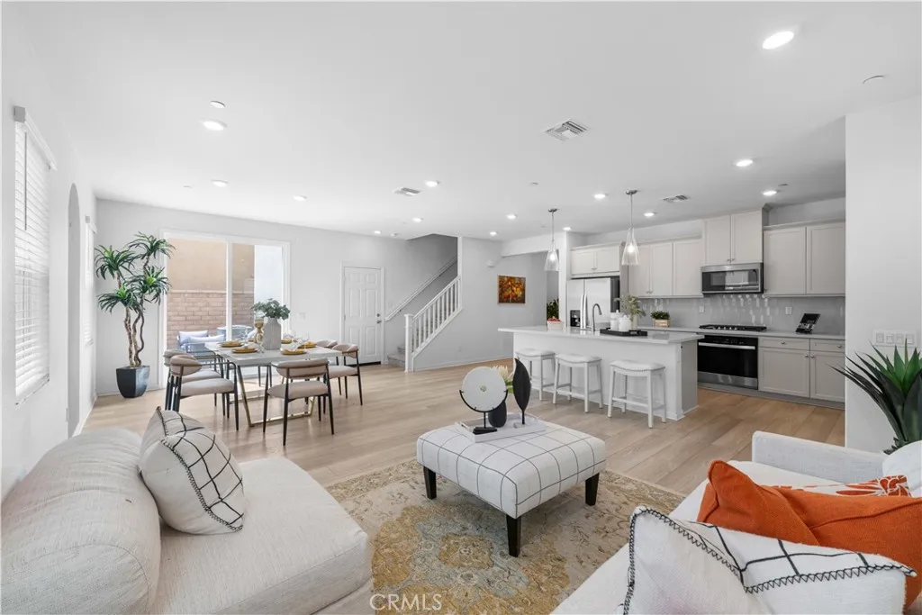 Paid off Solar!!!! Located at 3918 E Cambria Privado in Ontario, this beautifully maintained 2023-built home offers a perfect blend of modern design, comfort, and true move-in-ready convenience. The first floor features a highly desirable open-concept layout where the kitchen, dining area, and living room flow seamlessly together, creating a bright and expansive great room ideal for everyday living and entertaining. A thoughtfully designed first-floor bedroom with a full bathroom adds exceptional flexibility for guests, multi-generational living, or a private home office. Upstairs, the home continues to impress with two secondary bedrooms sharing a full bathroom, along with a spacious primary suite complete with a walk-in closet for enhanced privacy and comfort. An exceptionally large loft—larger than the primary bedroom—offers endless possibilities as a second living area, media room, or entertainment space. The upstairs laundry room eliminates the inconvenience of carrying laundry up and down stairs and comes fully equipped with a washer and dryer. The home also includes a refrigerator, with all major appliances being 2023 models, delivering true turnkey living. The backyard has been fully finished with clean concrete hardscaping for a low-maintenance and functional outdoor space perfect for relaxing or hosting gatherings. Meticulously cared for and like new, this home is an outstanding opportunity for buyers seeking a modern layout, premium condition, and effortless living.