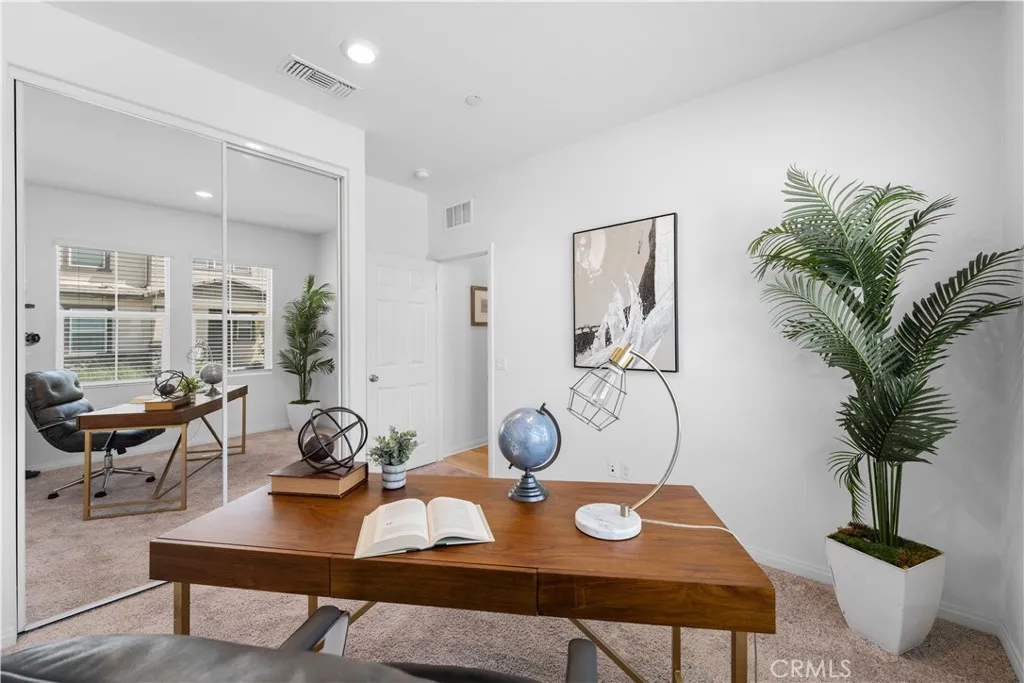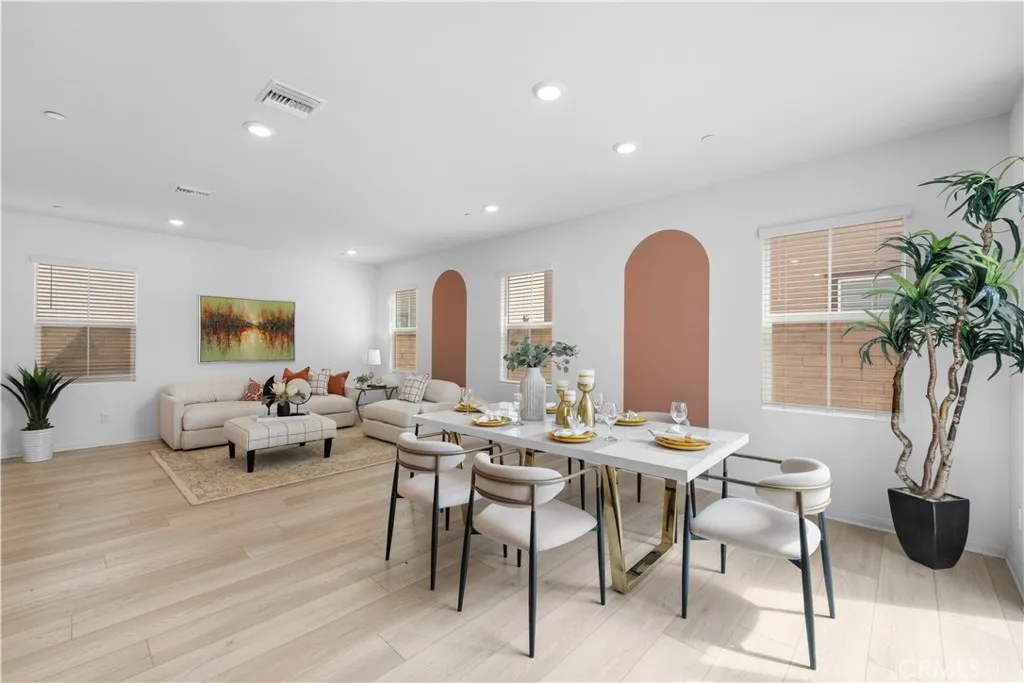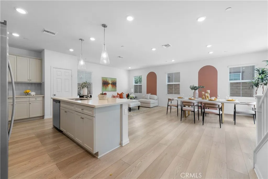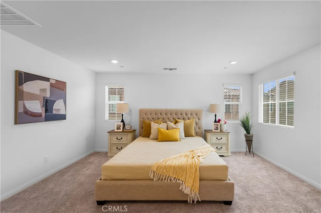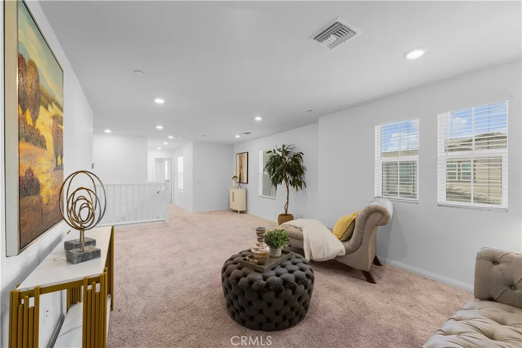 Paid off Solar!!!! Located at 3918 E Cambria Privado in Ontario, this beautifully maintained 2023-built home offers a perfect blend of modern design, comfort, and true move-in-ready convenience. The first floor features a highly desirable open-concept layout where the kitchen, dining area, and living room flow seamlessly together, creating a bright and expansive great room ideal for everyday living and entertaining. A thoughtfully designed first-floor bedroom with a full bathroom adds exceptional flexibility for guests, multi-generational living, or a private home office. Upstairs, the home continues to impress with two secondary bedrooms sharing a full bathroom, along with a spacious primary suite complete with a walk-in closet for enhanced privacy and comfort. An exceptionally large loft—larger than the primary bedroom—offers endless possibilities as a second living area, media room, or entertainment space. The upstairs laundry room eliminates the inconvenience of carrying laundry up and down stairs and comes fully equipped with a washer and dryer. The home also includes a refrigerator, with all major appliances being 2023 models, delivering true turnkey living. The backyard has been fully finished with clean concrete hardscaping for a low-maintenance and functional outdoor space perfect for relaxing or hosting gatherings. Meticulously cared for and like new, this home is an outstanding opportunity for buyers seeking a modern layout, premium condition, and effortless living.