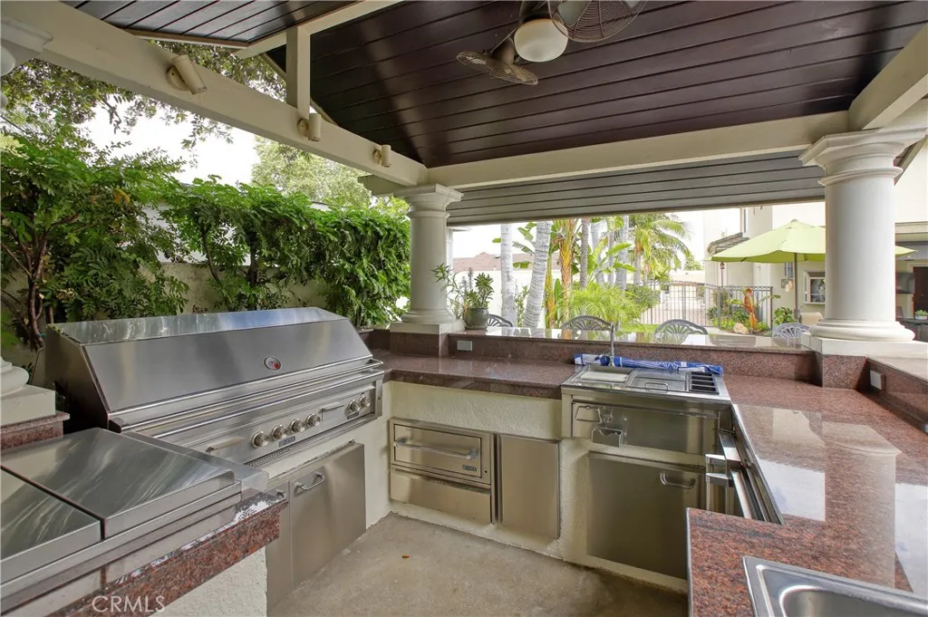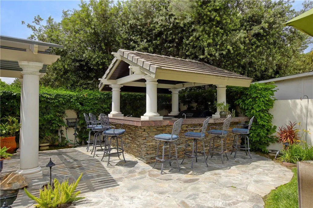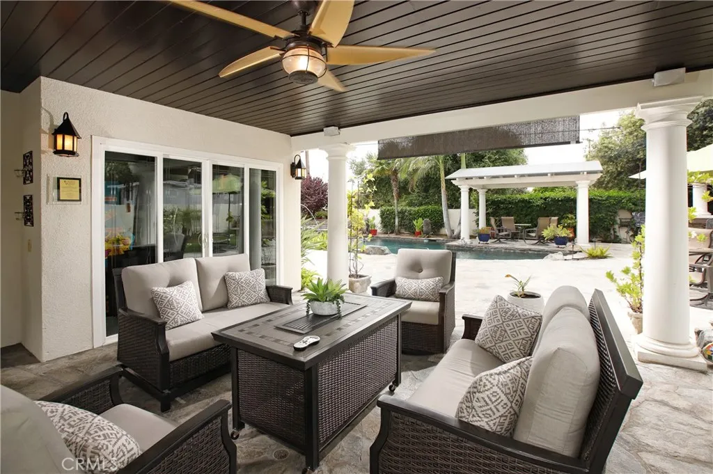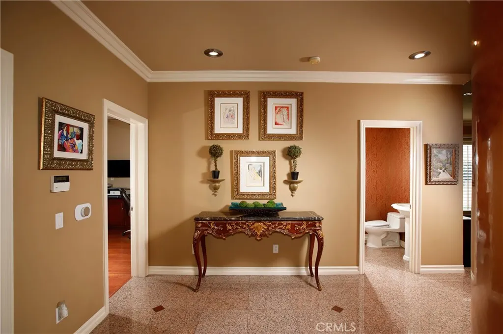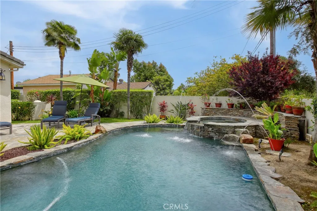 Stunning two-story home in highly sought-after Temple City, offering expansive living spaces, exceptional versatility, and true move-in ready condition. Beautifully maintained, this impressive residence is thoughtfully designed for both everyday comfort and effortless entertaining. A grand foyer with soaring ceilings and a elegant staircase creates a striking first impression and flows seamlessly into the main living areas. The formal living room features dramatic ceiling height, granite flooring, crown molding, and a gas fireplace with an elegant mantle. The dining room, framed by an arched entry, showcases, classic wainscoting, and a coffered ceiling. The spacious kitchen is beautifully appointed with a center island, granite countertops, walk-in pantry, wine cooler, and eating area seamlessly opens to the family room for effortless everyday living and entertaining. French doors lead to a charming side yard, where a tranquil fountain creates a serene indoor-outdoor connection. The home offers four generously sized ensuite bedrooms, providing comfort and privacy for all. The luxurious primary suite features a spacious walk-in closet and a spa-inspired bath complete with a soaking tub and separate shower. Additional highlights include granite flooring on the main floor, plantation shutters, dual-pane windows, recessed lighting, crown molding, central air and heat, central vacuum system, built-in speakers, bonus room, additional exterior bathroom, laundry room with sink, and attached garage with built-in cabinets and direct access. The professionally landscaped grounds are designed for exceptional outdoor living and entertaining. Gated front grounds feature an automated circular paver driveway centered around a decorative fountain, offering both elegance and convenience. The backyard unfolds as a private resort-style oasis, complete with a covered patio, sparkling pool, relaxing spa, built-in outdoor kitchen and BBQ. This distinguished property was honored with First Place in the Los Angeles & San Gabriel Valley Chapter 48th Annual Beautification Awards (2006), a testament to its outstanding design and curb appeal. This exceptional home combines space, style, and resort-style amenities in one remarkable offering.