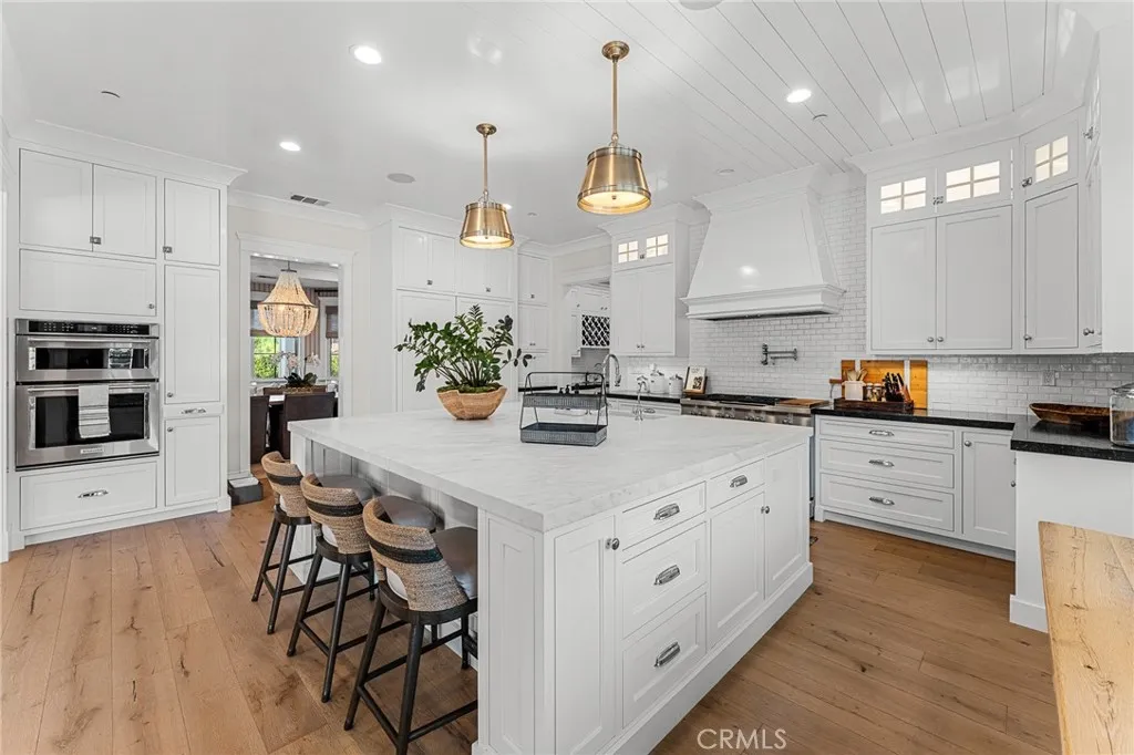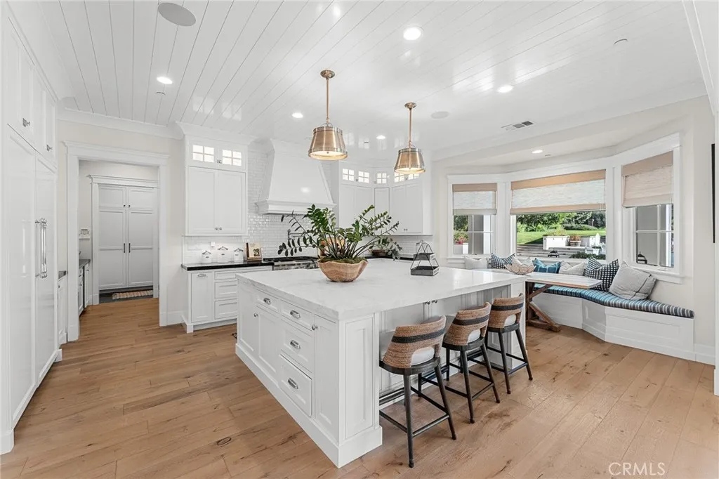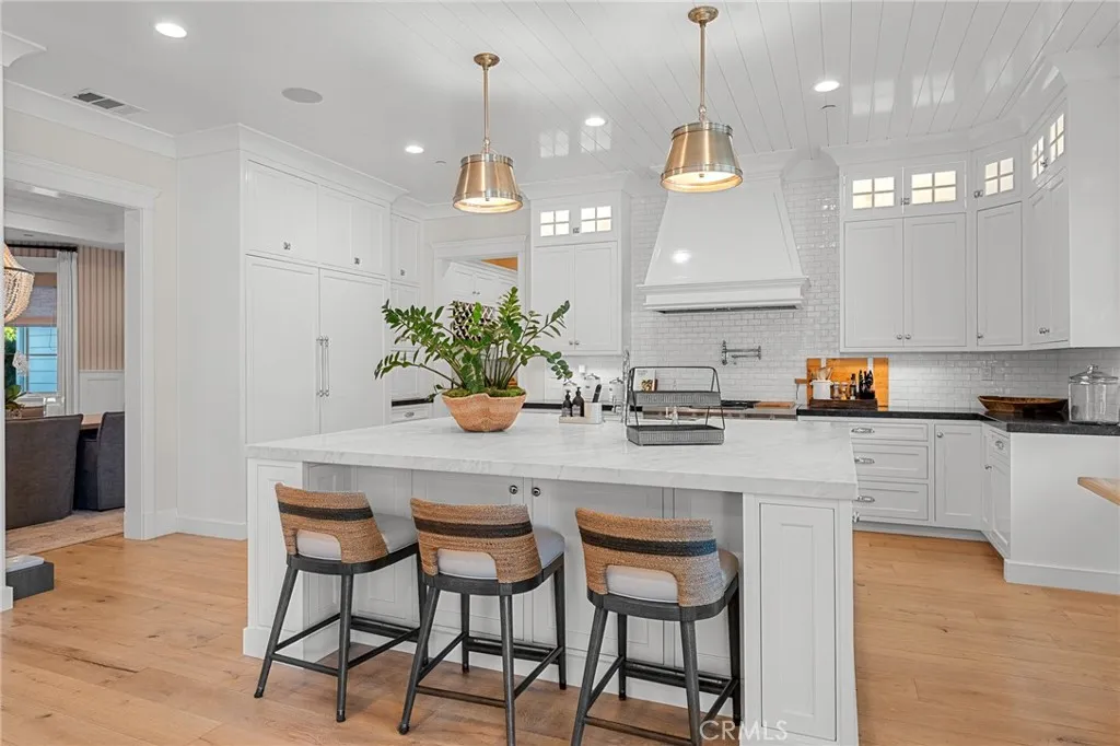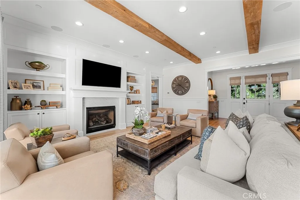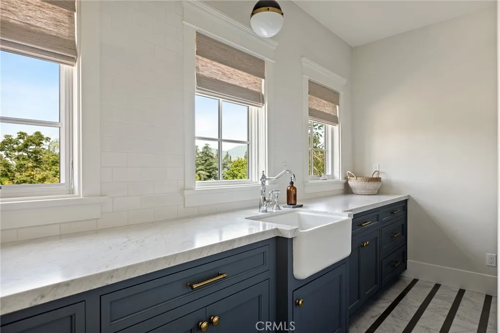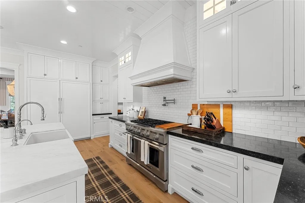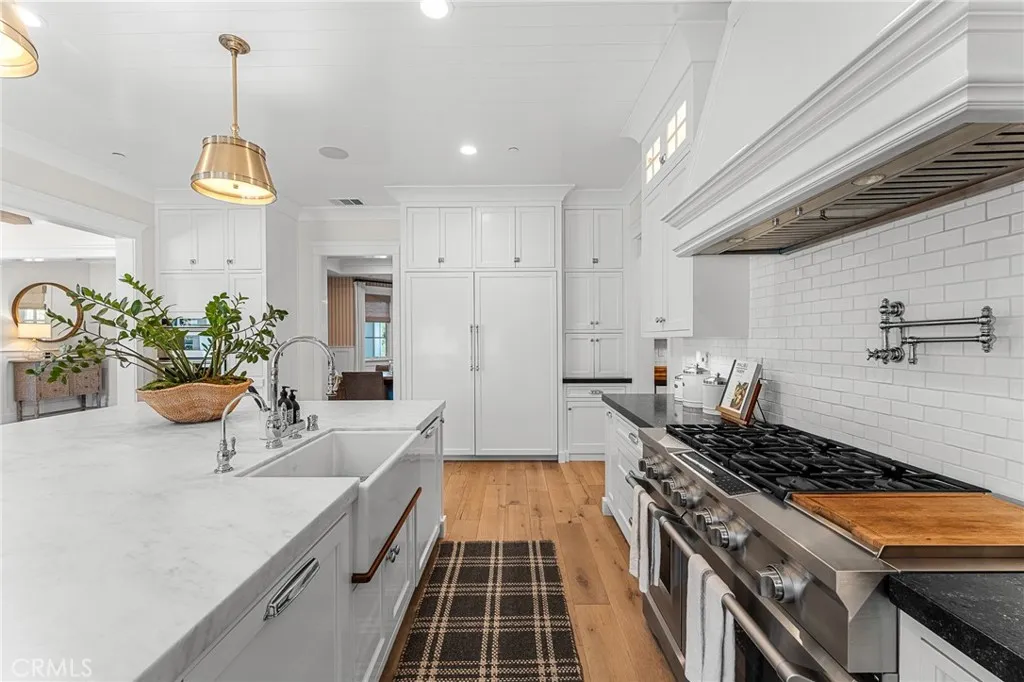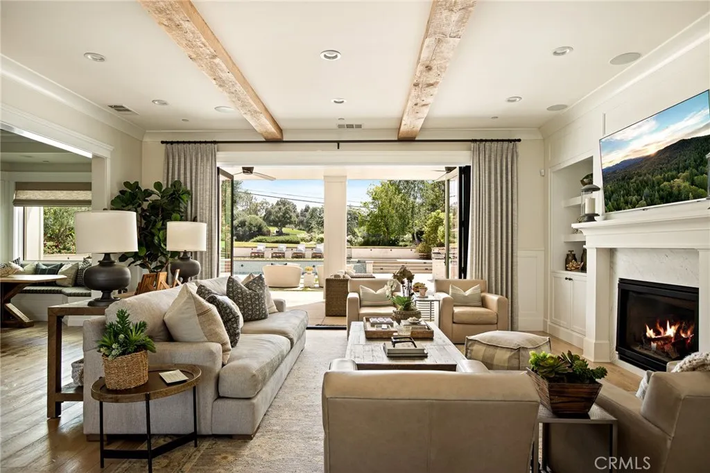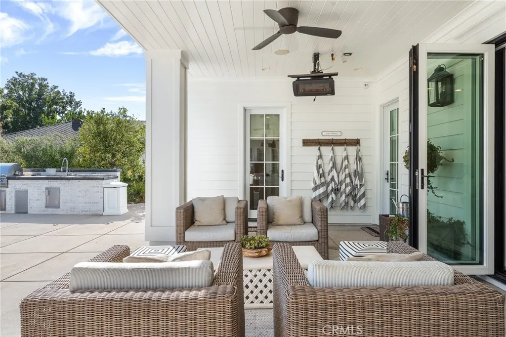 Set along the 12th green of Redlands Country Club, this custom-built 2017 residence offers a rare blend of timeless East Coast architecture and modern California living. With sweeping golf course and mountain views, the home is designed to embrace its setting at every turn. A welcoming front porch and Dutch door open to an airy, open-concept layout where the kitchen, family room, and outdoor spaces connect seamlessly. The chef’s kitchen is both refined and functional, featuring an oversized marble island, professional-grade appliances, farmhouse sink, and a charming breakfast nook. Expansive accordion doors open to a resort-inspired backyard overlooking the fairway—complete with a covered patio, pool and spa, firepit, BBQ island, and generous lawn. The setting offers both privacy and picturesque views rarely found. The main level includes two bedrooms, including a private guest suite with direct outdoor access. Upstairs, a spacious loft anchors two ensuite bedrooms, a gym (optional sixth bedroom), and a luxurious primary retreat with private terrace, fireplace, dual walk-in closets, and a spa-like bath. Additional highlights include a detached office with half bath, upstairs laundry, mudroom off the garage, and a 3-car tandem garage. A distinctive offering where architecture, comfort, and an exceptional golf course setting come together.