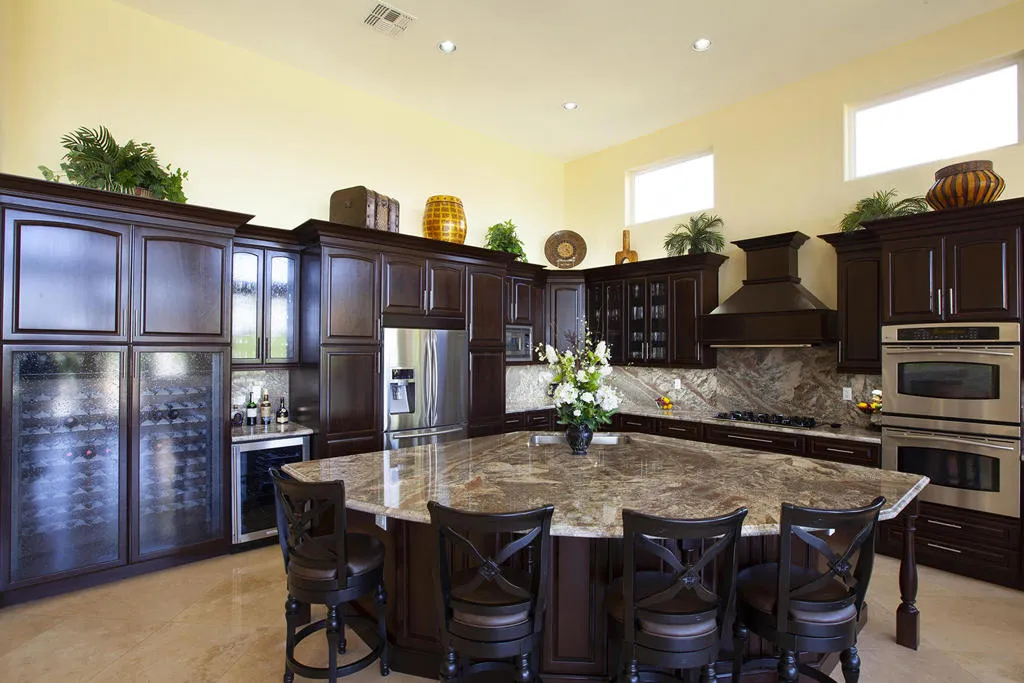 $9,000 for the month of December Only. Lease Available Nov of 2026 through Jan 15th 2027. Re-imagined and Expanded. One-of-a-Kind Custom Floor plan on huge 14,810 SF Lot ...with electrifying views of triple fairways, mountains, and lake SW Views form the front patio and NE Views from the back patio. 2 Room Detached Guest House and separate Office with Private Pavered Walkway....4 Bedrooms. 4543 SF w/4 BDRMS, 4.5 BATHS. Expanded Great Room, Dining Area and Totally Reconfigured, Highly Customized Kitchen with 2 Dishwashers, Temperature Controlled Wine/Beverage Cabinet., Custom Cabinetry...and spectacular Curved Island for Dining or just hanging out . Windows and French Doors were added which open to Dramatic Pool,Spa, Custom BBQ... and Forever Views. 2 Car Garage plus Golf Cart Garage with Air Conditioning. An incredible home with custom finishes beyond compare. Golf Privileges are available at 6 times per Calendar year.