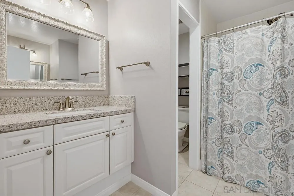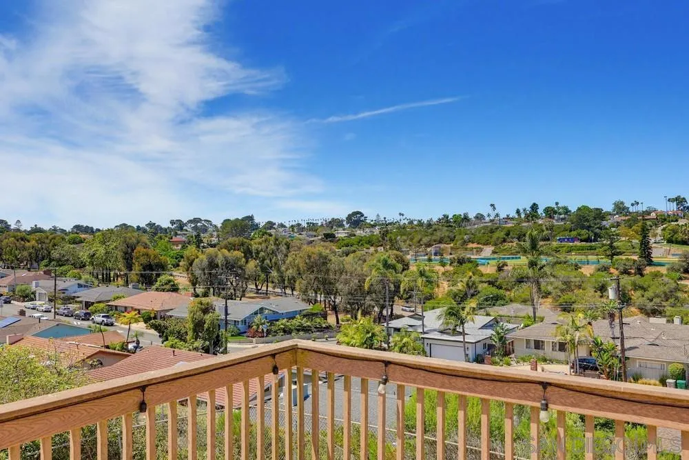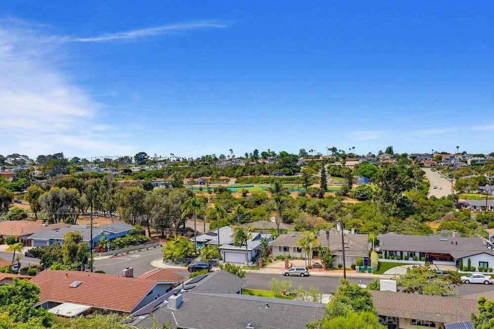 Perched atop a prime hilltop, this expansive 3,166 sq. ft. residence offers a rare dual-aspect perspective: serene canyon vistas to the west and sparkling glimpses of the San Diego Bay and downtown skyline to the east. This thoughtfully designed 4-bedroom, 3-bathroom home perfectly blends spacious living with functional elegance. The versatile floor plan features two primary suites—one conveniently located on the main level and a second upstairs alongside two additional guest rooms. The heart of the home is a light-filled kitchen equipped with stainless steel appliances, classic white cabinetry, and brushed nickel hardware. It transitions seamlessly into the adjacent family room, where soaring cathedral ceilings, a bright skylight, and sliding glass doors lead to a private back deck—an ideal setup for indoor-outdoor entertaining. Two private retreats featuring plush carpeting and walk-in closets. The main ensuite offers a spa-like experience with a tiled shower and separate soaking tub. Well-appointed upstairs bedrooms with walk-in closets and a shared hallway bath featuring double sinks and a private shower/commode room. An oversized hallway skylight floods the upper level with natural light, enhancing the home's airy atmosphere. A dedicated laundry room and a functional family hub located directly off the kitchen for effortless daily living. Experience the perfect balance of elevation, coastal breezes, and tranquility in this exceptional hilltop home.