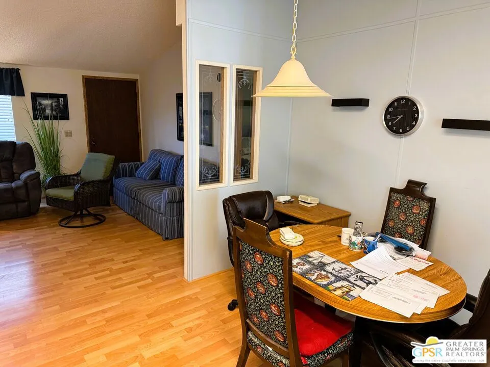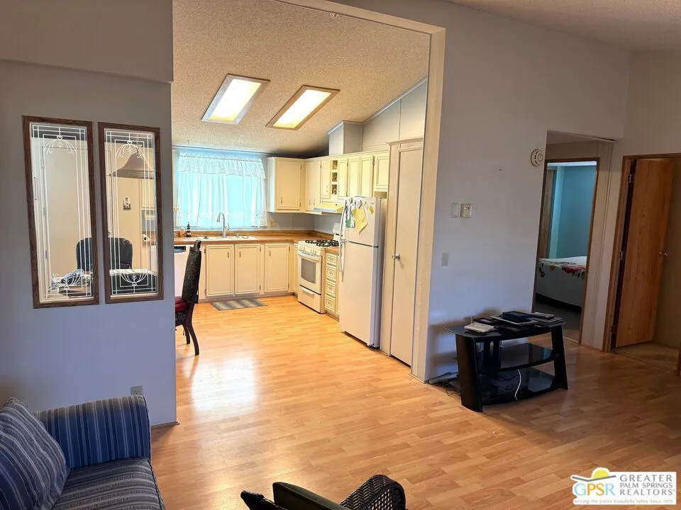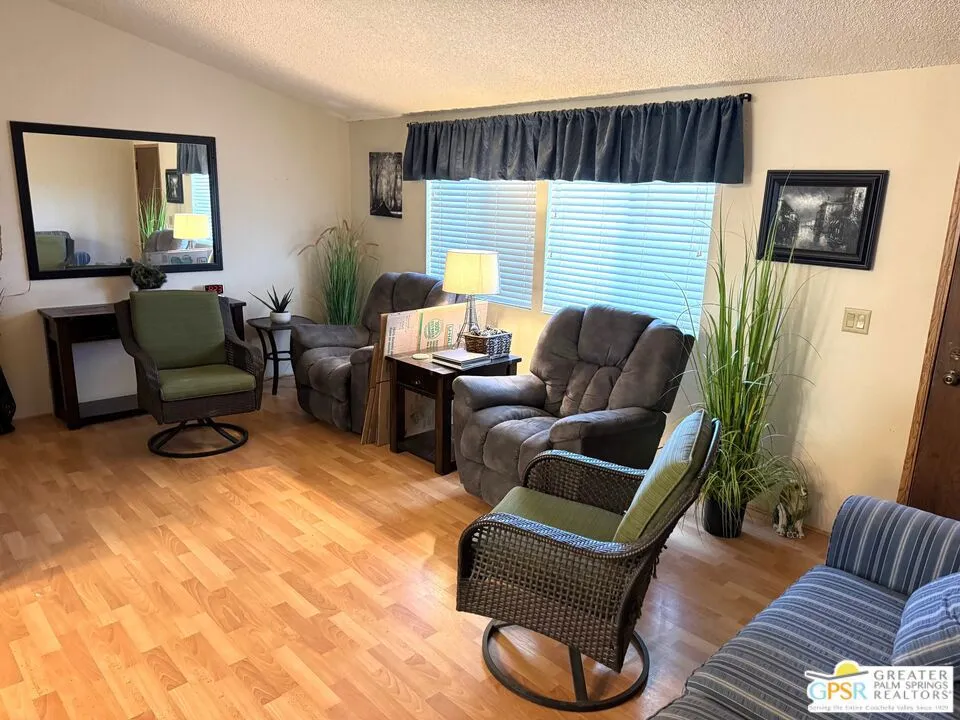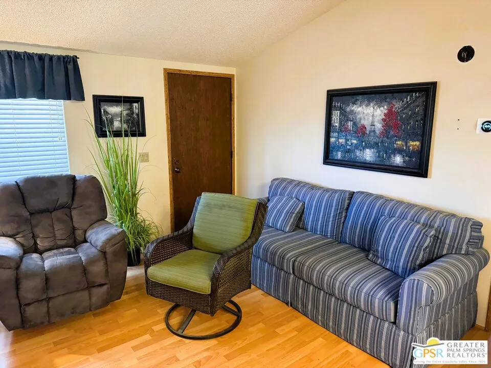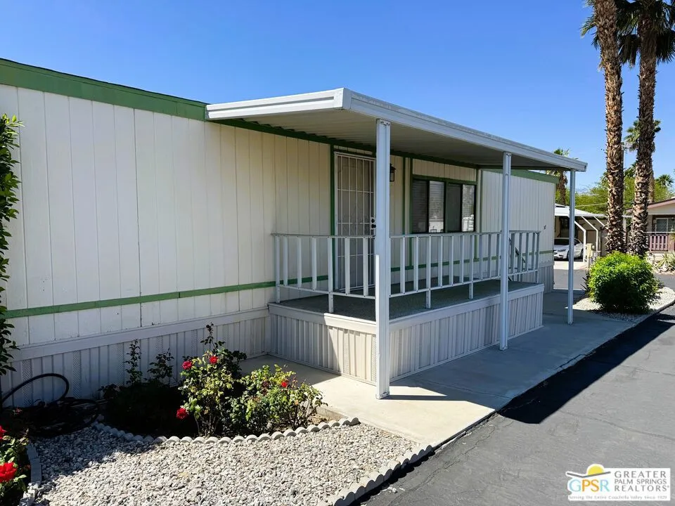 Welcome home to the cozy 55+ community of Corkill Palms. This home has 1232 square feet of living space with 3 bedrooms and 2 baths. Open floorplan with vaulted ceiling between the large eat in kitchen and living room. Appliances include Refrigerator, Gas Range and Dishwasher. Plus there is a washer and dryer located off the kitchen and side entrance door leading to the covered carport with room for 2 vehicles. Also, this home comes furnished as per MLS photos! Relax in the Therapeutic Natural Mineral Springs at the Clubhouse or have some fun on the putting green or in the billiard room located close by. Buyer must be approved by park before opening escrow. Buyer to verify with park manager space rent amount and any utility charge amounts passed on to home owners.