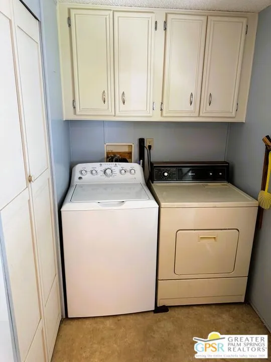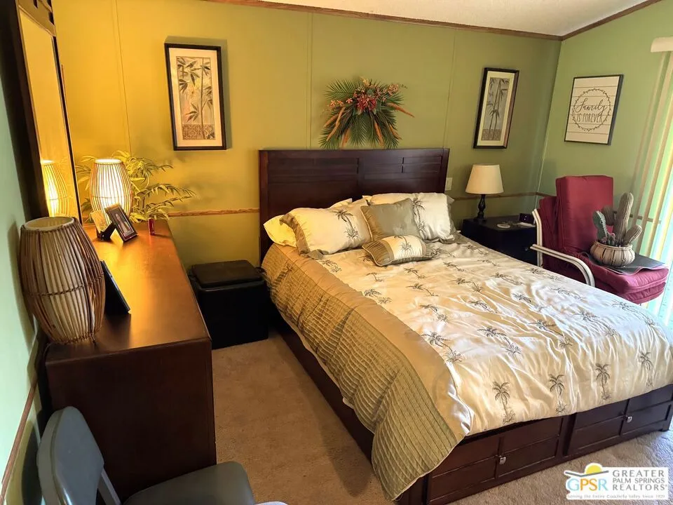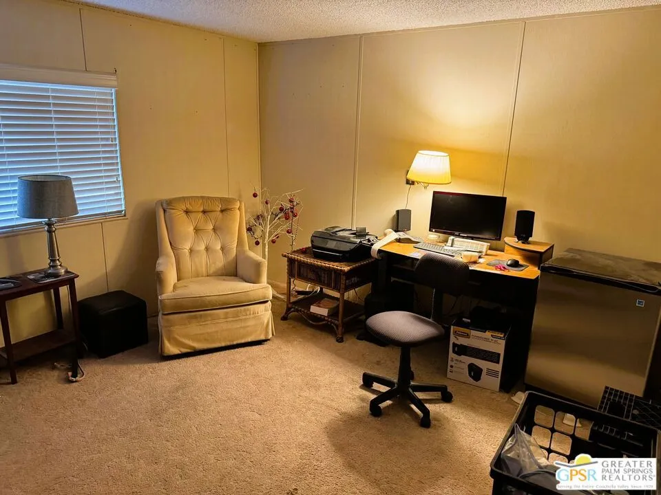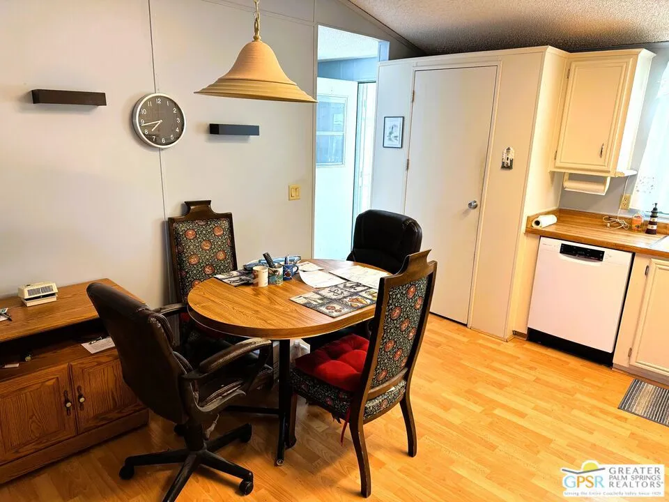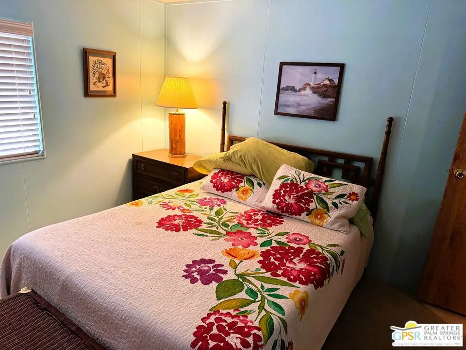 Welcome home to the cozy 55+ community of Corkill Palms. This home has 1232 square feet of living space with 3 bedrooms and 2 baths. Open floorplan with vaulted ceiling between the large eat in kitchen and living room. Appliances include Refrigerator, Gas Range and Dishwasher. Plus there is a washer and dryer located off the kitchen and side entrance door leading to the covered carport with room for 2 vehicles. Also, this home comes furnished as per MLS photos! Relax in the Therapeutic Natural Mineral Springs at the Clubhouse or have some fun on the putting green or in the billiard room located close by. Buyer must be approved by park before opening escrow. Buyer to verify with park manager space rent amount and any utility charge amounts passed on to home owners.