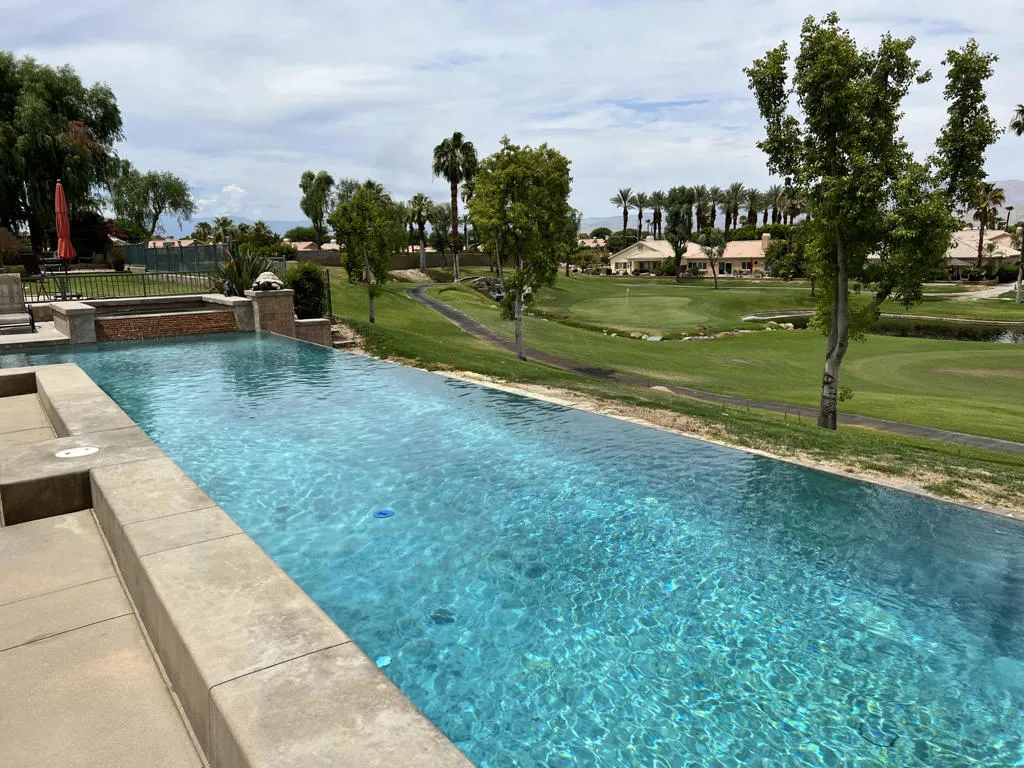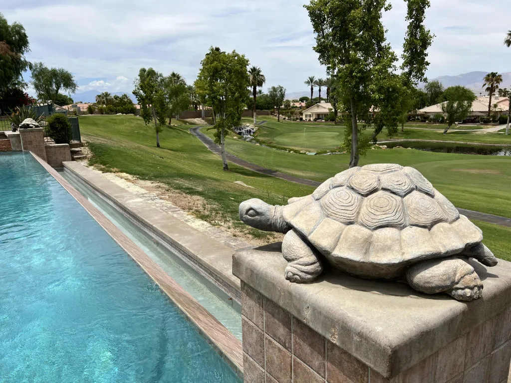Available June 1 - October 31 for $3500/moAlso available November and December 2026. Call for pricing.This formal model home sits high above the signature hole at Big Rock Golf Course with amazing views of the green, lake, Shadow Mountains to the North, and San Jacinto Mountains and beautiful sunsets to the West. This home boasts a huge infinity edge pool great for doing laps or just floating with your favorite beverage. Inside there are two master suites with King beds and their own full bathrooms and an additional half bath off of the open great room. This property is not inside the gates off Indian Springs Country Club but the quiet dead end street still has the great location to all the North La Quinta area has to offer as well as easy access to I-10 and HWY 111.Security Deposit $3500