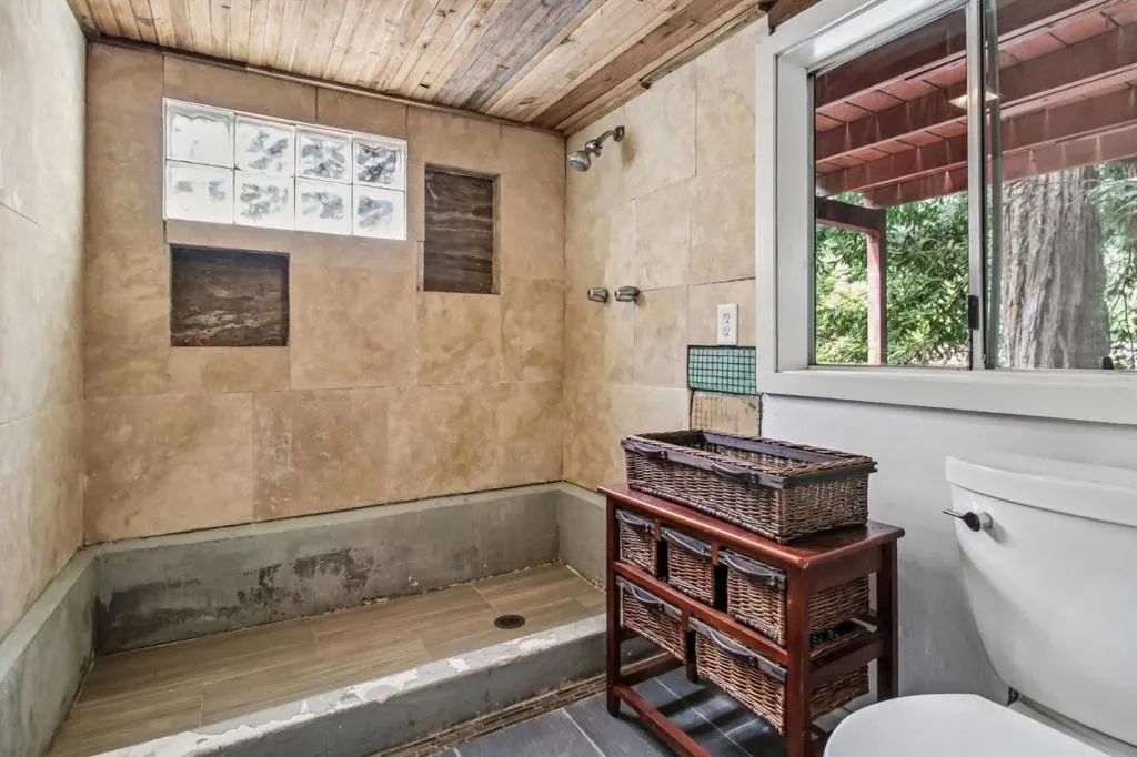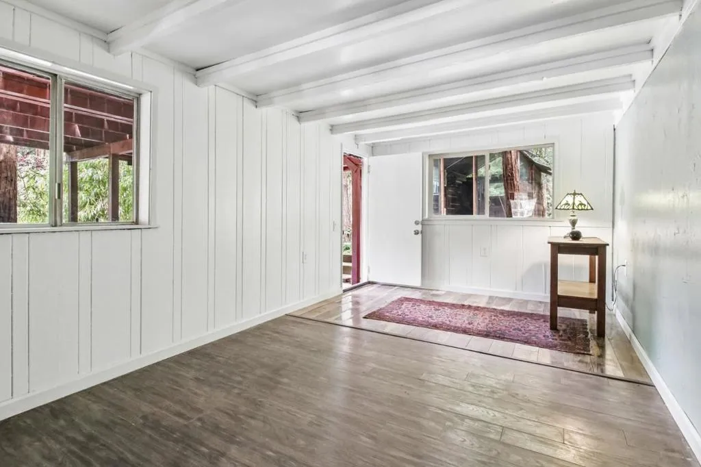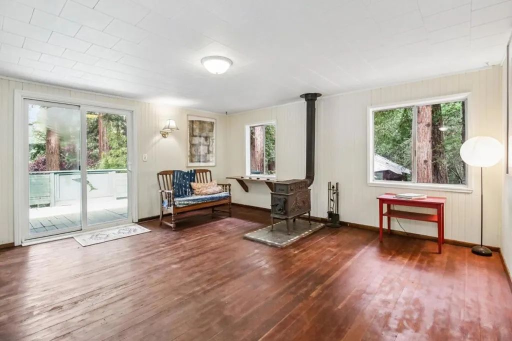 Ideally situated in the serene Forest Lakes community, this sunny, storybook bungalow offers a bright and peaceful retreat on a spacious lot with plenty of room to garden and roam. Ideally located with easy access to the neighborhood park, swimming hole, and recreational areas, this home seamlessly blends rustic charm with everyday convenience. Inside, the main level features a warm and inviting open-concept living space filled with natural light and accented by beautiful wood floors. A separate dining area, generously sized bedroom and remodeled bathroom with pebbled shower add modern comfort without sacrificing the home's cozy character. Step outside to enjoy effortless indoor-outdoor living on the private deck which is ideal for relaxing or entertaining and overlooks a natural, tranquil yard. The property also includes a large detached outbuilding, perfect for use as a workshop, studio, or meditation space. Downstairs, a separate flex room with its own entrance offers excellent versatility for a home office, creative space, or studio area. The thoughtful layout allows for great separation of space, and additional under-house storage enhances everyday practicality. This is a rare opportunity to own a peaceful getaway in a sought-after setting. Dont miss this special gem!