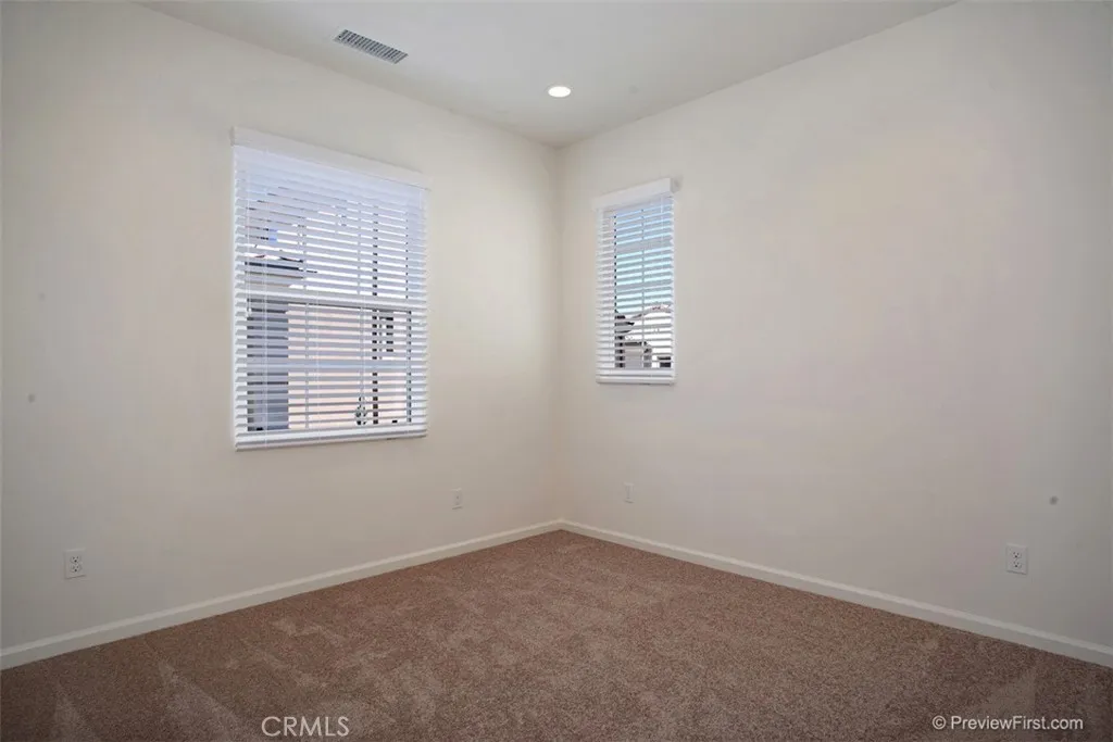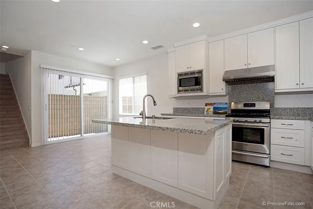 This contemporary detached townhouse in Cypress Village, Irvine, exemplifies modern luxury with its Plan One layout in Jade Court. The entry, kitchen, bathrooms, and laundry area feature elegant ceramic tile, while plush designer carpeting enhances the living spaces. Energy-efficient dual-glazed low-E glass vinyl windows ensure comfort and sustainability. The lifestyle kitchen is equipped with Bosch stainless steel appliances, sleek satin finish white Thermafoil cabinets with shaker-style doors, designer knobs, under-cabinet lighting, and a granite countertop complemented by a stainless steel double basin sink. The master suite boasts a spacious walk-in closet, and the master bath is designed with dual under-mount sinks, a cultured marble countertop, and stylish polished chrome faucets. Enhanced structured wiring supports high-speed internet and multimedia outlets throughout the home, including in all bedrooms. Additional features include a dedicated area for a gas washer/dryer, a tankless water heater, and a sprinkler system. Abundant natural light fills the space, and residents can enjoy nearby ball fields, sports courts, a swimming pool, and parks, with a Montessori school conveniently located nearby. The 5 Freeway is just around the corner, and a floor plan is available in the supplement, with a virtual tour accessible via the map frame.