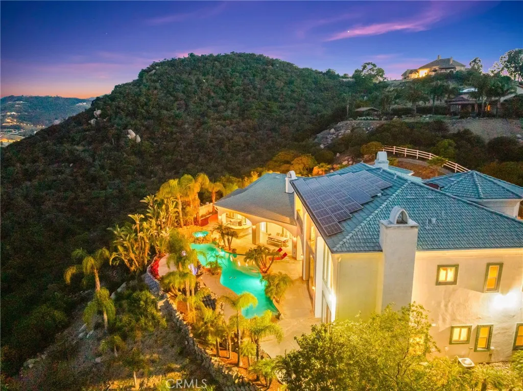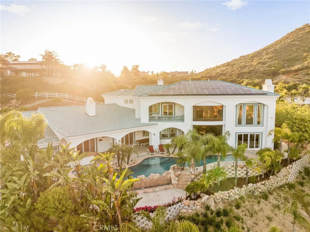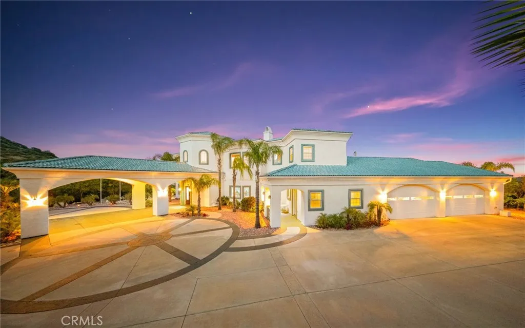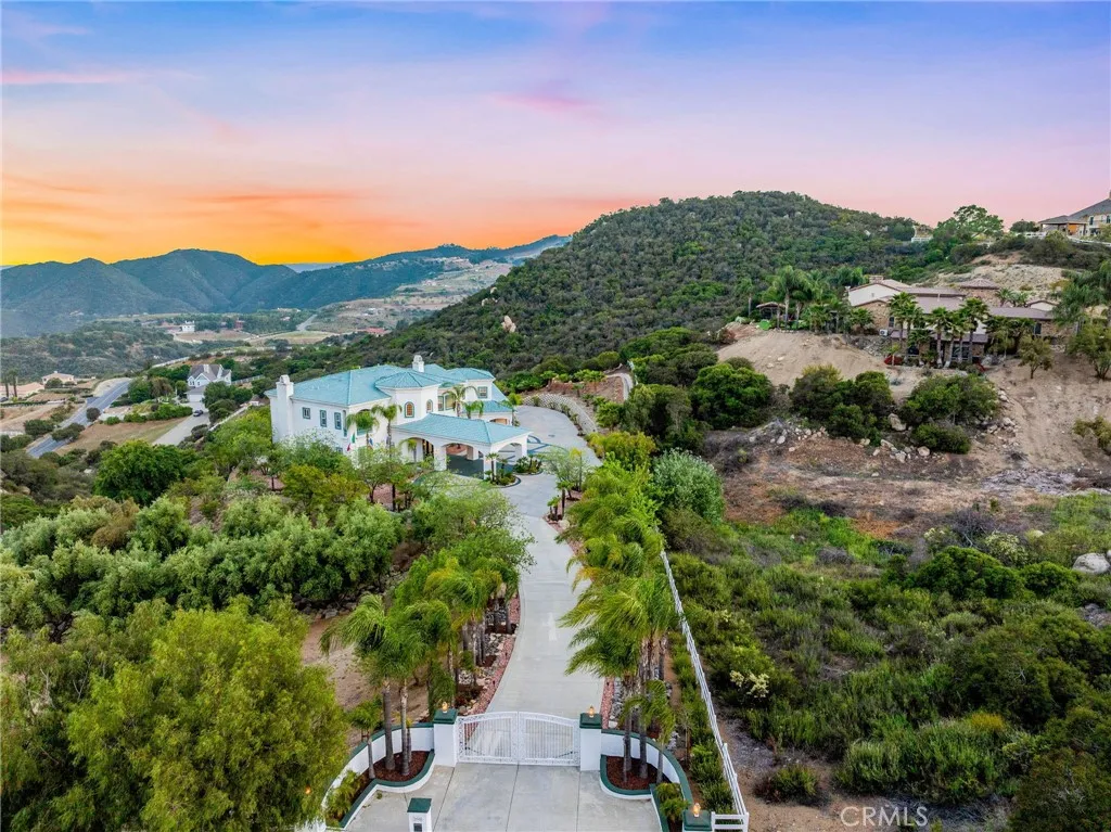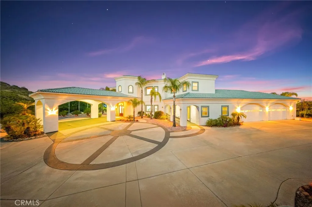 Exquisite Custom Estate with Panoramic Views in Prestigious La Cresta Discover one of the most extraordinary estates currently offered in Murrieta—an exceptional residence with over 6,400 sq ft of refined living space on more than 5 acres in the highly sought-after community. Behind a private gated driveway, a grand double-door entry welcomes you into a dramatic foyer with soaring ceilings and elegant architectural details. The open-concept floor plan captures breathtaking 180-degree panoramic views of the Murrieta and Temecula Valleys, with expansive windows and glass doors blending indoor and outdoor living. This stunning estate features 4 spacious bedrooms and 5.5 bathrooms. The gourmet chef’s kitchen is equipped with high-end stainless steel appliances, granite countertops, custom cabinetry, a large center island, and walk-in pantry. Entertain in the formal living and dining rooms, breakfast nook, and expansive family room—all designed to showcase incredible views. Step outside to a private resort-style oasis with a sparkling pool and spa, custom BBQ island, and detached guest cabana with its own bathroom—ideal for hosting or extended stays. The home also features a game room with a fully equipped custom bar, billiards area, shuffleboard, and a temperature-controlled wine cellar. The main level includes two private ensuite bedrooms, one currently used as a home office with a separate entrance. Upstairs are two additional ensuite bedrooms, including the luxurious primary suite with private balcony, spa-inspired bath with jetted tub, sauna, oversized walk-in shower, and expansive custom walk-in closet. A private gym completes the suite. Additional highlights include a 4-car garage with built-in storage, central vacuum, water softener, Tesla solar system, and security system with cameras. The property has been thoughtfully landscaped with decorative trees, shrubs, flowering plants, and multiple fruit trees including Pineapple Guava, Dragon fruit, vineyards, olive trees, and many more. The vegetation is on an automatic drip system with rock or mulch to keep maintenance very low. Located in one of Murrieta’s most prestigious communities, this property offers privacy and tranquility just minutes from top-rated schools, shopping, dining, and Temecula wine country. A rare opportunity—schedule your private showing today.
