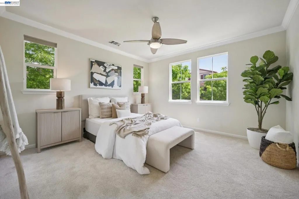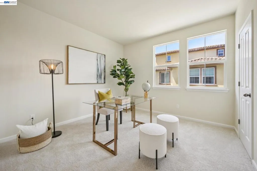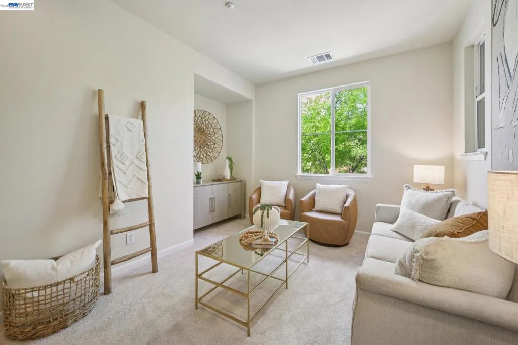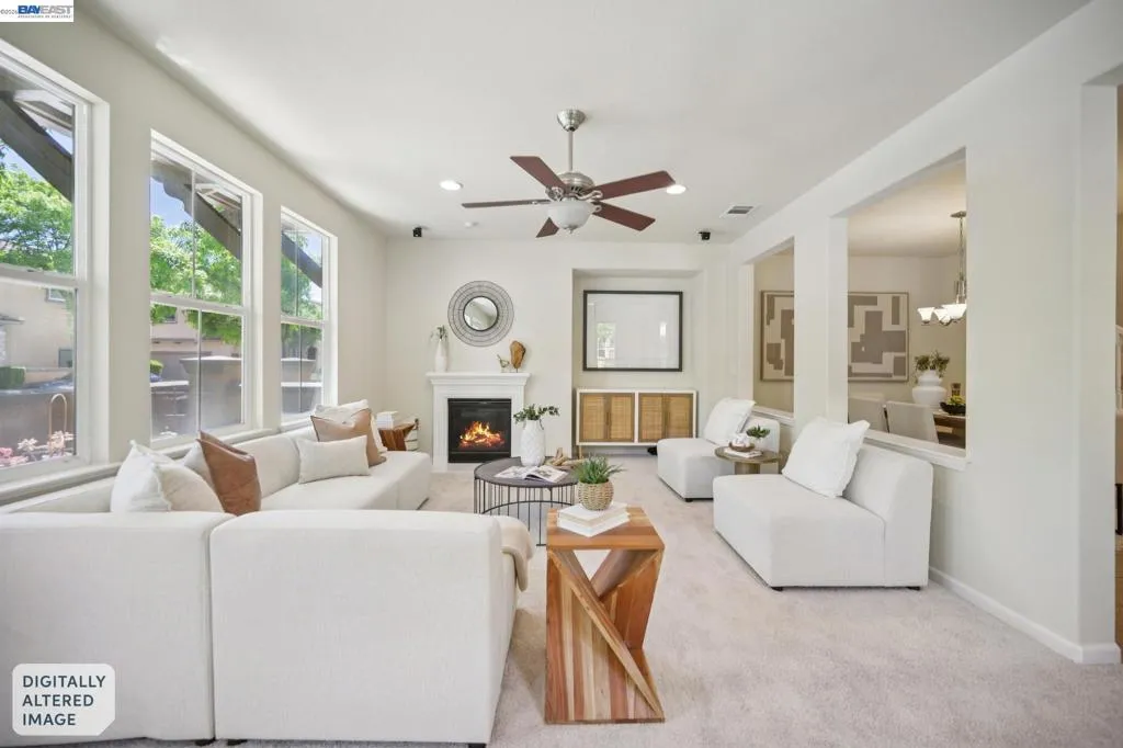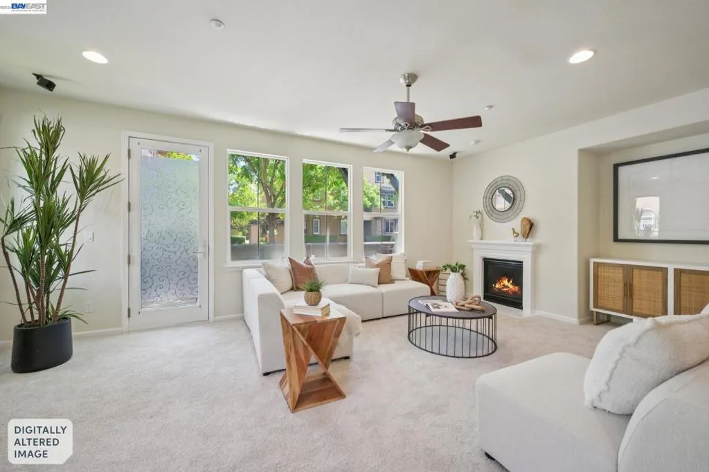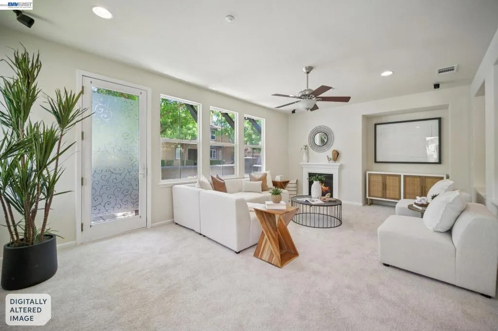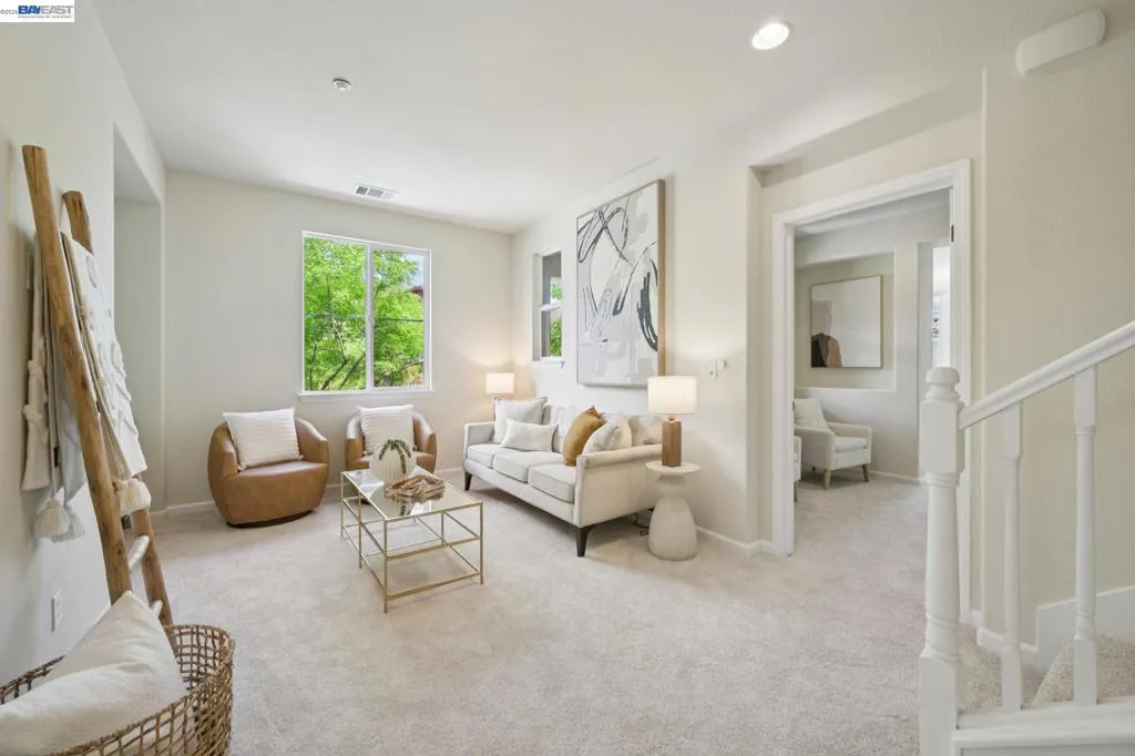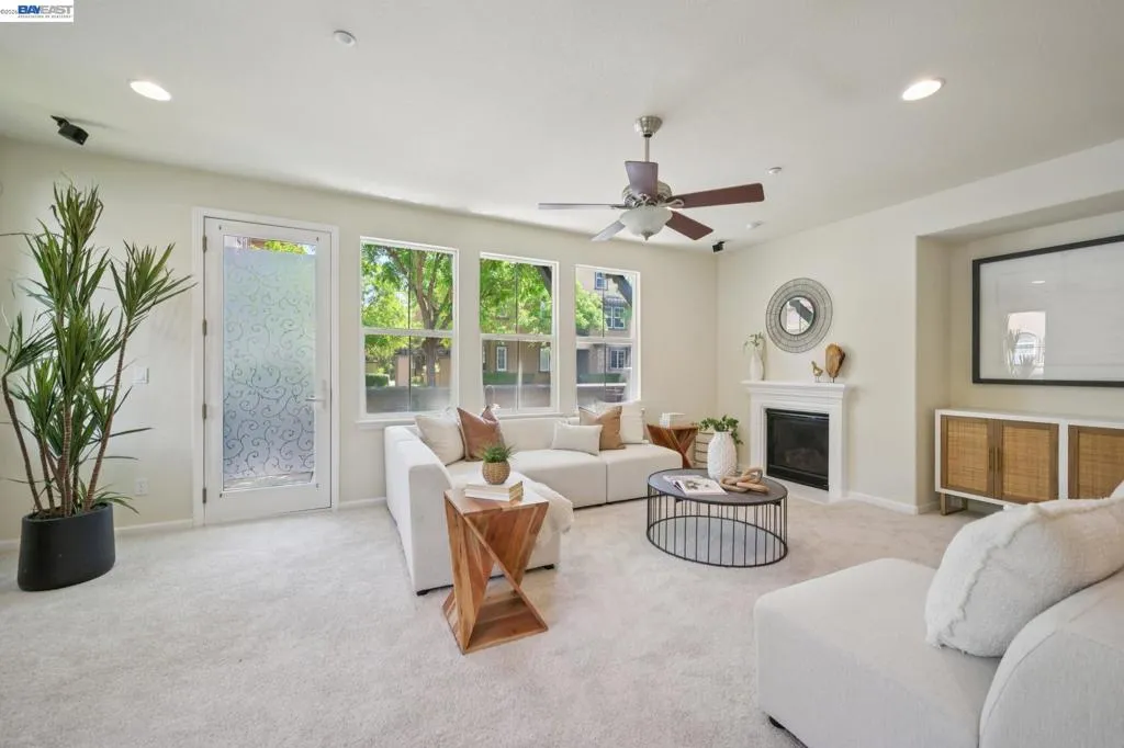 Welcome to 5351 Fioli Loop, a beautifully updated corner residence in one of San Ramon’s most sought-after neighborhoods, where comfort, functionality, and location come together seamlessly. Perfectly positioned within walking distance to top-rated schools, including Dougherty Valley High School, Windemere Ranch Middle School, and Hidden Hills Elementary School, this home offers exceptional convenience for families seeking premier education. Flooded with natural light, this desirable corner unit showcases a thoughtfully designed floor plan across three spacious levels. The main floor features a bright and inviting kitchen equipped with stainless steel appliances, complemented by newly painted white cabinetry. The open concept dining and living areas are anchored by a cozy fireplace and provide direct access to a private patio, perfect for relaxing or entertaining. Upstairs on the second level, you will find two generously sized bedrooms, a full bathroom, and a convenient laundry room. A versatile loft offers flexibility as a home office, playroom, or potential fifth bedroom. The expansive primary suite is a true retreat, complete with a sitting area and a private balcony. The third floor offers a unique studio style space with its own full bathroom, ideal for guests, extended family, or a private workspace. Freshly updated with new interior paint and brand new carpet throughout, this home is move in ready and waiting for its next owner to enjoy. Do not miss this exceptional opportunity to own a light filled, flexible home in an unbeatable San Ramon location.
