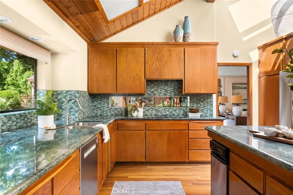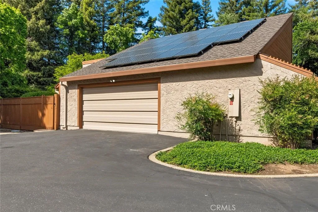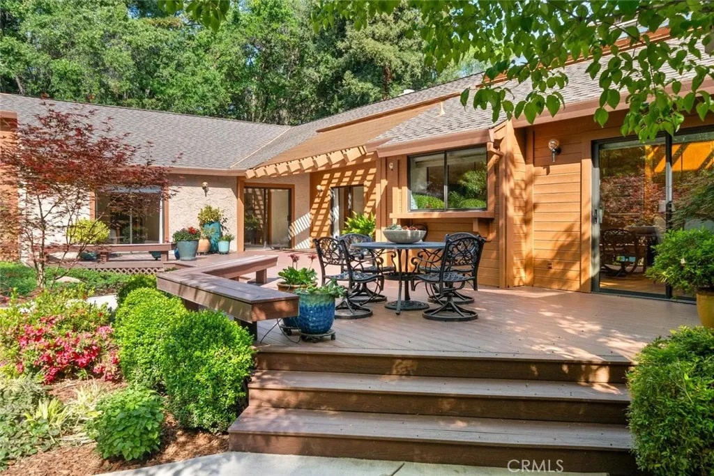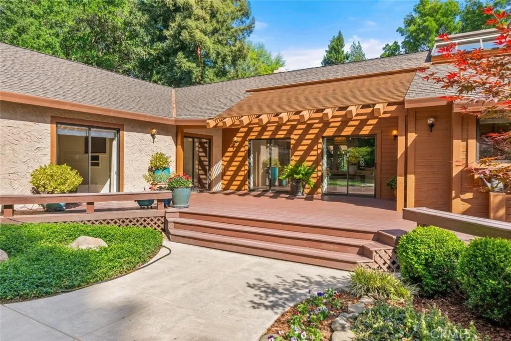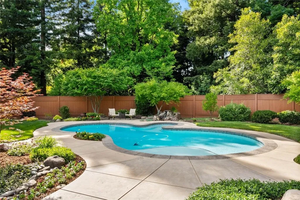 This custom designed 3 bedroom, and 2.5 bath home has been held by its original owner since the day it was built, and now it is available for the very first time. Designed by Lenn Goldmann, the residence sits behind a gated entry along a private circular driveway on one of Chico's most desirable streets, offering a rare combination of thoughtful design, quality construction, and exceptional outdoor living. Beyond the gate, the property opens into what feels like a private park. Mature, lush landscaping creates a serene setting, while the backyard features a pool with a waterfall ideal for entertaining. The outdoor space alone sets this home apart from anything else currently on the market. Inside, skylights throughout fill the home with natural light, equipped with automated covers for effortless control of brightness. A split floor plan provides comfortable separation between the bedrooms and main living areas, while wood beam ceilings add warmth and character. Three generously sized bedrooms are complemented by a dedicated office. Owned solar panels keep energy costs low, and the quality of the build remains evident throughout a testament to craftsmanship that has stood the test of time. The neighborhood further elevates this property. The Chico Creek Nature Center is moments away, and Bidwell Park from the popular One Mile area to the expansive trails of Upper Bidwell provides unmatched outdoor recreation. Golfers will appreciate Canyon Oaks Country Club and Bidwell Park Golf Course, while the Five Mile Recreation Area offers additional space to explore. Homes like this simply do not come to market. If you have been waiting for something truly special in Chico, this is your moment.