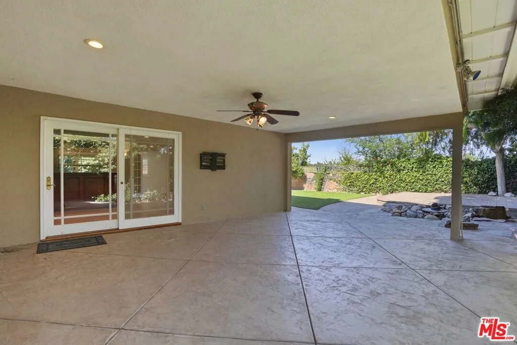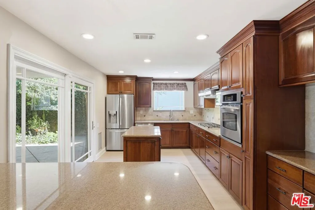 Spacious 4-bedroom, 2-bath home in West Hills with multiple living areas, including a separate living room and family room, plus a flexible fourth room that can be used as a bedroom, office, or additional living space. The kitchen offers extensive cabinet storage, an island, and stainless steel appliances, including a built-in oven, cooktop with hood, built-in microwave, dishwasher, and refrigerator. Just off the family room, a separate bar/entertaining area with sink and mini fridge adds extra convenience for hosting or everyday use. The primary bedroom includes a walk-in closet and private bathroom, while two additional bedrooms feature ceiling fans. The home also offers new flooring throughout, fresh interior paint in most areas, recessed lighting, and central AC and heat. The fully finished garage includes lighting, storage cabinetry, and a high-end washer and dryer, making it ideal for a gym, workspace, or additional storage. A large driveway provides parking for multiple vehicles, along with a universal EV charger. The backyard is designed for both relaxation and use, featuring a large covered patio with ceiling fan, paver areas for seating or gatherings, low-maintenance synthetic grass, and mature greenery including a fruit tree, all creating a private outdoor setting. Located in a desirable West Hills neighborhood with access to highly regarded schools, and close to shopping and dining.