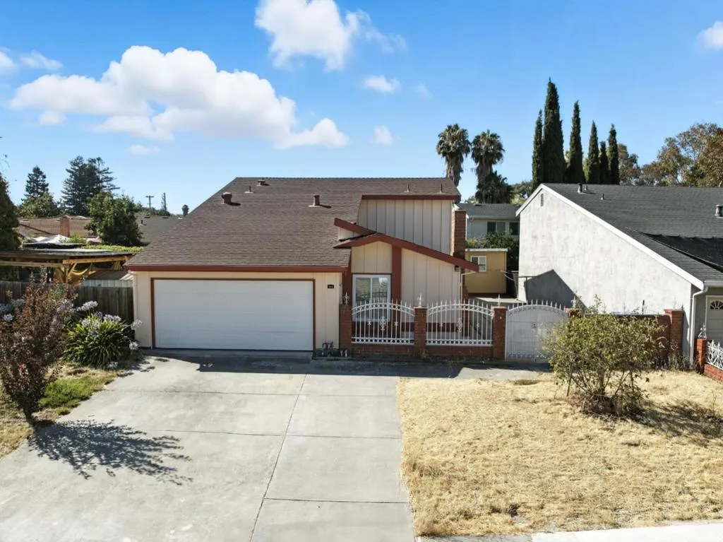 Welcome to this well maintained 4bedroom, 3bathroom home on a quiet cul-de-sac. The bright floor plan features vaulted ceilings, abundant natural light, and an easy flow between the living areas and the kitchen with granite countertops. A main level bedroom and full bathroom add flexibility, and the home includes central heating and air conditioning, a cozy fireplace, and an attached two car garage. An attached studio (permit status unknown) offers an additional bedroom and full bathroom ideal for extended family, guests, or office use. The private backyard provides a comfortable outdoor retreat. Conveniently located near schools, parks, shopping, dining, and major tech campuses. 3D tour has been virtually staged to illustrate the potential use of space