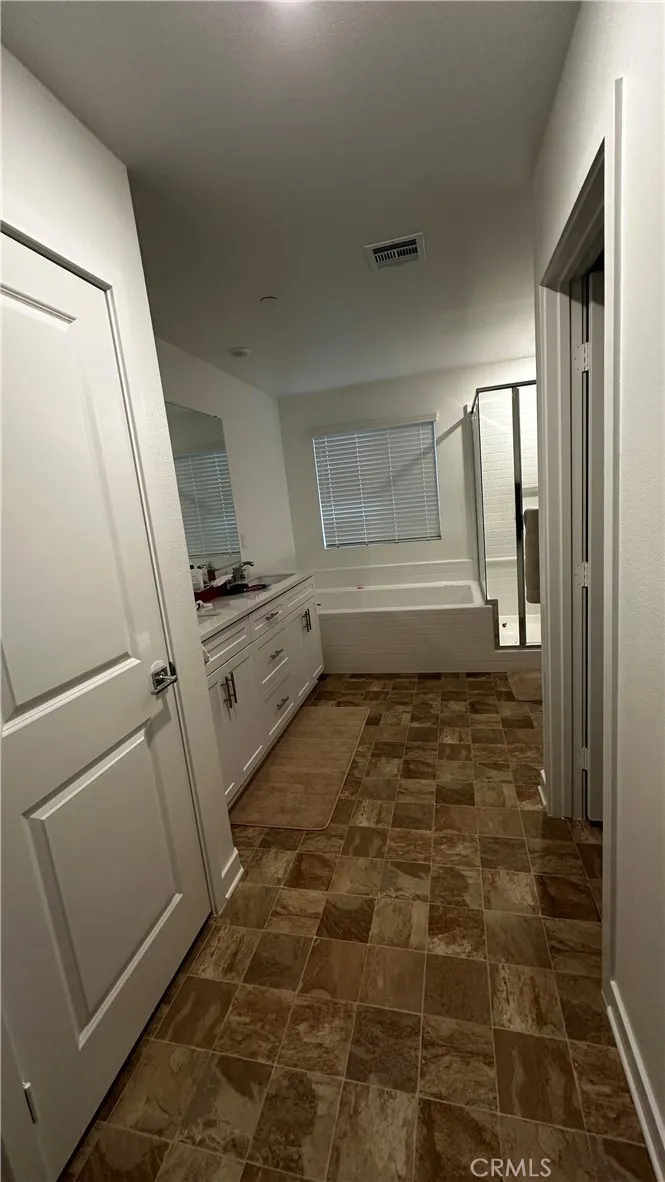 Brand new home for lease featuring 3 bedrooms plus a loft and a 2-car attached garage. The downstairs offers all tile flooring, white vanities, a spacious kitchen island, quartz countertops, and stainless steel appliances. Located in a gated community with access to a pool, spa, and clubhouse. Conveniently within walking distance to Renaissance Market and close to the 210 and 215 freeways.Partially furnished, with washer, dryer and refrigerator, TV, sofa and dining table. Turn key!