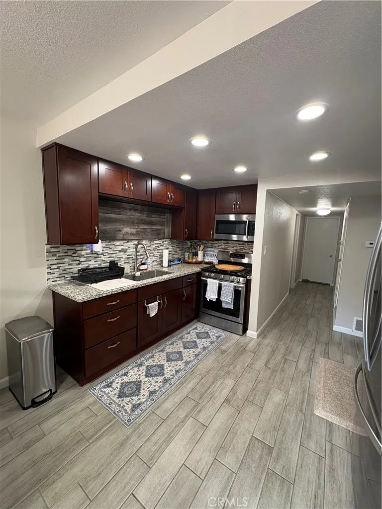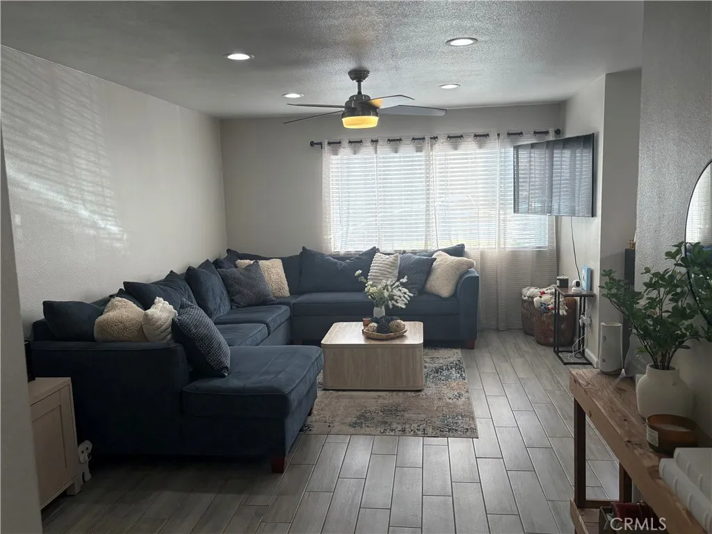 Welcome to this charming, move-in-ready home located in the desirable Canyon Bluffs community. This well-maintained ground-level unit features 2 spacious bedrooms and 2 bathrooms, including a generously sized master bedroom. Step inside to an open and airy living room filled with natural light, creating a warm and inviting atmosphere. The living space flows seamlessly into the dining area and kitchen, with direct access to a private patio—perfect for entertaining family and friends or simply relaxing outdoors. The home is being well taken care of with tile flooring throughout and recessed lighting in both the living room and kitchen, adding a modern touch. Pride of ownership is evident throughout the property. Enjoy resort-style amenities including a community pool and spa, all within a secure, gated community. Don’t miss this opportunity—schedule your private showing today!