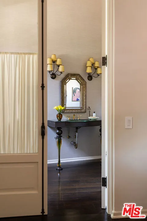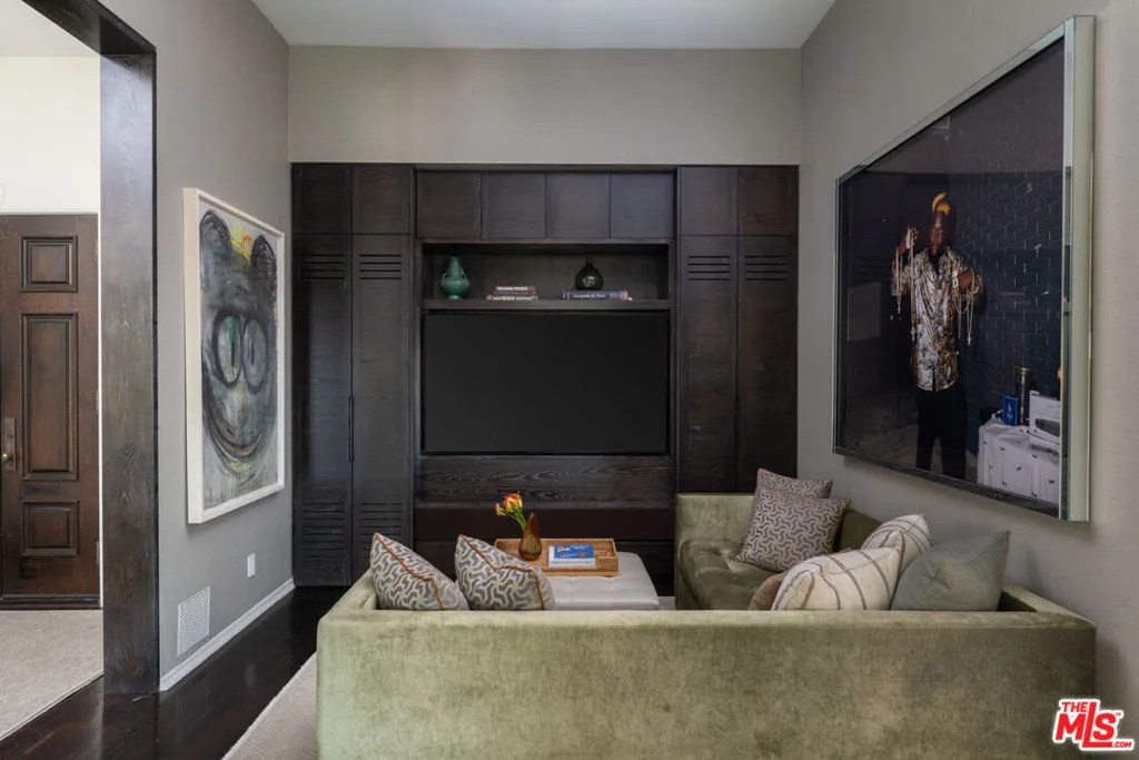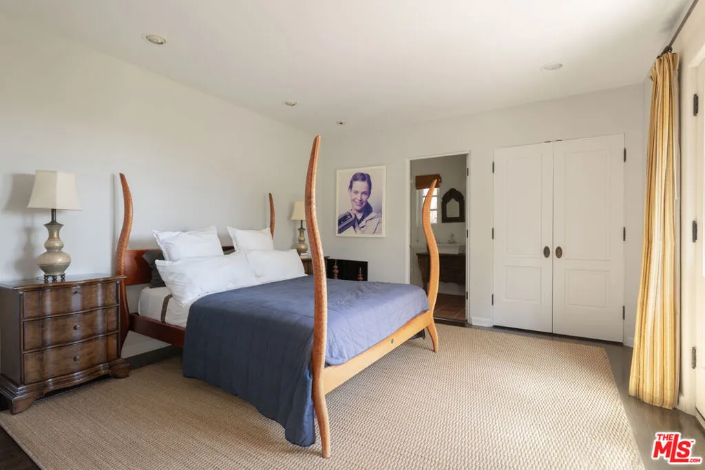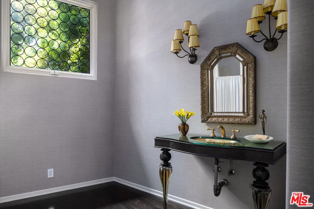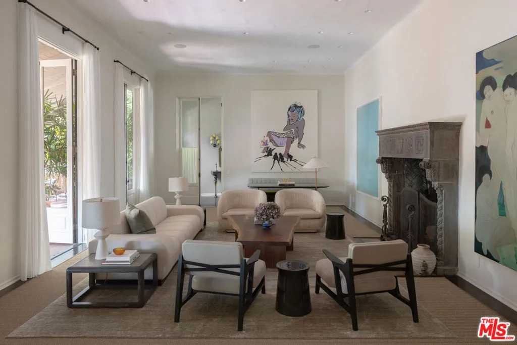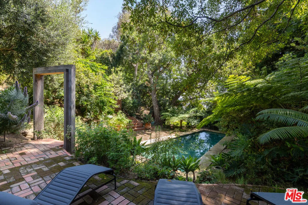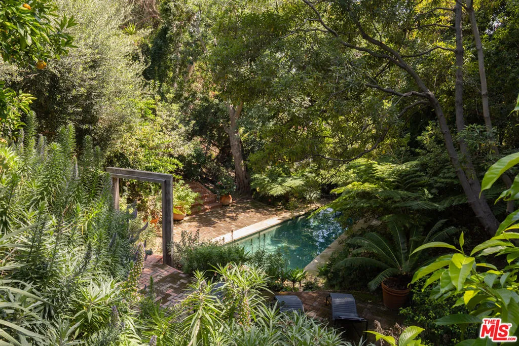 First time available in over 20 years! Stunning 1920's restored & renovated Spanish villa with incredible design along with sensitive attention to original architectural details. Steeped in Hollywood History of legendary figures. Beautiful entry hall opens to a grand scale living room with extra-high ceilings, stone fireplace and French doors that open to the most incredibly large entertainment terrace overlooking the forest like grounds & city views. Gourmet Chef's kitchen with center island, custom cabinetry and polished marble countertops. Formal dining room with walls of view windows opens to the covered terrace w/ outdoor living/dining. Cozy media room/den with built-in cabinetry. Large primary suite with French doors, gorgeous bath w/ soaking tub and custom walk-in closet dressing room. 2 additional en-suite bedrooms plus a separate bonus room for gym, office or possible 4th bedroom/guest area. The unique lush grounds feature mature trees and pathways. The private pool area is in a forest like setting of nature elements w/ city views. Great Outpost location on a cul-de-sac street. Tucked away & private yet convenient to major studios. This is a very unique property rarely seen - don't miss this opportunity - Must see!