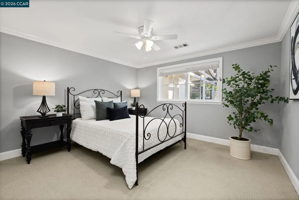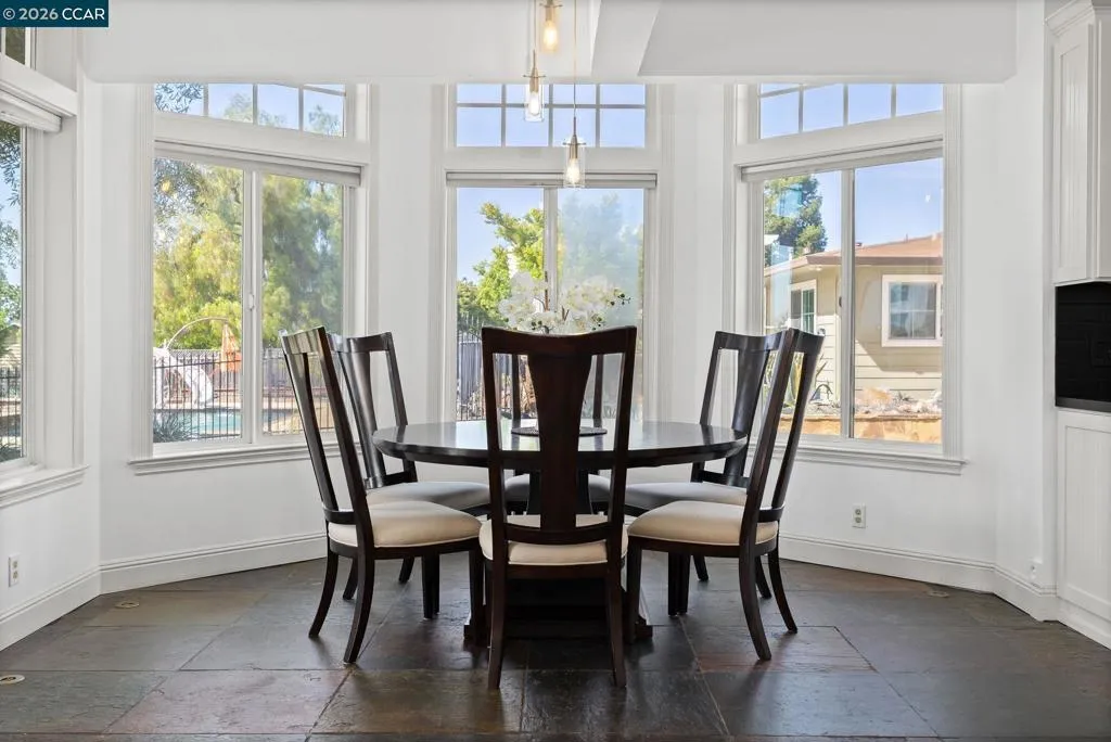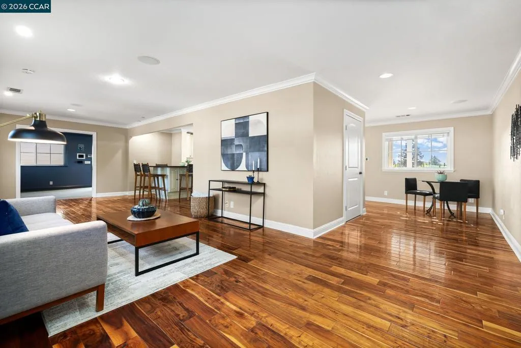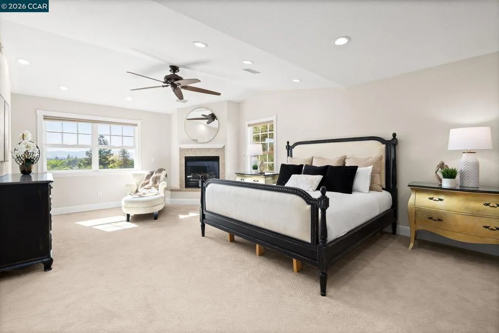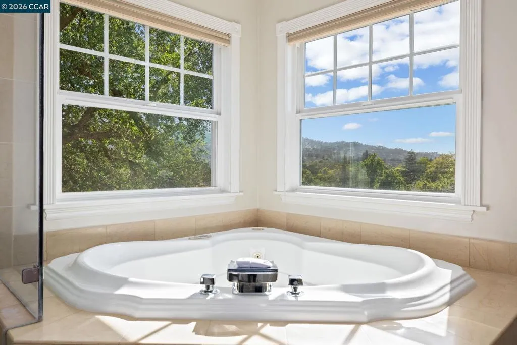 Private gated Northgate estate set on over an acre with a flat lot that backs to an open space setting, a detached ADU, resort-style saltwater pool & sweeping hillside views. Offering a 4,783 sq ft main residence (4 bed, 3.5 bath) & a 2,133 sq ft ADU (2 bed, 1.5 bath), the property delivers exceptional scale, privacy & flexibility. A welcoming entry leads to soaring ceilings, expansive windows & a grand-scale living room anchored by a two-way fireplace, connecting to an intimate sitting area. Natural light & volume define the space, with multiple doors extending to the backyard. A built-in wine & beverage bar is positioned between the living & dining rooms. The dining room connects directly to the outdoor areas, complemented by additional built-in cabinetry for storage & architectural detail. A nearby half bath & interior access to the cellar add convenience. The kitchen balances everyday function with entertaining, featuring a large center island with seating, quartz countertops, extensive cabinetry, a built-in refrigerator, gas cooktop & double ovens. A walk-in pantry, utility room & main-level laundry streamline daily use, while a built-in desk area provides flexible workspace. The kitchen flows into a casual dining area & family room with fireplace, creating a natural gathering space. A main-level bedroom ensuite with direct deck access offers flexibility for guests, extended living or a private office. Upstairs, the primary suite is privately positioned with hillside views, a fireplace, sitting area, dual walk-in closets & a large-scale bath with dual sinks, toilets & soaking tubs. Additional bedrooms are generously sized with bright exposures & share an updated hall bath. The ADU adds substantial value & versatility with a 2 bedroom, 1.5 baths, full kitchen, living area, 8-seat theater room & access to a separate garage with laundry hookups & a hydraulic lift. The outdoor setting centers around a saltwater pool & spa with pebble finish, waterfall, fountains & slide. A covered outdoor kitchen with built-in BBQ & bar seating overlooks the pool & surrounding hills, while patios, lawn areas & mature landscaping create distinct areas for entertaining & everyday use. The property also includes a detached flex space positioned between the main home & ADU, ideal for hobbies, gardening or storage. Located near top-rated schools, Shell Ridge Open Space, hiking & biking trails, shopping & dining.