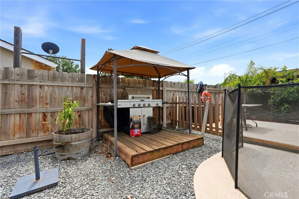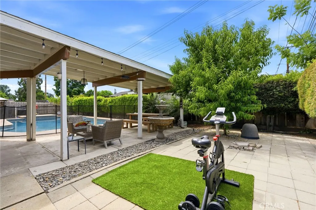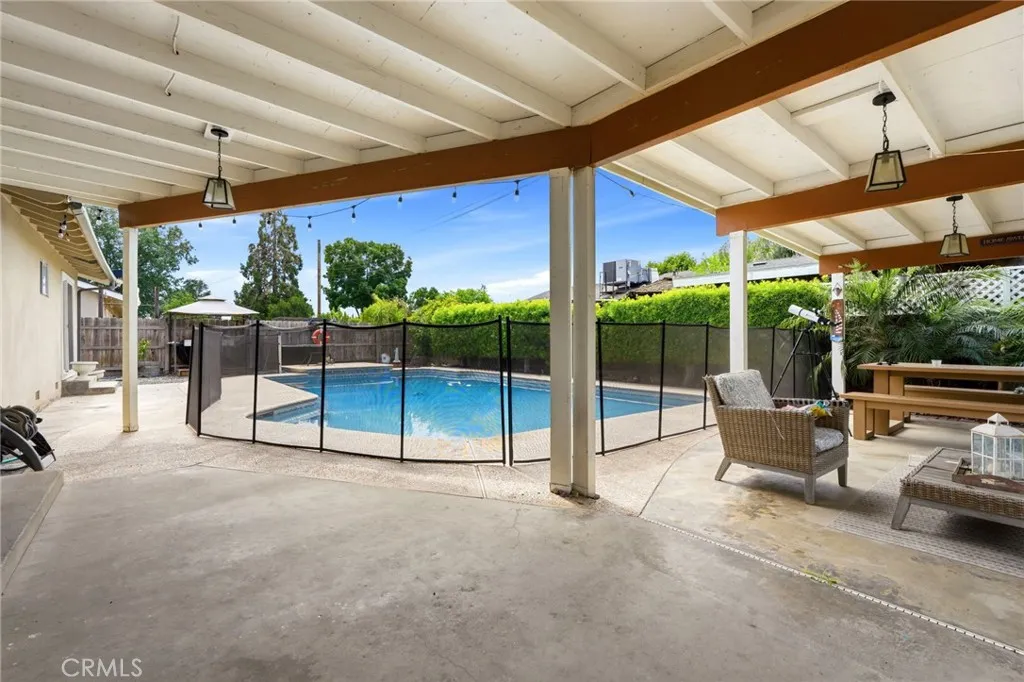 Welcome to this well maintained home in the city of Visalia. This home has 3 bedrooms, 2.5 bathrooms, a family room with fireplace, and attached 2 car garage with storage, and a gated pool (the gate can be removed). The property has a new HVAC, water heater, paid solar panels, new microwave, pool pump, and covered patio. The pool and yard have been professionally maintained. It also have bushes in the backyard for privacy. The house has been remodeled with tiled and replastered pool, granite counter tops in kitchen and both baths.