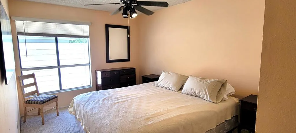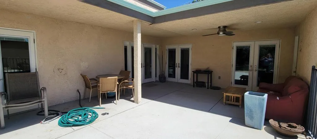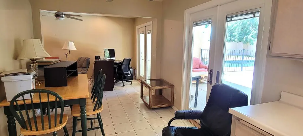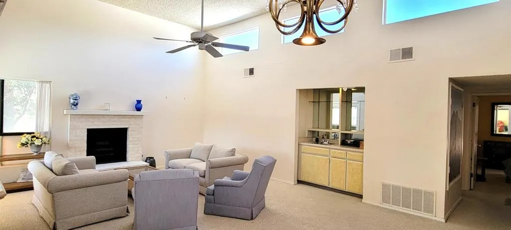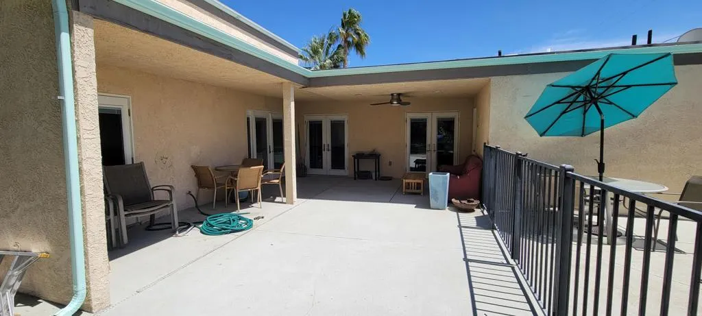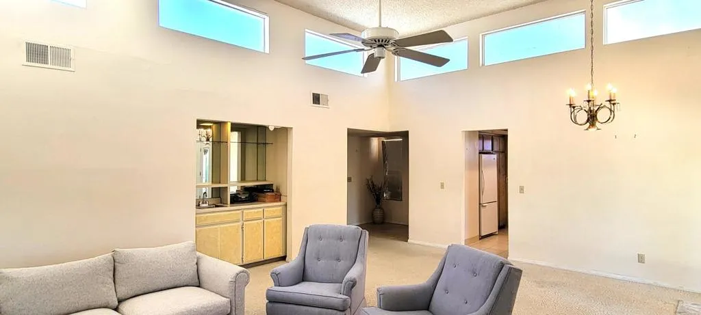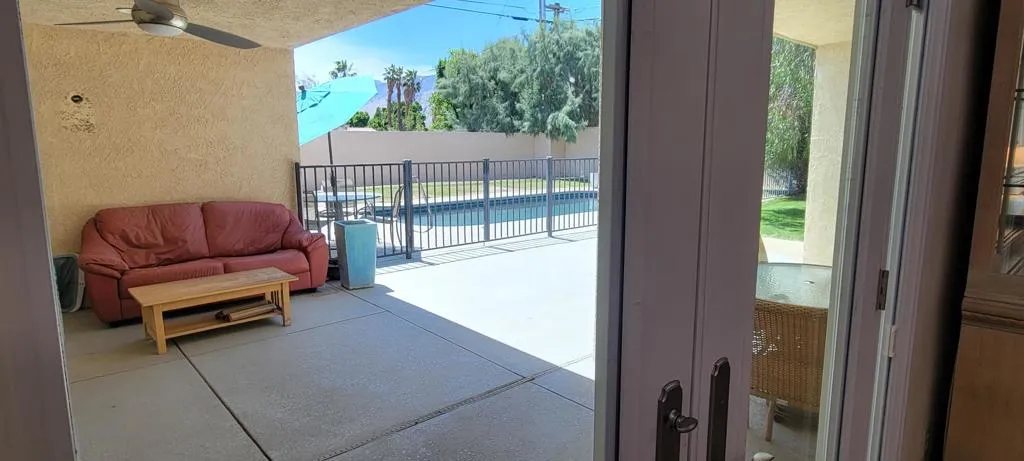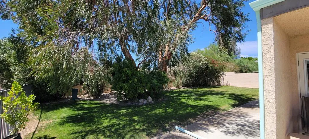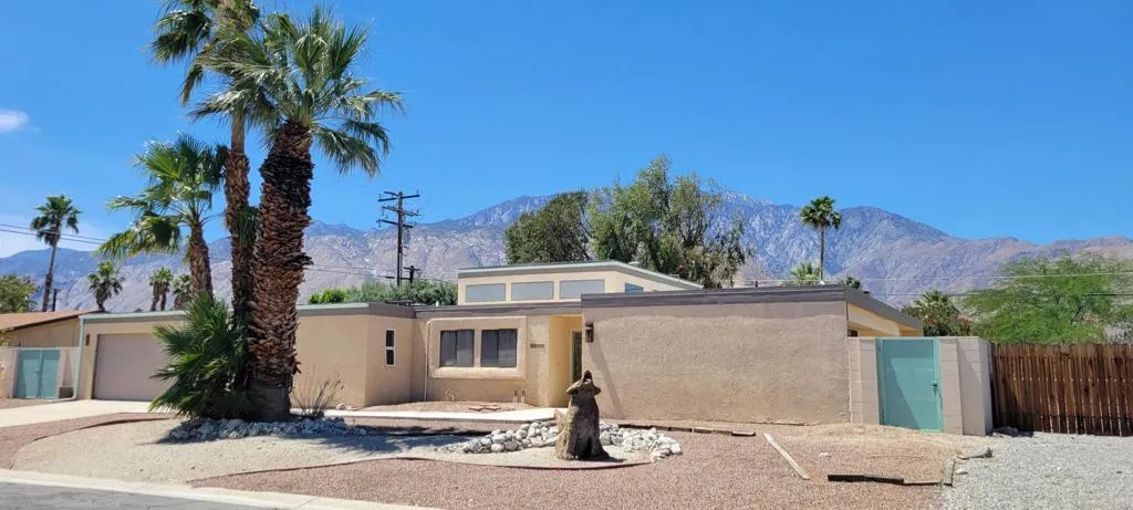 Nestled in Desert Park Estates,this 3 bedroom/3 bath, 1,862 sf home on a larger 11,326 sf lot is ready for you to add your personal touches and make it your own whether it be a primary home or desert retreat. Feel gently caressed by the San Jacinto mountain range while relaxing in and around your security fenced pool, entertaining on the covered patio or playing croquet on the ample lawn shaded by mature landscaping. While this is a large neighborhood, it has a real community feel to it with a range of mid-century homes and contemporary styles from the 70s and 80s. Special features of this home include: a permitted den/office off the kitchen. Additional storage areas/pantry off of the kitchen. Double paned French doors in livingroom, den/office and dining room with the blinds in between the glass panes. The 3rd (3/4) bathroom is located just inside the 2 car garage for easy access from the pool. The clerestory windows in the livingroom area of the home give abundant natural light along with the skylights in the 2 interior bathrooms. Priced well below others in the area to afford you the ability to dream big!