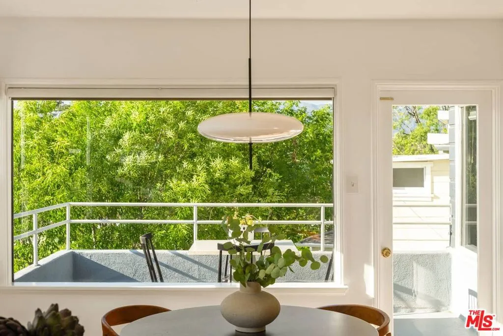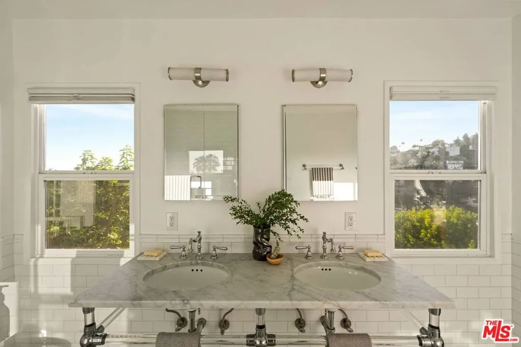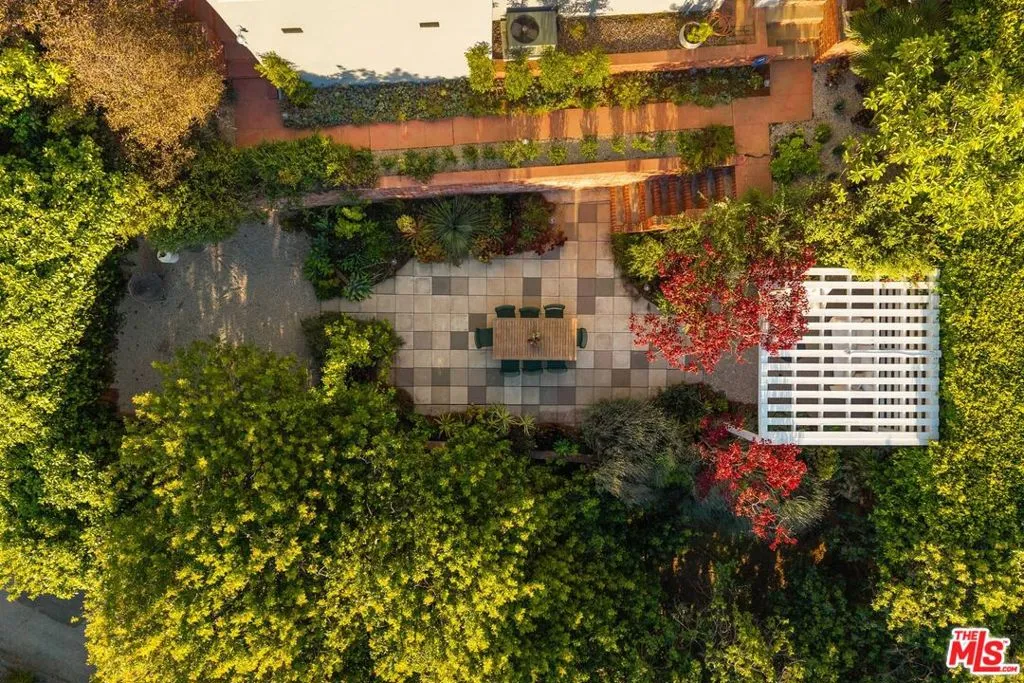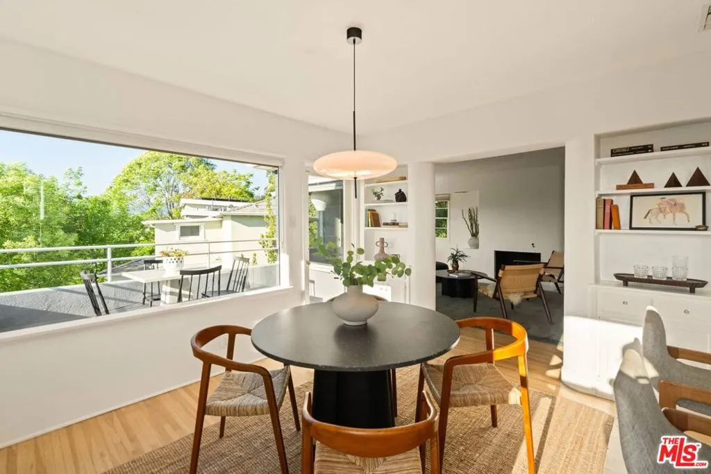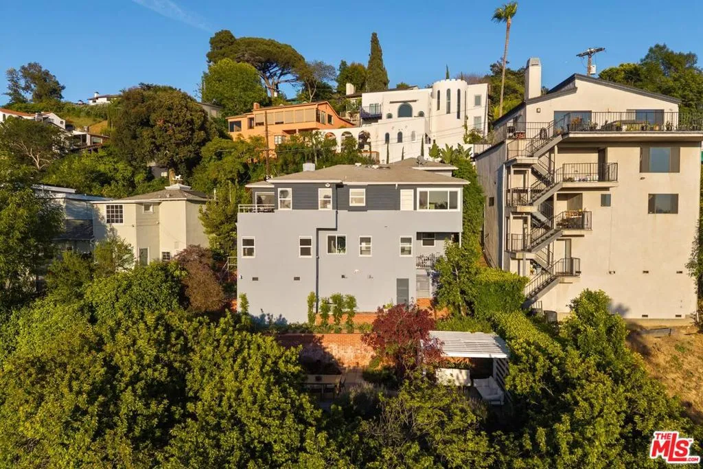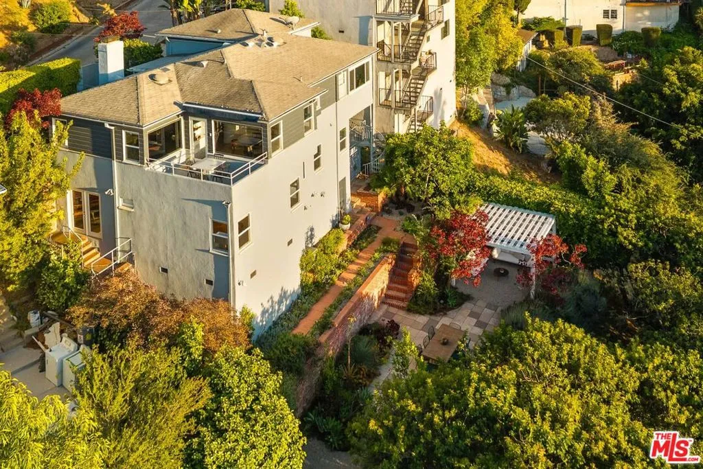 Perched high on a hill with sweeping panoramic views, this stunning light-filled 1930s Streamline Moderne holds its period integrity while offering thoughtful updates throughout. The property boasts multiple outdoor spaces perfect for enjoying breath taking views. A gated entrance leads to a private garden oasis designed for lounging and relaxation. The home's formal entry opens to a step-down living room with a classic fireplace that exudes timeless elegance. The formal dining room features original built-in cabinetry and shelves and opens to a terrace with beautiful canyon vistas shielded by an impressive retractable awning making any time of day the perfect time to enjoy fresh air and views! The kitchen is a perfect fusion of modern and vintage design, featuring a large walk-in pantry and a breakfast room that can double as a workspace with direct garage entry and views for inspiration! A chic guest bath with a classic porthole window, a nod to the home's Moderne roots, completes this level. A striking circular staircase leads to the lower level, where a generous primary suite awaits. This sanctuary boasts a luxurious bath with a dual-sink marble vanity, a soaking tub and shower, and spacious dressing area. The custom walk-in closet offers an impressive storage system, ensuring both style and order. A second bedroom features soaring ceilings and private bath, while the third room, featuring decorative fireplace and an extra-large walk-in closet is perfect for a home office or a third bedroom. French doors open to a path to both upper and lower yards. A laundry closet rounds out this level, offering convenience and efficiency. Outside, the lower yard is an entertainer's dream, featuring a dining patio, lounge with pergola, ample space for gardening. Fully walled and gated for the ultimate in privacy and security. Located just moments from local hot spots, including the scenic reservoir path, meadow and dog park, and a variety of shops and restaurants. This home offers an unrivaled combination of style, privacy, and convenience.