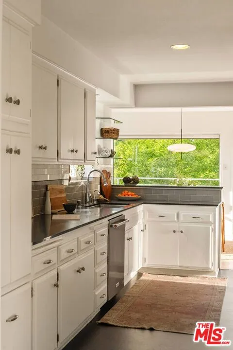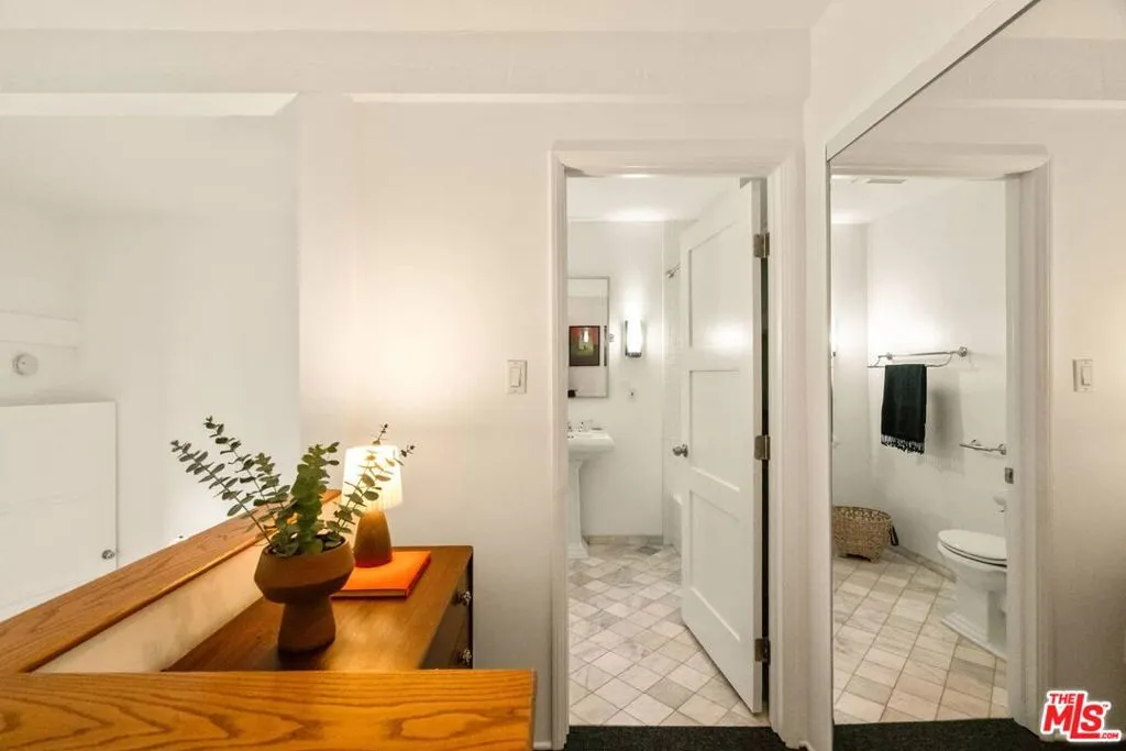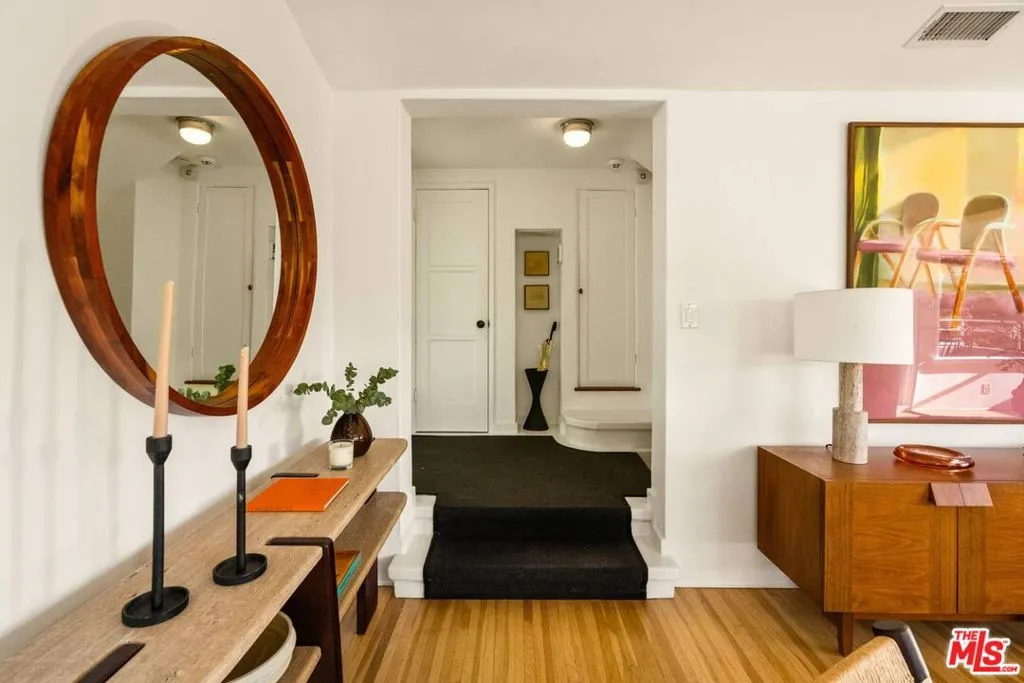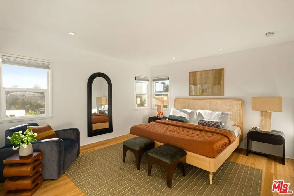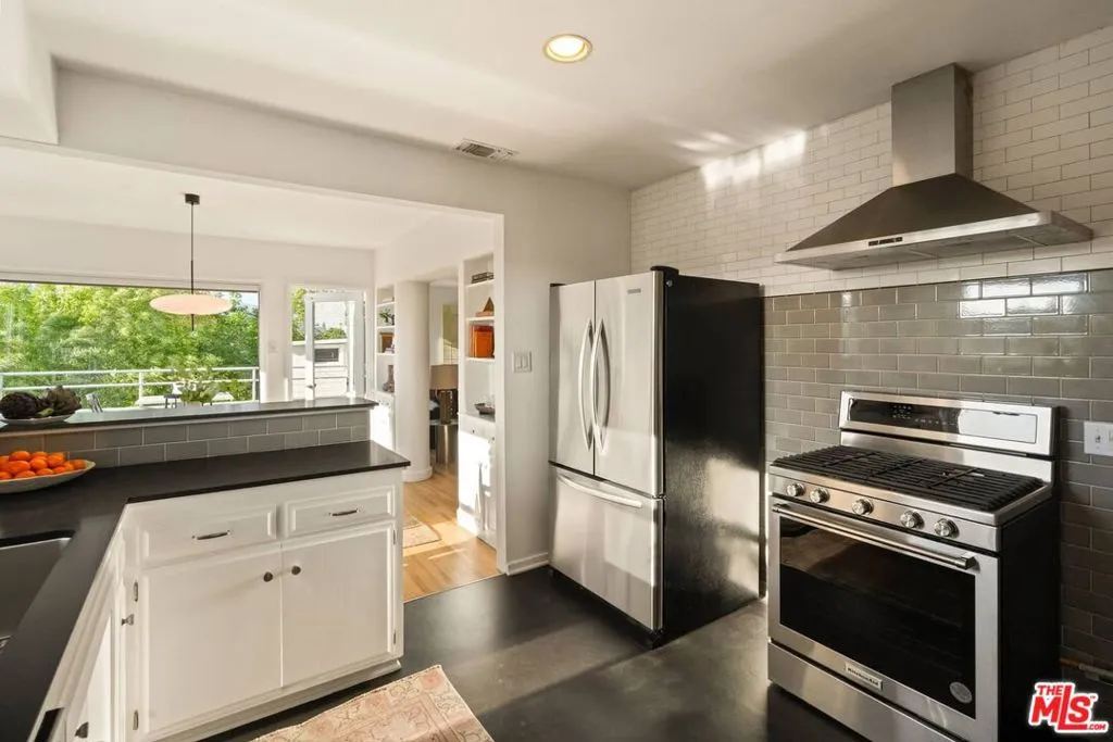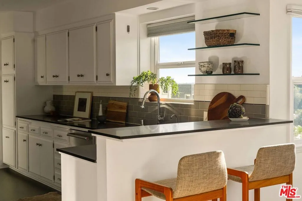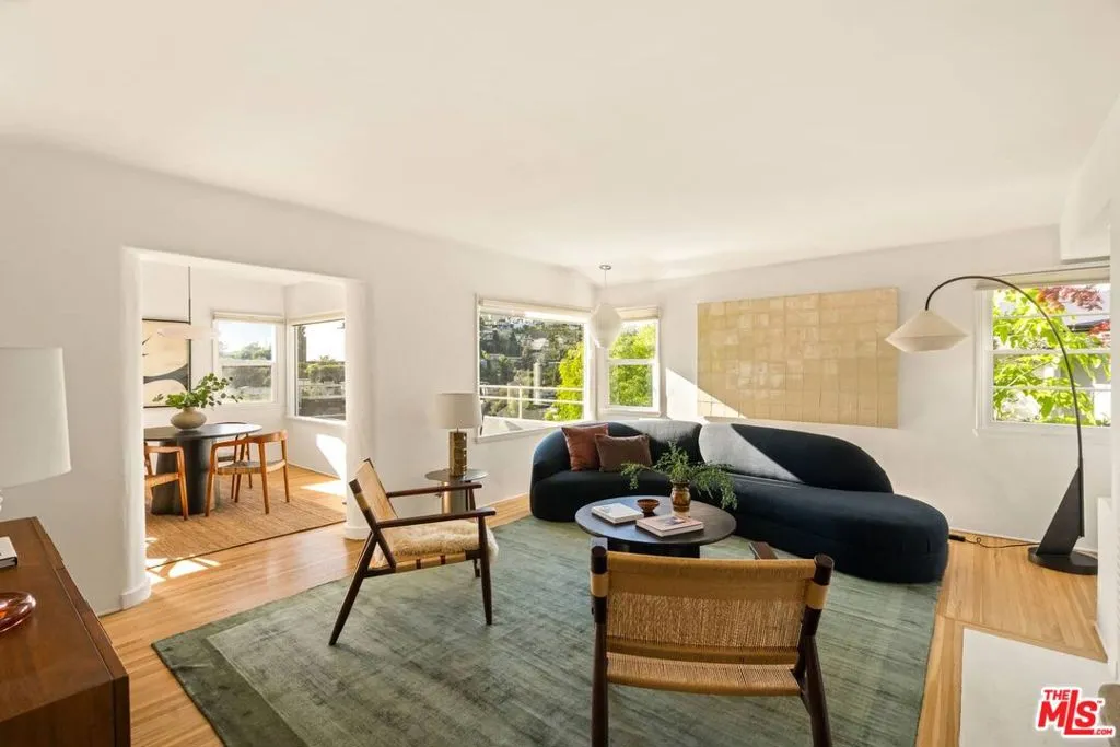 Perched high on a hill with sweeping panoramic views, this stunning light-filled 1930s Streamline Moderne holds its period integrity while offering thoughtful updates throughout. The property boasts multiple outdoor spaces perfect for enjoying breath taking views. A gated entrance leads to a private garden oasis designed for lounging and relaxation. The home's formal entry opens to a step-down living room with a classic fireplace that exudes timeless elegance. The formal dining room features original built-in cabinetry and shelves and opens to a terrace with beautiful canyon vistas shielded by an impressive retractable awning making any time of day the perfect time to enjoy fresh air and views! The kitchen is a perfect fusion of modern and vintage design, featuring a large walk-in pantry and a breakfast room that can double as a workspace with direct garage entry and views for inspiration! A chic guest bath with a classic porthole window, a nod to the home's Moderne roots, completes this level. A striking circular staircase leads to the lower level, where a generous primary suite awaits. This sanctuary boasts a luxurious bath with a dual-sink marble vanity, a soaking tub and shower, and spacious dressing area. The custom walk-in closet offers an impressive storage system, ensuring both style and order. A second bedroom features soaring ceilings and private bath, while the third room, featuring decorative fireplace and an extra-large walk-in closet is perfect for a home office or a third bedroom. French doors open to a path to both upper and lower yards. A laundry closet rounds out this level, offering convenience and efficiency. Outside, the lower yard is an entertainer's dream, featuring a dining patio, lounge with pergola, ample space for gardening. Fully walled and gated for the ultimate in privacy and security. Located just moments from local hot spots, including the scenic reservoir path, meadow and dog park, and a variety of shops and restaurants. This home offers an unrivaled combination of style, privacy, and convenience.