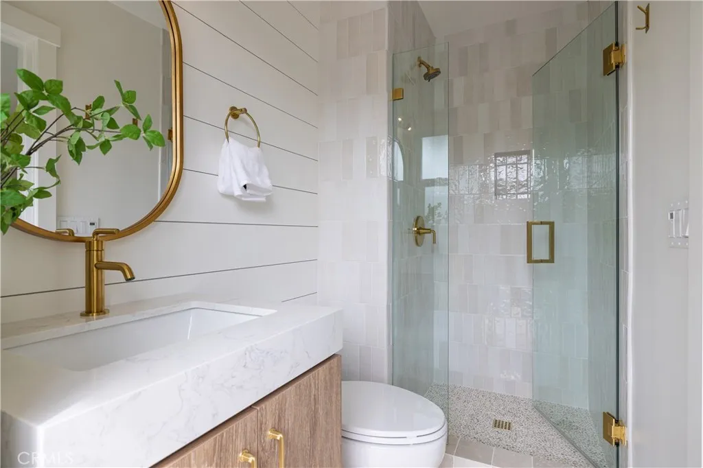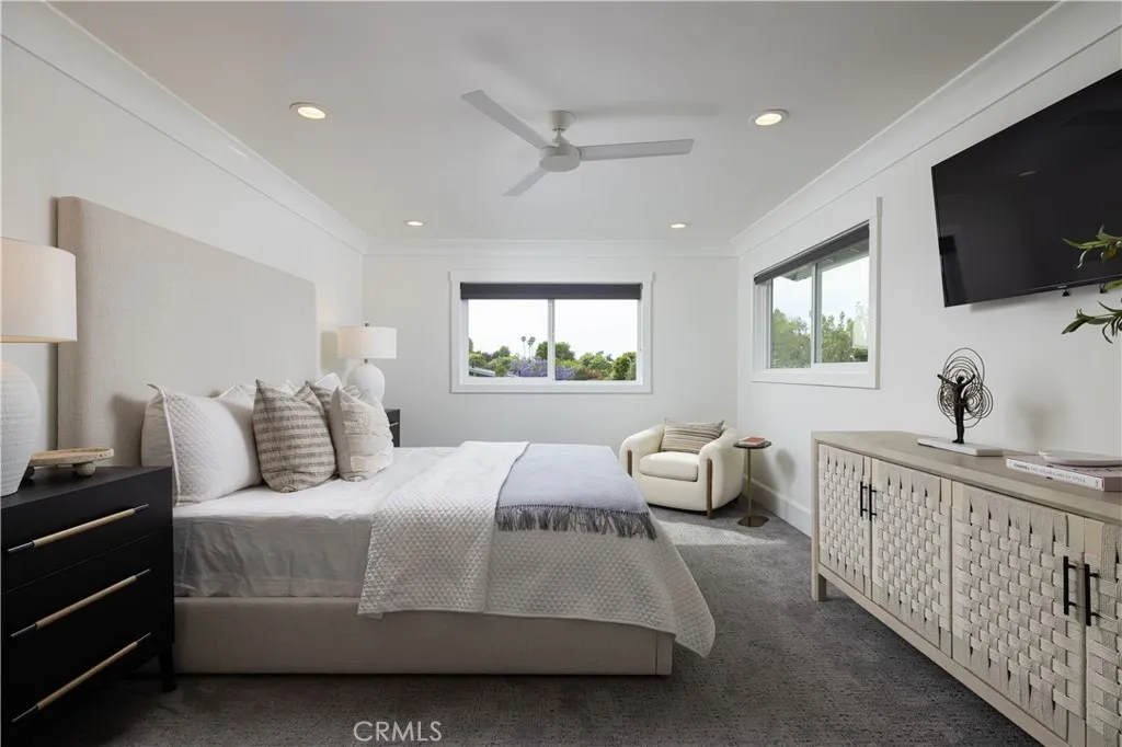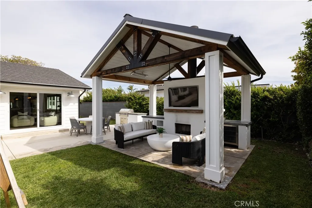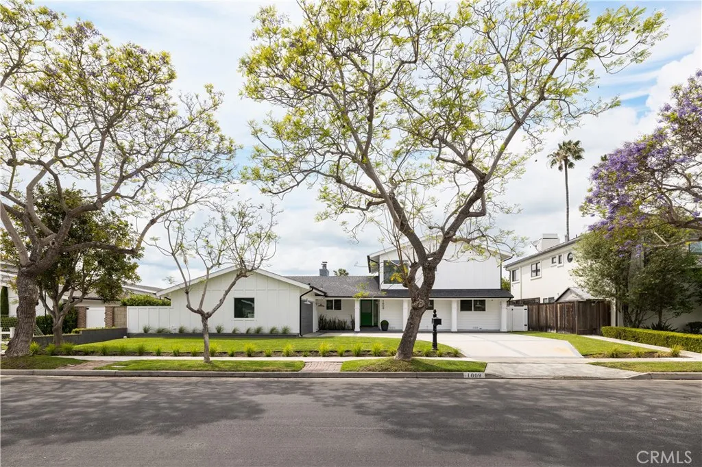Set on an approximately 8,690 sq. ft. lot in the desirable Dover Shores area, this fully remodeled 5-bedroom, 4-bathroom, 2,735 sq. ft. home delivers the Newport Beach lifestyle in every detail. With a true front yard and a sprawling backyard, a genuine rarity in Newport Beach, the property offers the kind of space and privacy families rarely find at this address. Walking distance to award-winning Mariners Elementary, feeding into Ensign Middle and Newport Harbor High, and just minutes from Castaways Park, the Back Bay trails, and the shops and restaurants of 17th Street, this is the address families compete for. A spacious driveway and signature Dutch door set the tone on arrival. Step inside to rich hardwood floors, crown molding, and a light-filled living room anchored by a fireplace with sightlines straight through to the backyard. The kitchen was designed to perform: marble waterfall island with seating for three, farmhouse sink, walk-in pantry, and Viking stainless steel appliances. A second fireplace in the dining area creates seamless flow to the outdoors, making every gathering feel effortless. The backyard is the headline. A freestanding California room with a fireplace, built-in BBQ, refrigerator, Infratech electric heaters, and TV sets the stage for year-round outdoor living, while a sparkling pool, in-ground spa, and lush grass areas complete the picture. Three bedrooms on the main level include one ensuite, plus an elegant full bath with a freestanding clawfoot tub. Upstairs, the primary suite offers a custom walk-in closet and spa-inspired marble bathroom with dual sinks and a dual-head shower. A fifth bedroom rounds out the upper level, ideal as a nursery, playroom, or home office. Taken to the studs in 2017, the home was rebuilt with intention: new James Hardie siding, updated windows, new insulation, electrical panel, alarm system with cameras, and a two-car garage. The Dover Shores area doesn't get better than this.