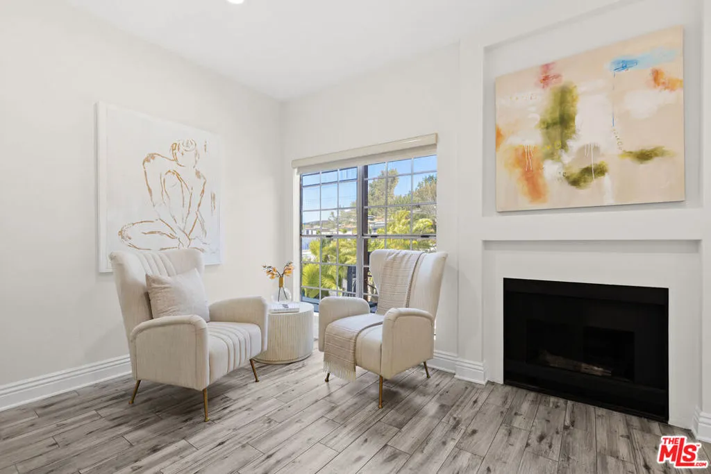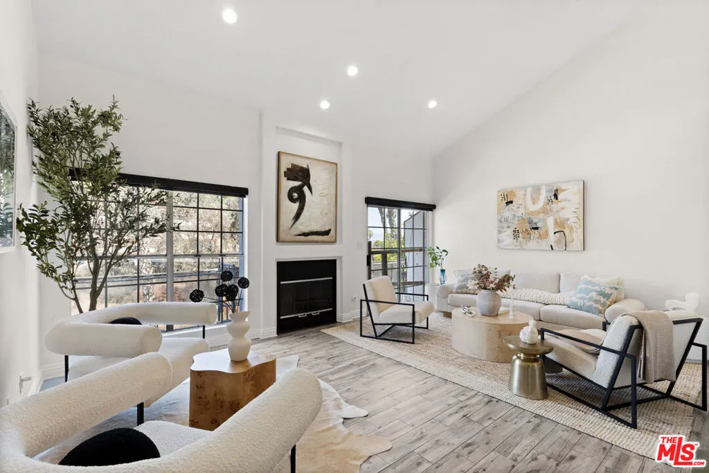 Rarely available 3-bedroom townhome with an attached two-car garage in a gated community in coveted View Park. Defined by tall ceilings and abundant natural light, the main living space is anchored by a fireplace and flows seamlessly into the dining and kitchen areas, creating an open and inviting layout suited for both everyday living and entertaining. Large windows and sliding doors bring in greenery and light, enhancing the home's airy, comfortable feel, while a conveniently placed wine refrigerator near the main living area adds an elevated touch for effortless hosting. The recently renovated kitchen features custom cabinetry, updated countertops, a new range, and stainless steel appliances, all designed with both function and simplicity in mind. A private balcony extends the living space, offering an ideal setting for morning coffee or evening relaxation. The primary suite is generously scaled, complete with its own fireplace, walk-in closet, and a spa-like bath with dual vanities and refined finishes. Two additional bedrooms are well-proportioned and share a full bathroom finished in a cohesive, elevated palette, while a conveniently located powder room serves the main living level. Community amenities include a pool, barbecue area, recreation room, gym, and secure gated access, with HOA covering water and trash. Centrally located with easy access to freeways, parks, shopping, and dining, this is a well-balanced offering combining comfort, convenience, and value in one of the area's most desirable neighborhoods.