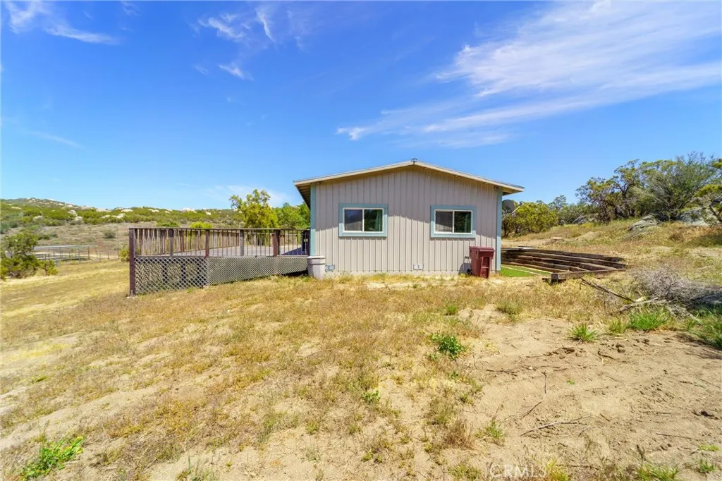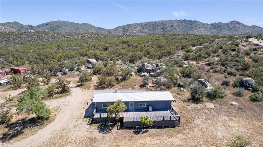 Discover wide-open space, privacy, and country living at its finest with this exceptional 18.45-acre property in Aguanga. Situated at approximately 4,306 feet in elevation, this property enjoys the mild four-season climate the area is known for—offering comfortable living year-round with refreshing breezes and expansive blue skies. Zoned R-A-20, the land is highly usable, featuring mostly flat terrain with —ideal for a variety of uses including ranching, farming, or creating your own private retreat. Tucked away at the end of the road and bordered by public land on three sides, this property delivers rare seclusion and uninterrupted natural beauty. Equestrian enthusiasts will appreciate the setup, which includes partially covered corral areas and ample room to expand. Two storage containers are also included, providing convenient space for equipment, tools, or feed. The 1,716 square foot manufactured home sits on a certified permanent foundation and offers 3 bedrooms and 2 bathrooms. Move-in ready and well maintained, the home has seen numerous updates over the years, including a remodeled kitchen, upgraded bathrooms, newer windows, flooring, roof, exterior siding, and ceiling fans throughout. Enjoy the outdoors from the covered porch or relax on the expansive wood deck, where you can take in sweeping views of rolling hills, valleys, and endless skies. Whether you’re seeking a peaceful homestead, a horse property, or a private escape surrounded by nature, this unique Aguanga property offers space, versatility, and tranquility in a truly scenic setting.
