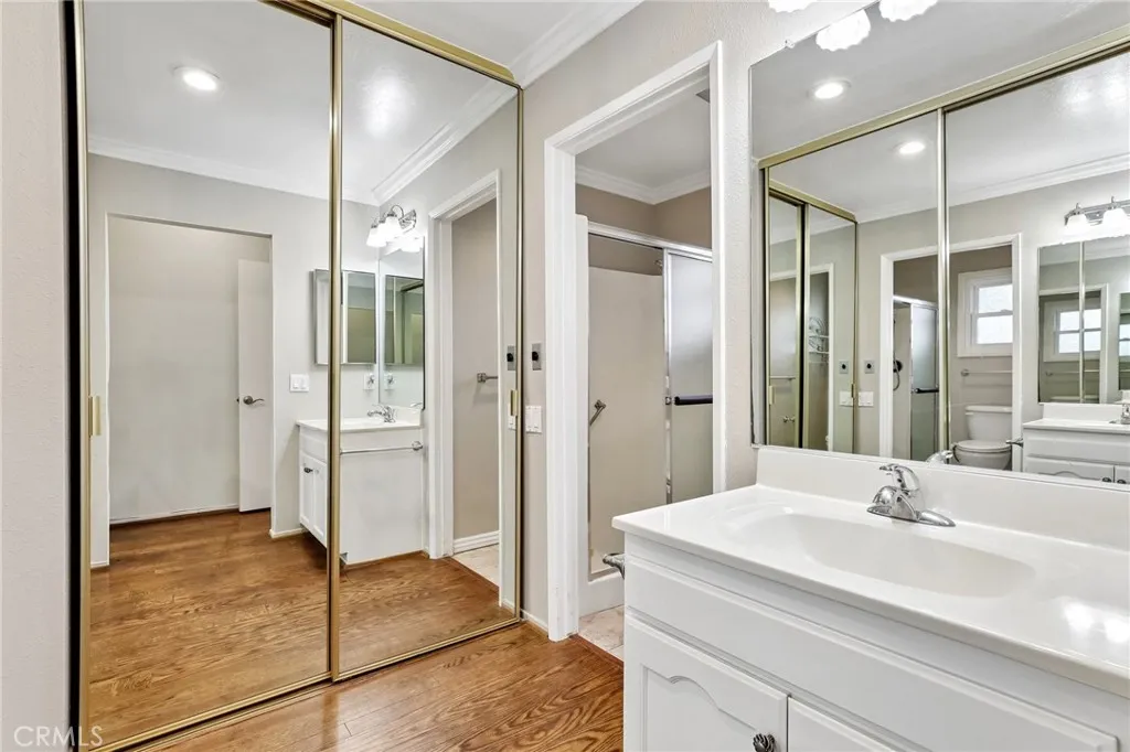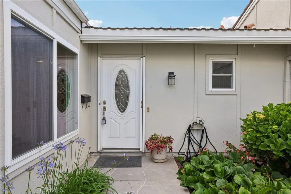 Inviting curb appeal sets the tone from the start, with lush greenery, blooming jasmine, a cheerful lemon tree, and softly glowing solar lights guiding the way to the front door—an entrance that feels as welcoming as it looks. Inside, this desirable El Doble floor plan delivers space, comfort, and just the right amount of “is this really available?” energy. This light-filled, single-level residence features 2 generously sized bedrooms—each with its own en-suite bath—creating a layout that feels more like a thoughtfully designed retreat than a typical condo. Hardwood floors and crown molding carry throughout the main living spaces, while double-pane windows paired with classic shutters bring in natural light with a touch of timeless style. The kitchen offers a crisp, clean aesthetic with granite countertops, a full backsplash, white cabinetry with soft-close drawers, and stainless steel appliances ready for everything from casual mornings to lively evenings. A recently updated HVAC system, including ducting, adds a valuable upgrade already in place. The living room and dining area flow effortlessly into a bright, inviting space anchored by dual sliders that open to a covered patio—complete with skylights and a ceiling fan. Morning coffee, afternoon reads, evening gatherings… it all just works out here. Built-ins in the family room add both charm and function (because storage should look good too). Both bedrooms feel like true suites, featuring dual mirrored closets and private bathrooms—ideal for guests or simply enjoying a little extra breathing room. And for everyday ease, a stacked LG washer and dryer in the garage adds that extra layer of convenience you didn’t know you needed (but won’t want to live without). Set within one of Southern California’s premier 55+ communities, Laguna Woods delivers a lifestyle that feels more like a resort than a neighborhood—golf, tennis, pickleball, pools, spas, fitness centers, clubhouses, even equestrian facilities—all connected by convenient community transportation. Just minutes from Laguna Beach, shopping, dining, and major medical centers, this location keeps everything within reach while still feeling like a world of its own. Opportunities like this don’t tend to linger—so if this one feels like “the one,” you might want to trust that instinct.