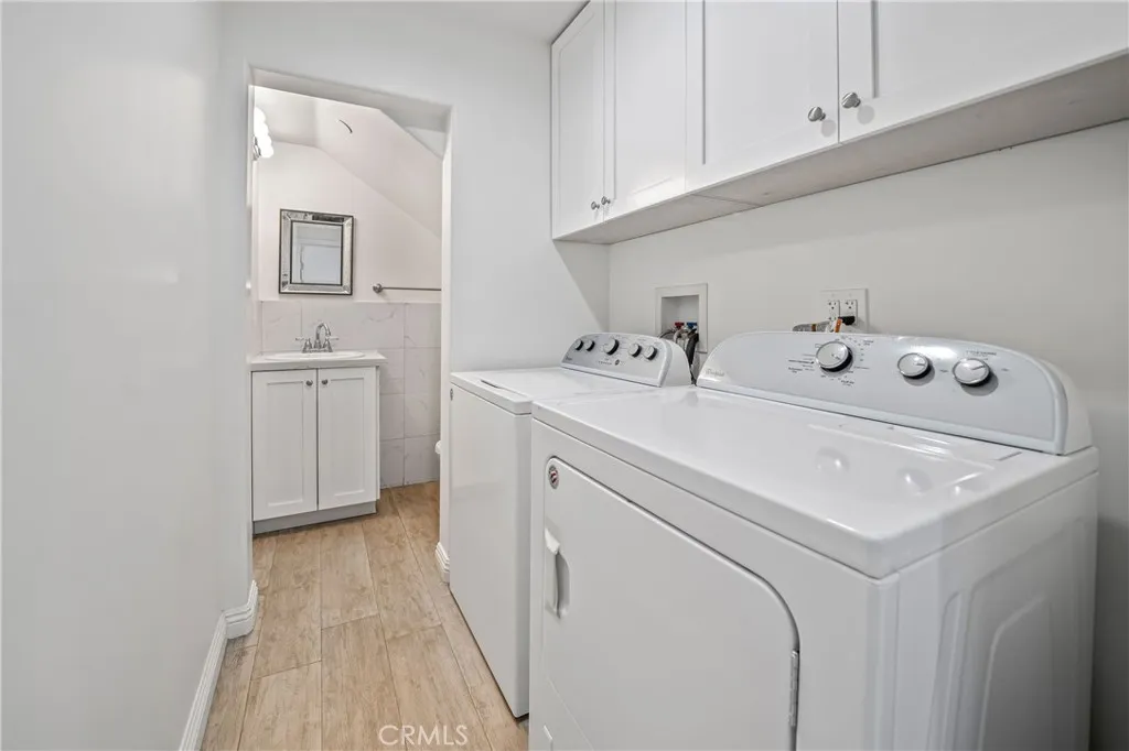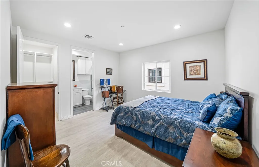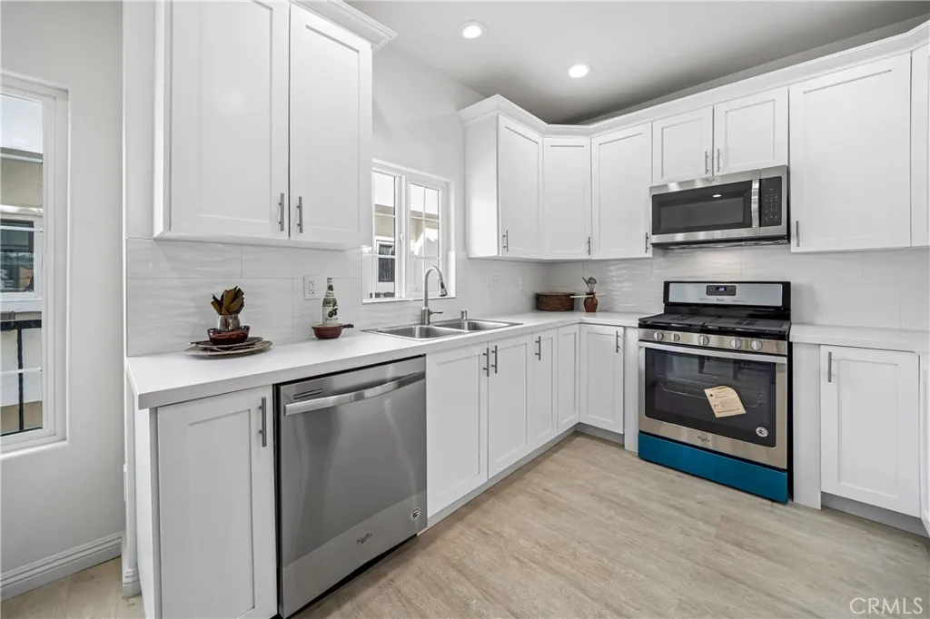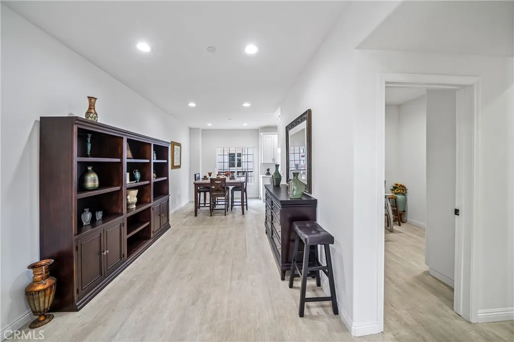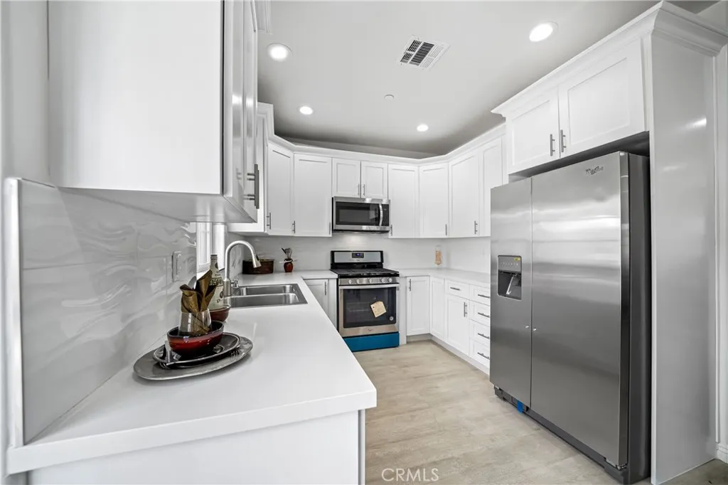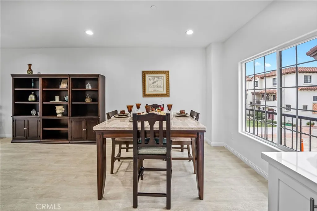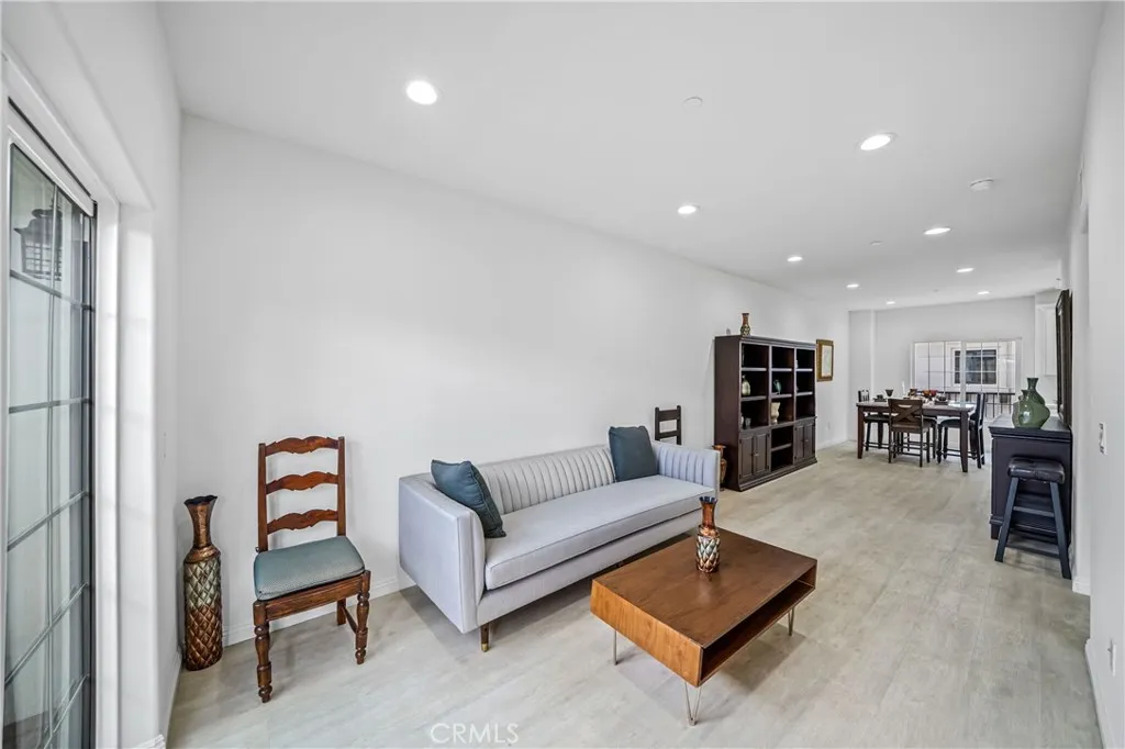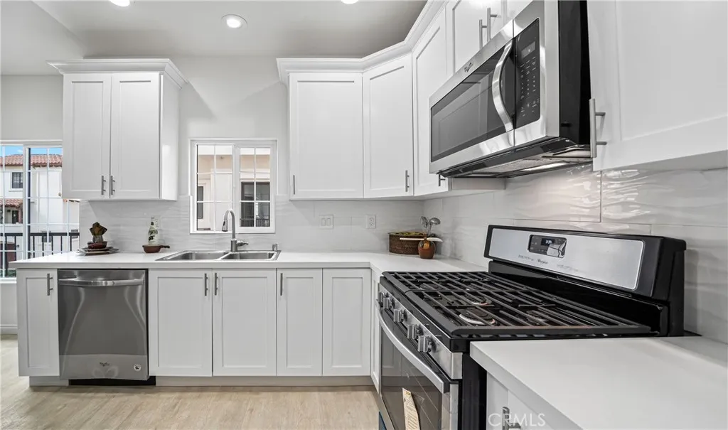 This beautifully designed 1,730 sq. ft. townhome, built in 2020, offers a perfect blend of modern comfort and functional living in the heart of San Fernando, California. Elegant bronze flooring runs throughout, adding warmth and sophistication to the space. The main level features a convenient laundry room, a full bathroom, and well-appointed appliances designed for both style and efficiency. Upstairs, a bright and versatile office area sits adjacent to another full bathroom and opens into a spacious living room with a private balcony—ideal for enjoying scenic neighborhood and mountain views. The dining area flows seamlessly into a contemporary kitchen, complete with crisp white cabinetry and sleek stainless steel appliances, creating a clean and modern aesthetic perfect for everyday living and entertaining. The third floor offers two generously sized bedrooms, each with its own en-suite bathroom and ample closet space. The primary suite stands out as the largest room in the