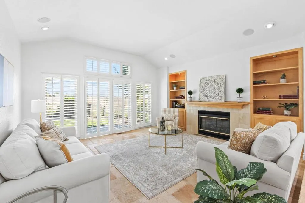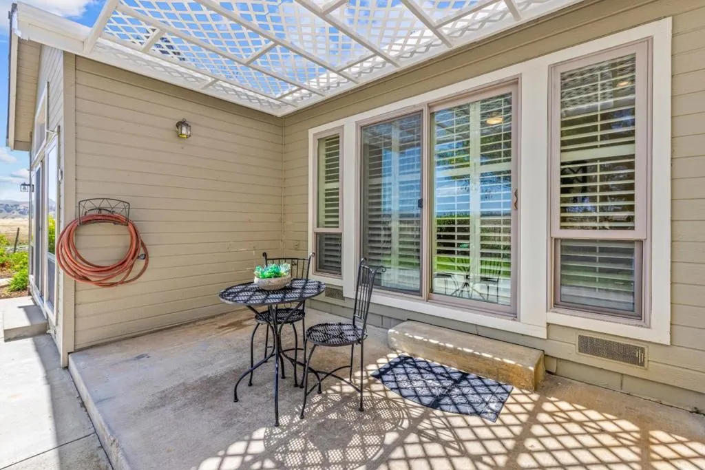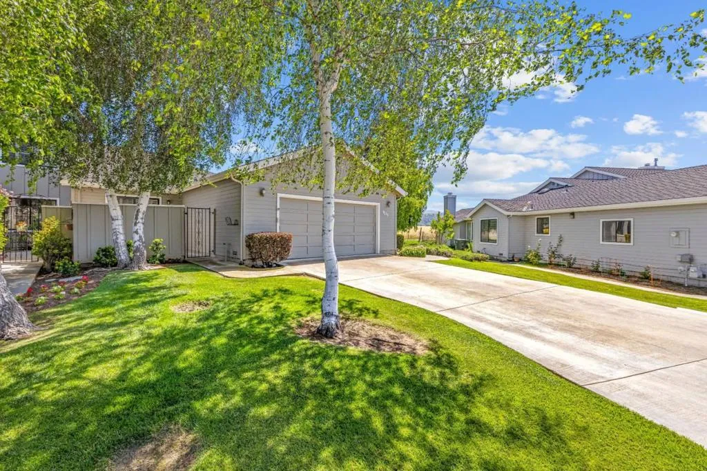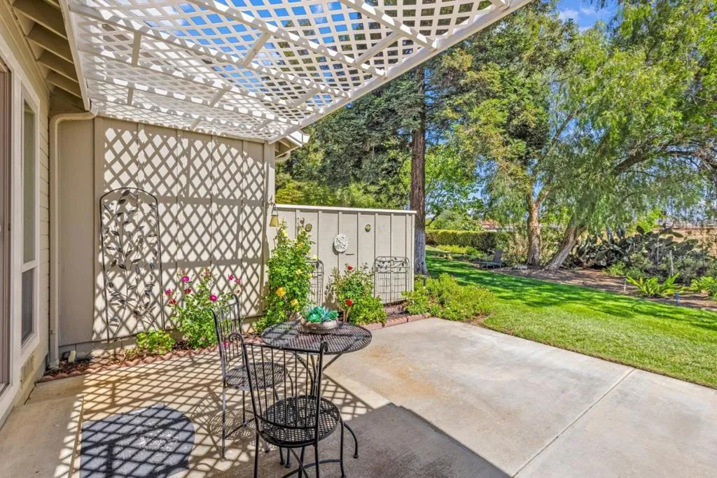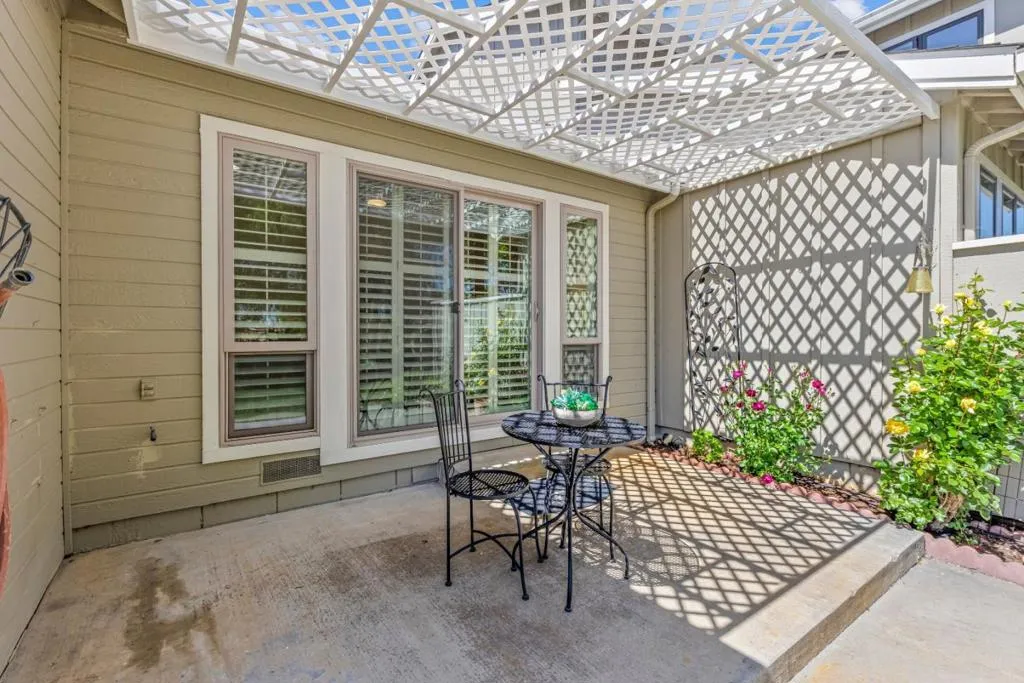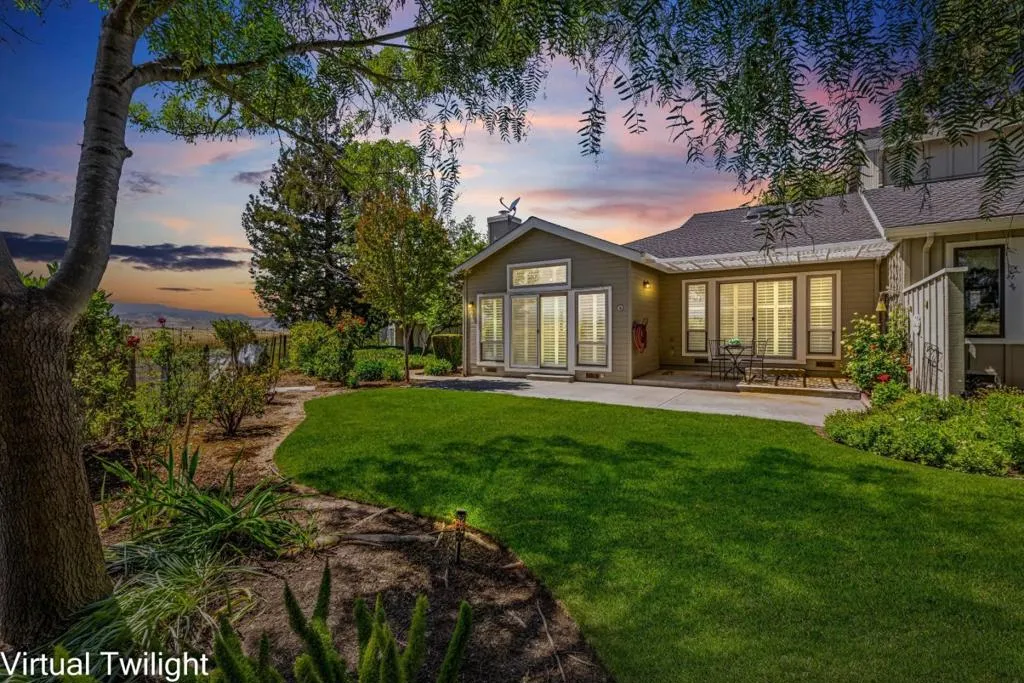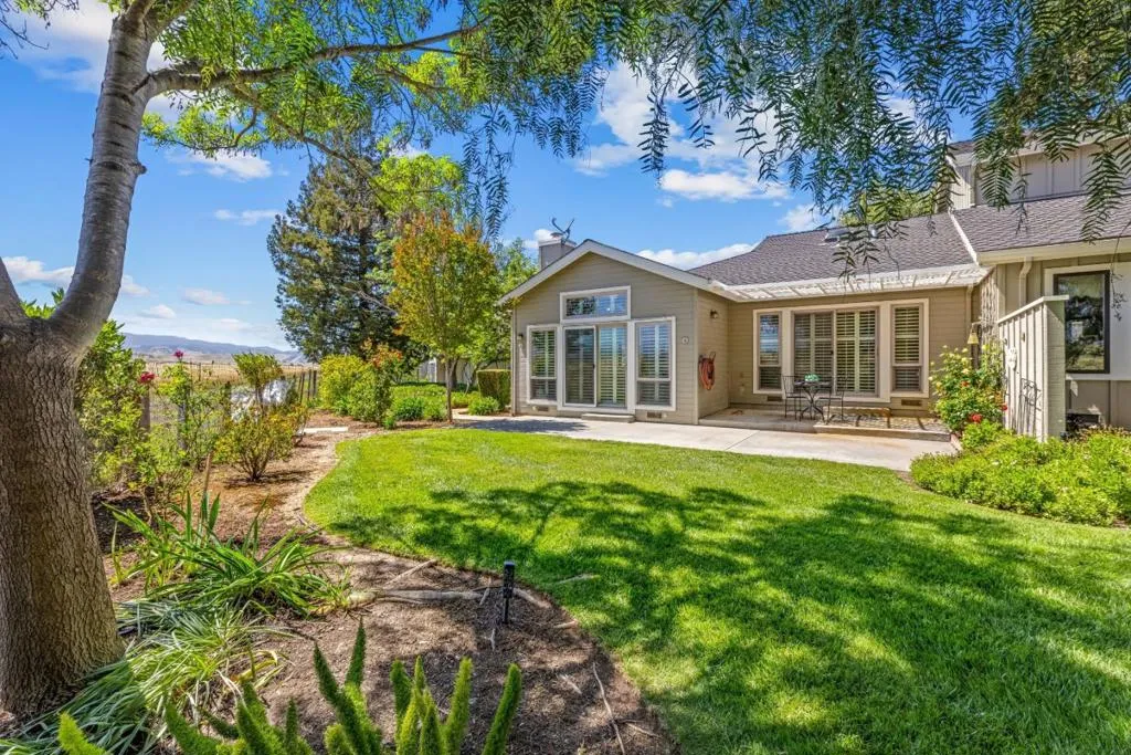 Don't miss out on this immaculate, single-story, end-unit townhome located in the scenic Bluffs community within the Ridgemark Golf Course! This airy and spacious 2 BD/2 BA 1600+ sq ft home features an open space dining room and step-down living room with fireplace. A full wall of windows including a sliding glass door bring in brilliant natural light and provide stunning views of the backyard and open pasture beyond. The kitchen, with a bi-level peninsula for counter dining, is open to a cozy breakfast nook and large adjoining laundry room. The large primary bedroom and ensuite bathroom open to the backyard patio. The second bedroom, with its own ensuite bathroom and office nook, opens to its own private courtyard. The home includes beautiful travertine floors throughout, built-in bookshelves, and a 2-car garage for plenty of storage. The stunning landscaping, all maintained by the HOA, provides a serene setting for this perfect home.