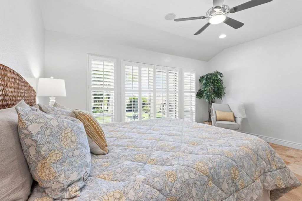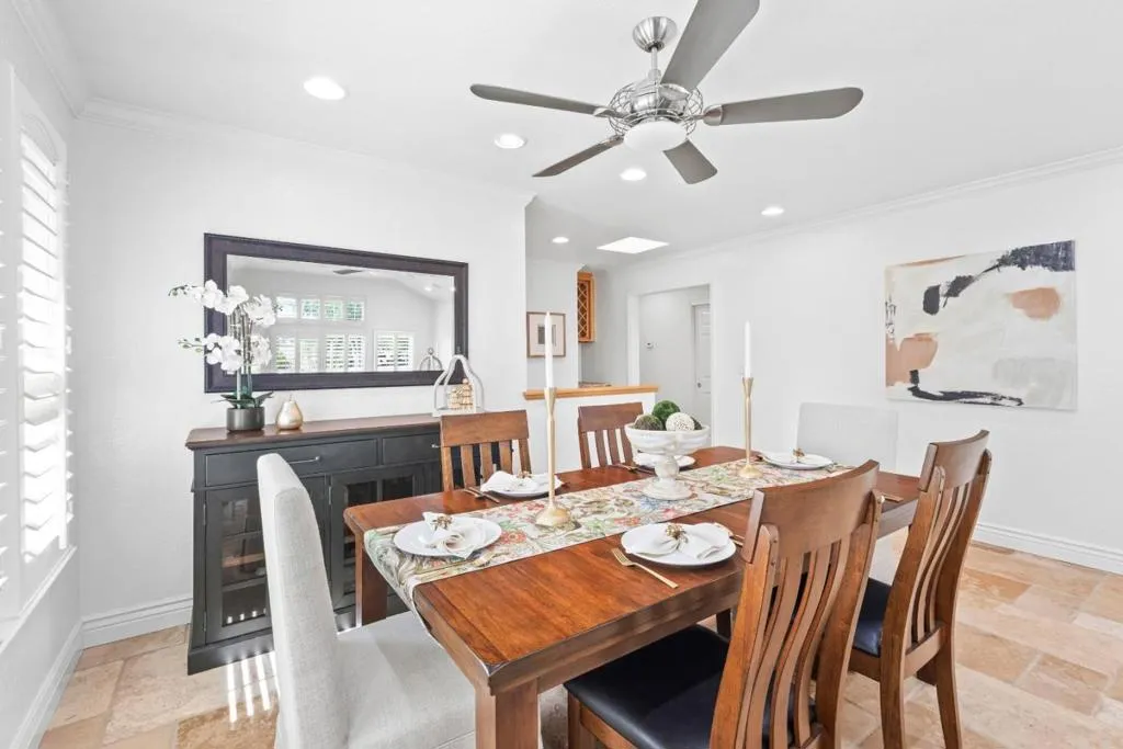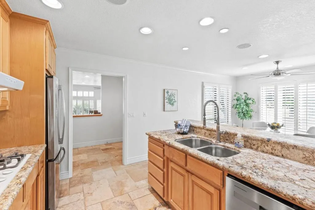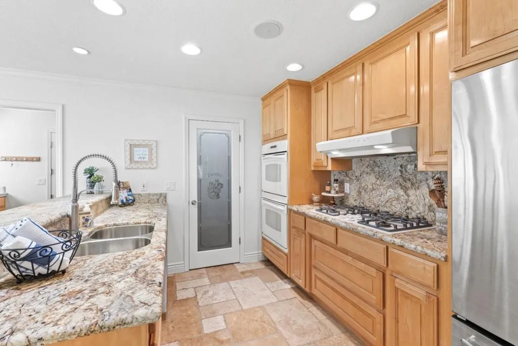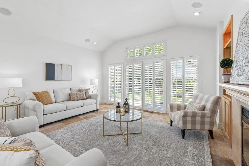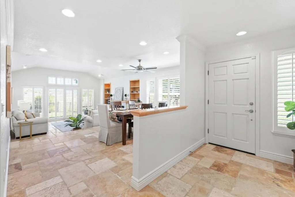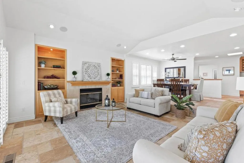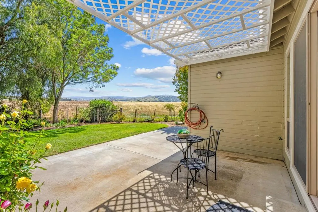 Don't miss out on this immaculate, single-story, end-unit townhome located in the scenic Bluffs community within the Ridgemark Golf Course! This airy and spacious 2 BD/2 BA 1600+ sq ft home features an open space dining room and step-down living room with fireplace. A full wall of windows including a sliding glass door bring in brilliant natural light and provide stunning views of the backyard and open pasture beyond. The kitchen, with a bi-level peninsula for counter dining, is open to a cozy breakfast nook and large adjoining laundry room. The large primary bedroom and ensuite bathroom open to the backyard patio. The second bedroom, with its own ensuite bathroom and office nook, opens to its own private courtyard. The home includes beautiful travertine floors throughout, built-in bookshelves, and a 2-car garage for plenty of storage. The stunning landscaping, all maintained by the HOA, provides a serene setting for this perfect home.