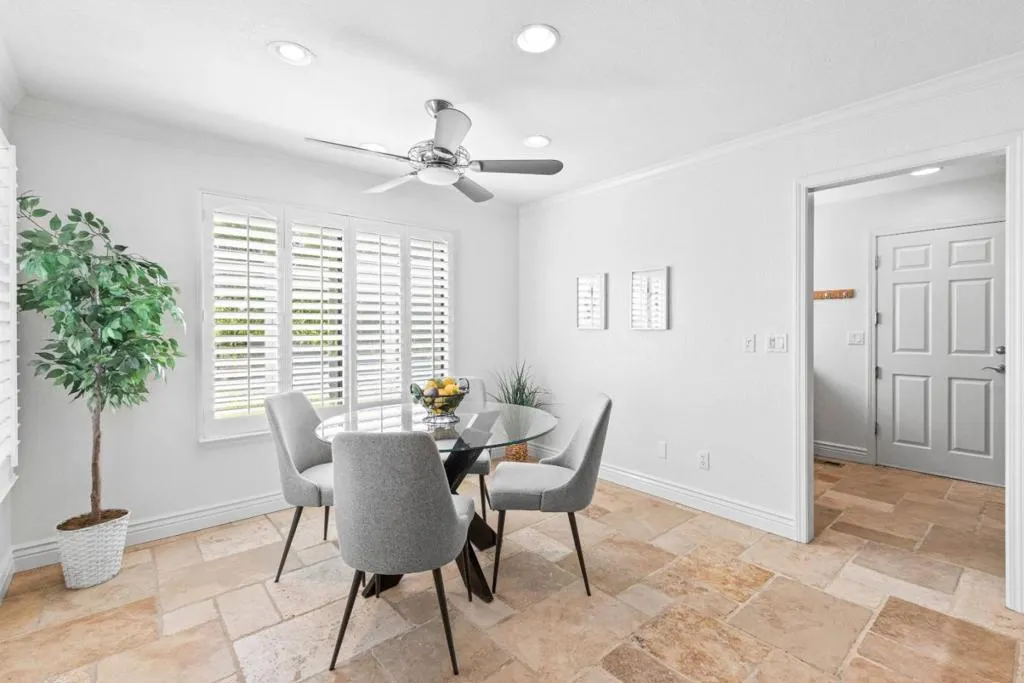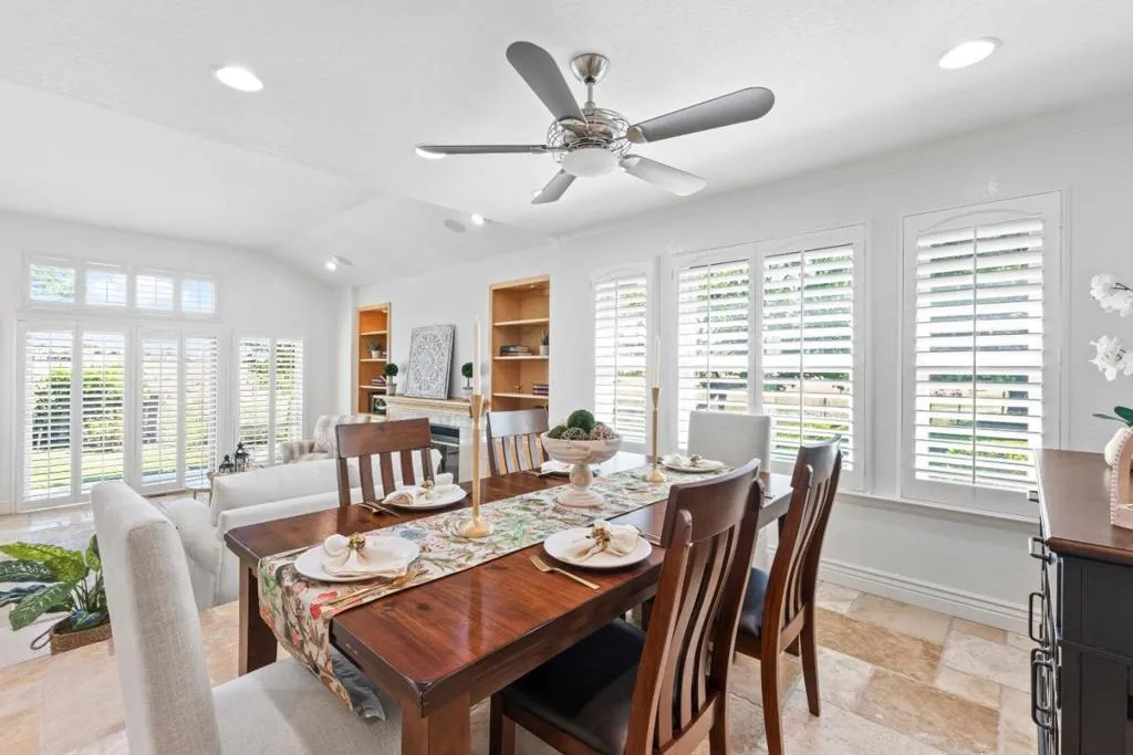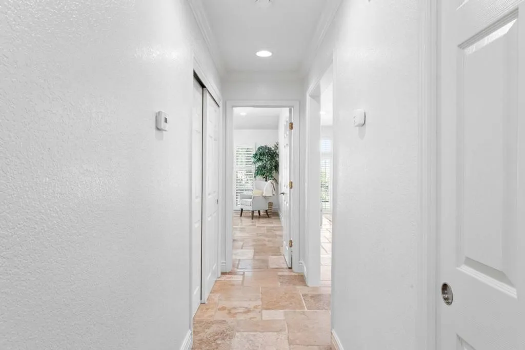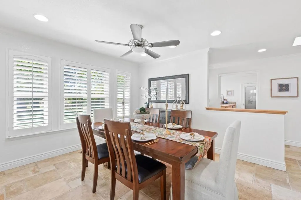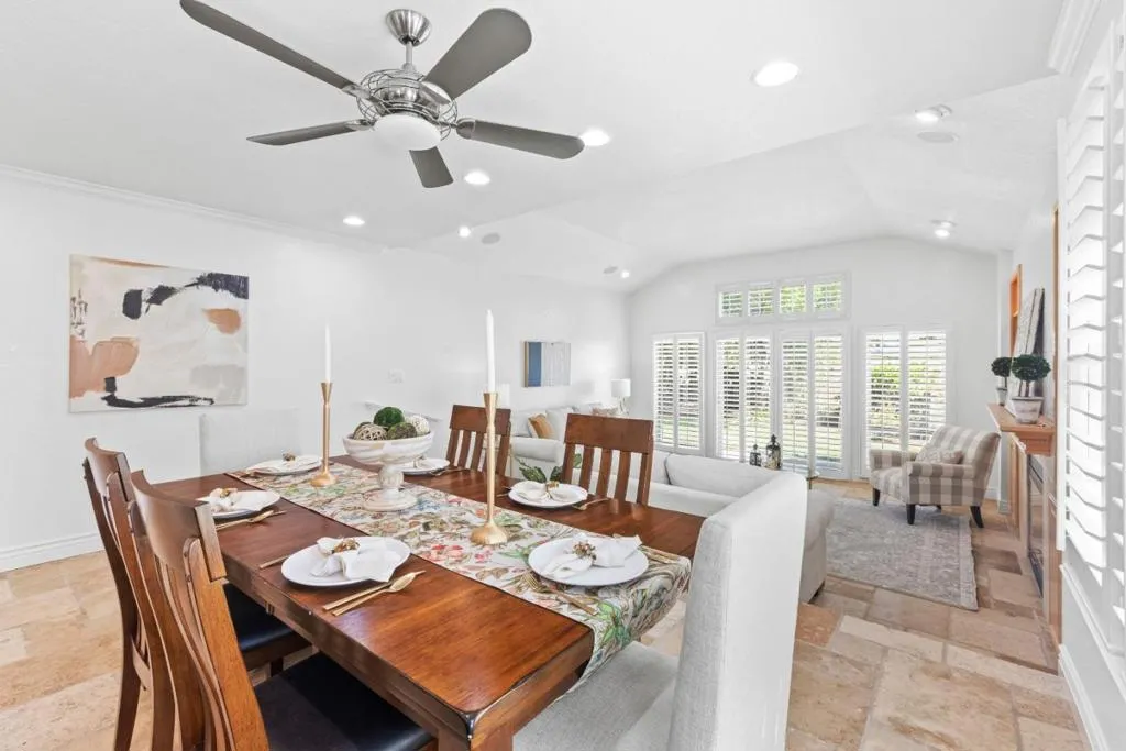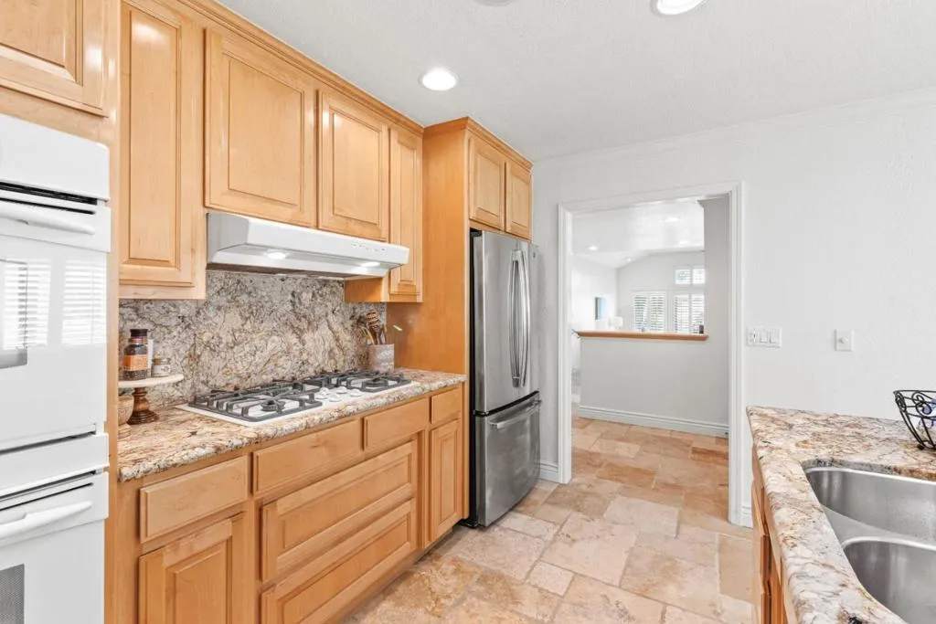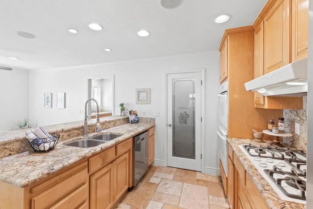 Don't miss out on this immaculate, single-story, end-unit townhome located in the scenic Bluffs community within the Ridgemark Golf Course! This airy and spacious 2 BD/2 BA 1600+ sq ft home features an open space dining room and step-down living room with fireplace. A full wall of windows including a sliding glass door bring in brilliant natural light and provide stunning views of the backyard and open pasture beyond. The kitchen, with a bi-level peninsula for counter dining, is open to a cozy breakfast nook and large adjoining laundry room. The large primary bedroom and ensuite bathroom open to the backyard patio. The second bedroom, with its own ensuite bathroom and office nook, opens to its own private courtyard. The home includes beautiful travertine floors throughout, built-in bookshelves, and a 2-car garage for plenty of storage. The stunning landscaping, all maintained by the HOA, provides a serene setting for this perfect home.