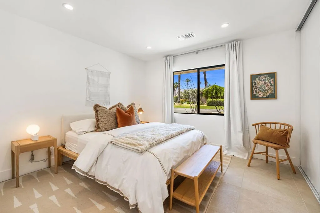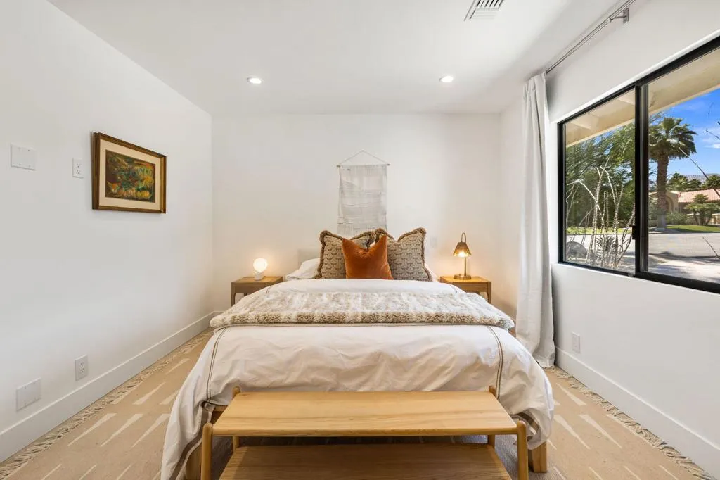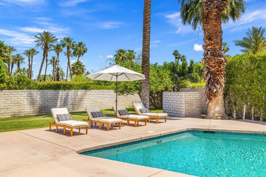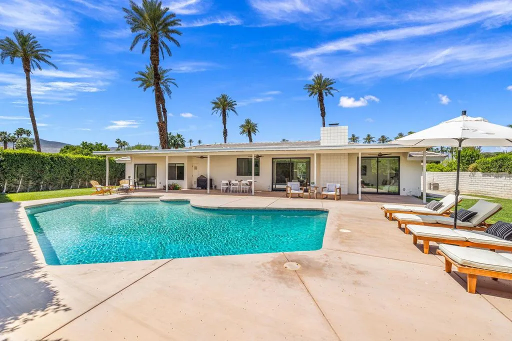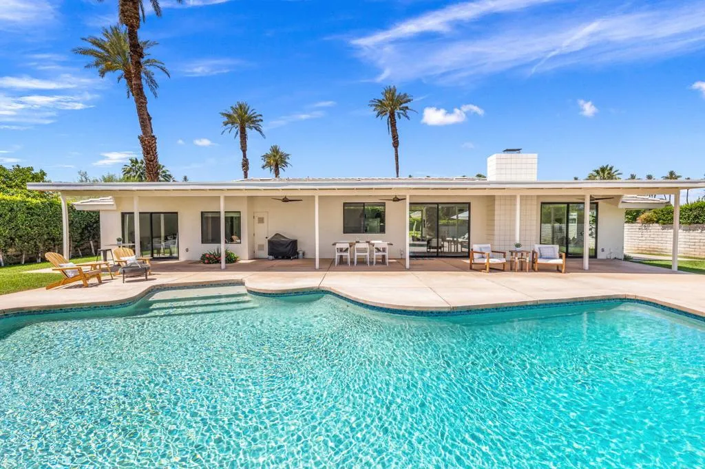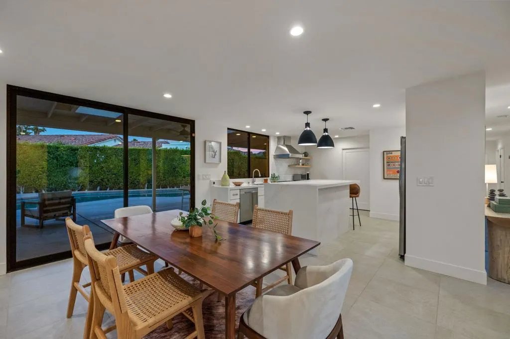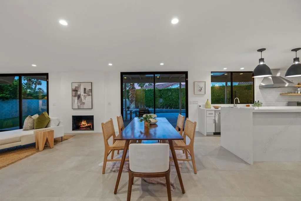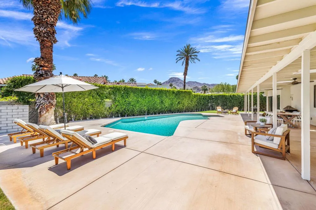 Located in the desirable non-gated neighborhood of Indian Wells, this extensively remodeled 3-bedroom home sits on an expansive lot and features a fully updated interior. The home offers 3 bedrooms and 2 bathrooms, with a complete renovation that includes an updated kitchen, updated bathrooms, new tile flooring throughout, and new windows. The open-concept living space flows into the kitchen, where an oversized island provides additional seating and serves as a central gathering point. Floor-to-ceiling windows and sliding glass doors bring in natural light and create a seamless transition to the backyard. The primary suite includes direct outdoor access and an en-suite bathroom with a sunken soaking tub, walk-in shower, and a large window that enhances the space with natural light. Situated on a 13,068 sq ft lot, the backyard offers a private setting with a pool, mountain views, and ample space for outdoor living, entertaining, or future expansion. Located on a residential street, this home is well-suited as a full-time residence or seasonal desert retreat. As a resident of Indian Wells, you'll have access to exclusive benefits, including discounted golf and dining, resort-style amenities, and privileges at the Indian Wells Tennis Garden.
