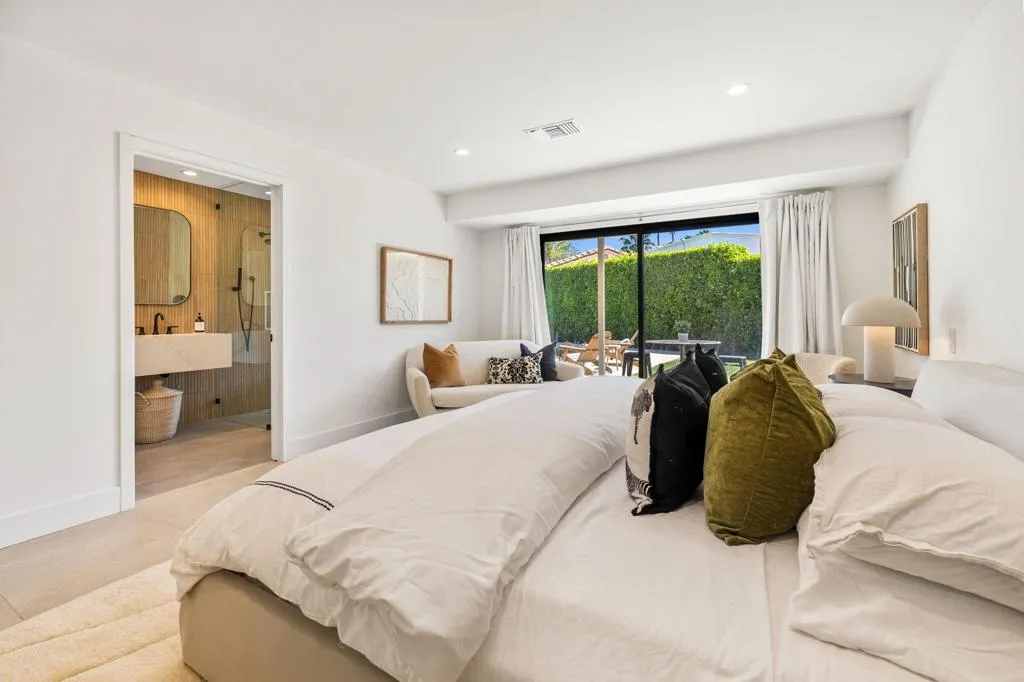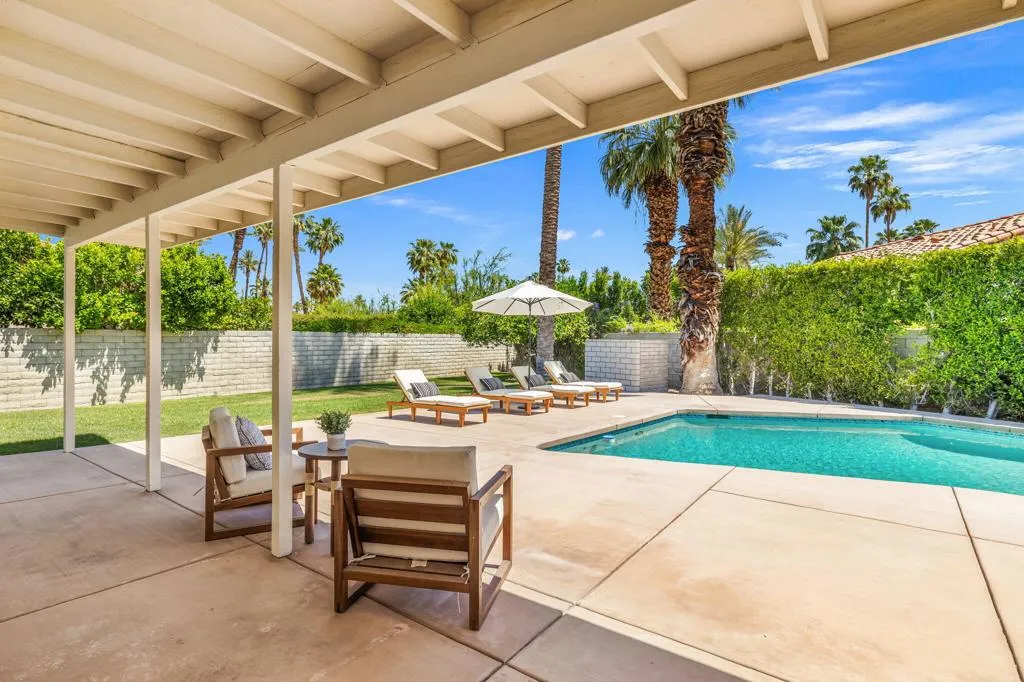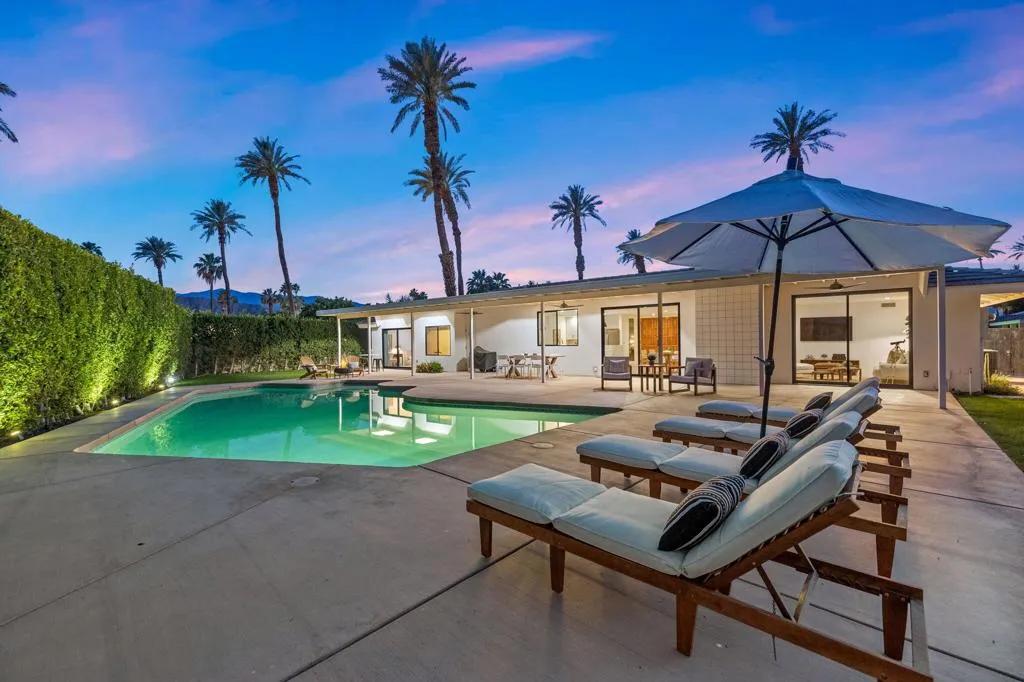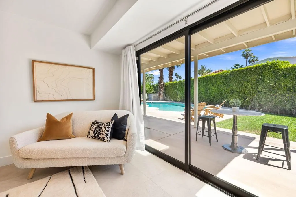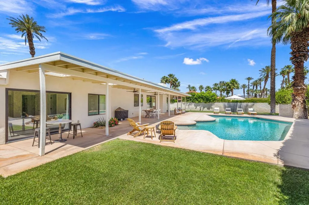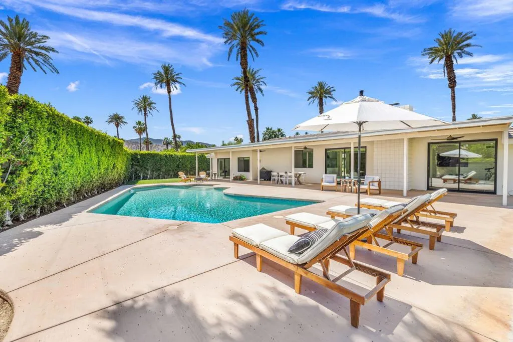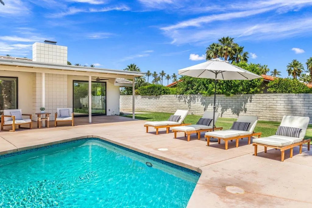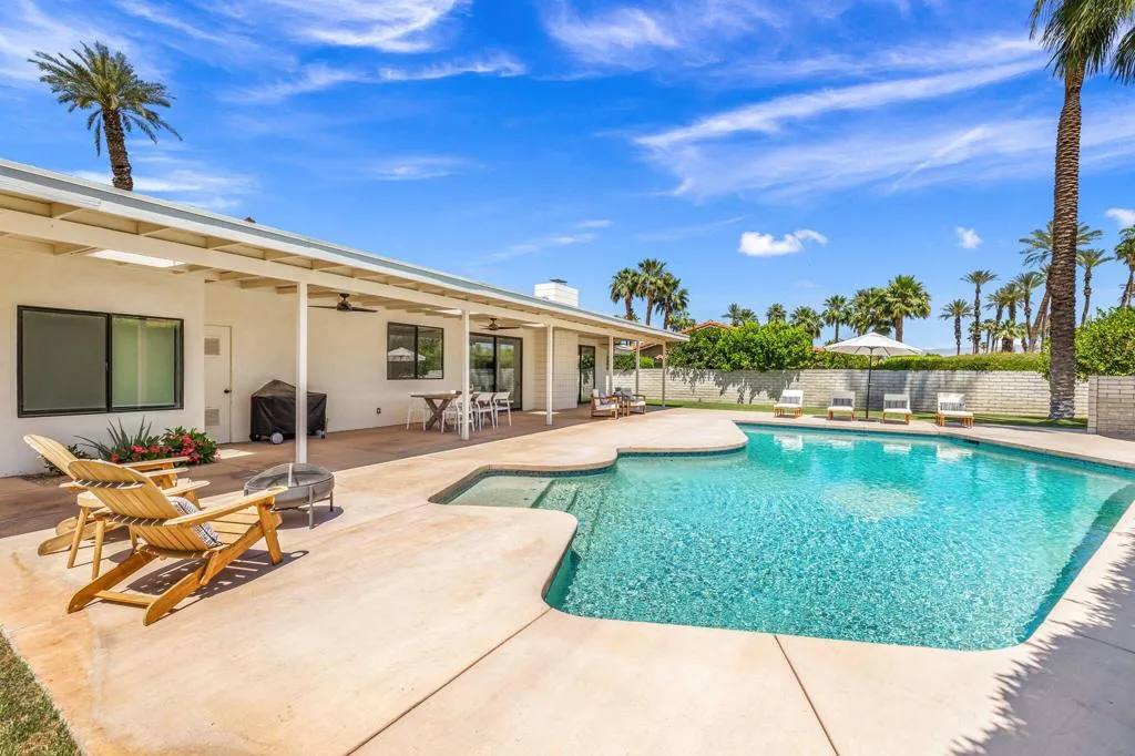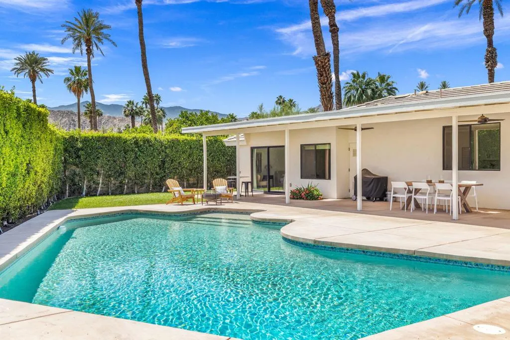 Located in the desirable non-gated neighborhood of Indian Wells, this extensively remodeled 3-bedroom home sits on an expansive lot and features a fully updated interior. The home offers 3 bedrooms and 2 bathrooms, with a complete renovation that includes an updated kitchen, updated bathrooms, new tile flooring throughout, and new windows. The open-concept living space flows into the kitchen, where an oversized island provides additional seating and serves as a central gathering point. Floor-to-ceiling windows and sliding glass doors bring in natural light and create a seamless transition to the backyard. The primary suite includes direct outdoor access and an en-suite bathroom with a sunken soaking tub, walk-in shower, and a large window that enhances the space with natural light. Situated on a 13,068 sq ft lot, the backyard offers a private setting with a pool, mountain views, and ample space for outdoor living, entertaining, or future expansion. Located on a residential street, this home is well-suited as a full-time residence or seasonal desert retreat. As a resident of Indian Wells, you'll have access to exclusive benefits, including discounted golf and dining, resort-style amenities, and privileges at the Indian Wells Tennis Garden.