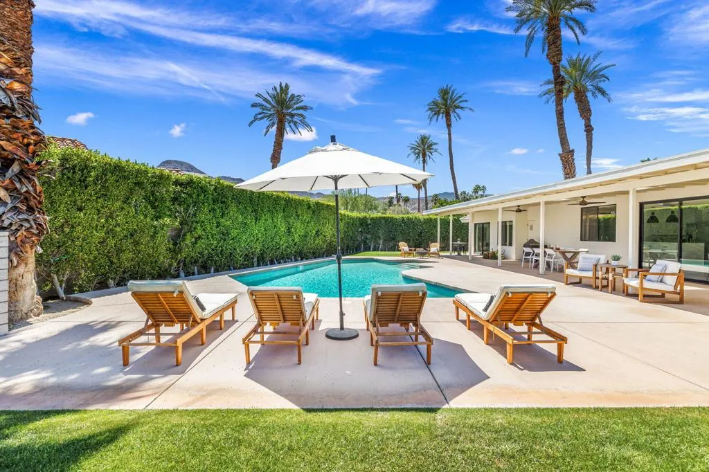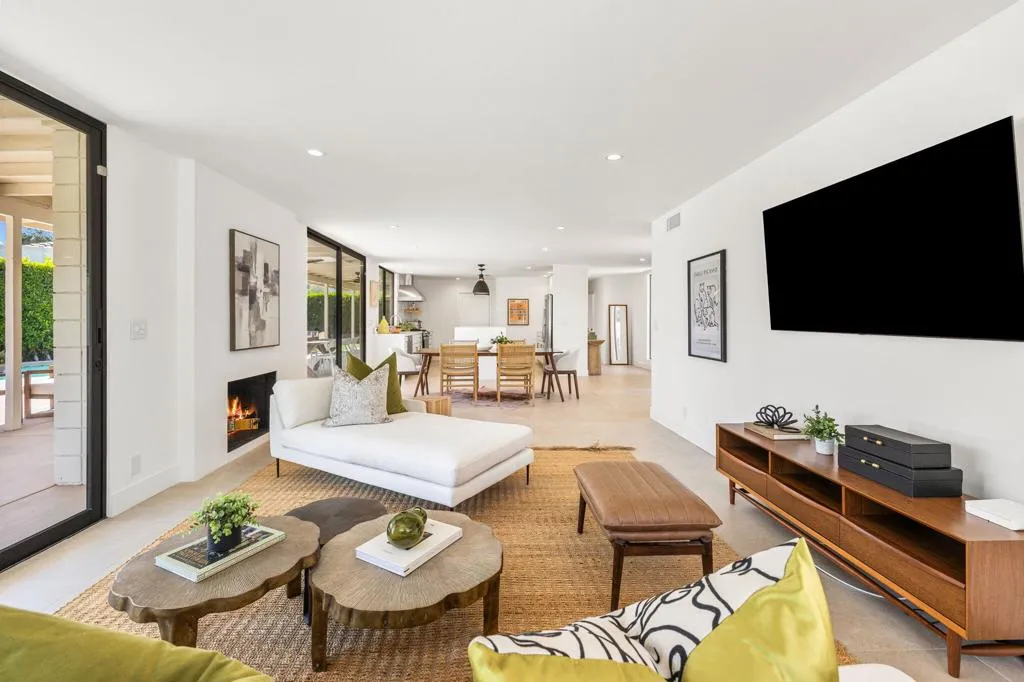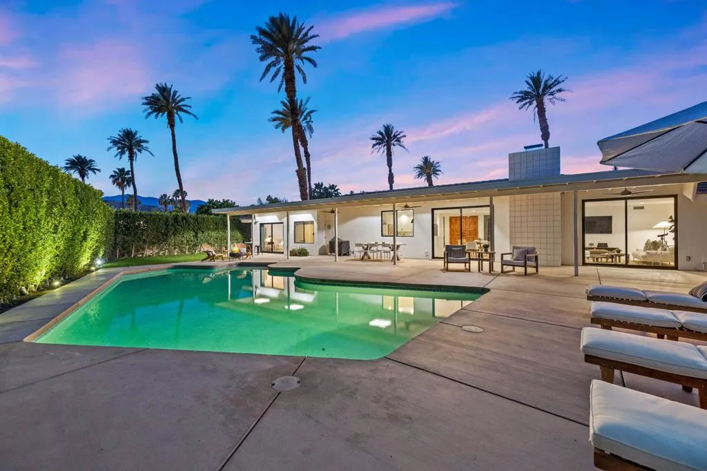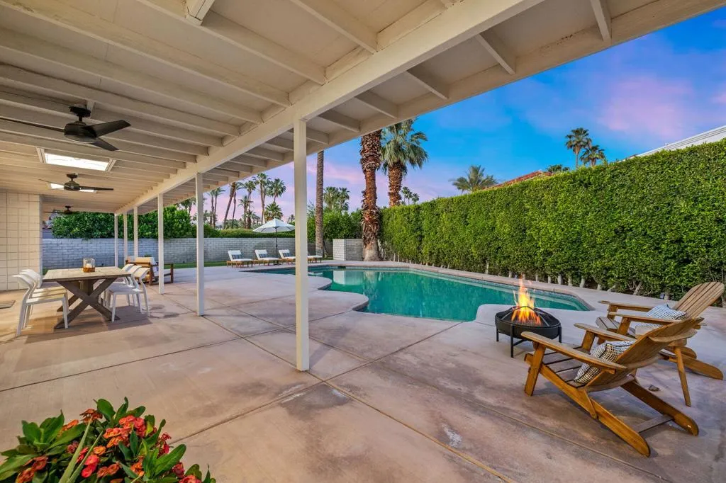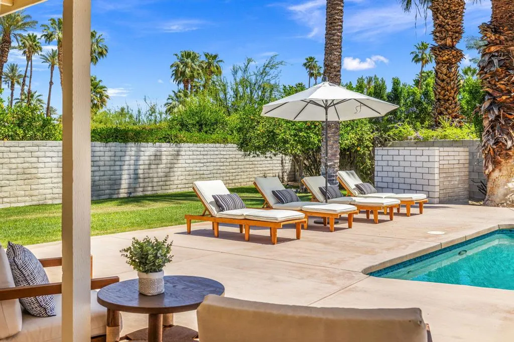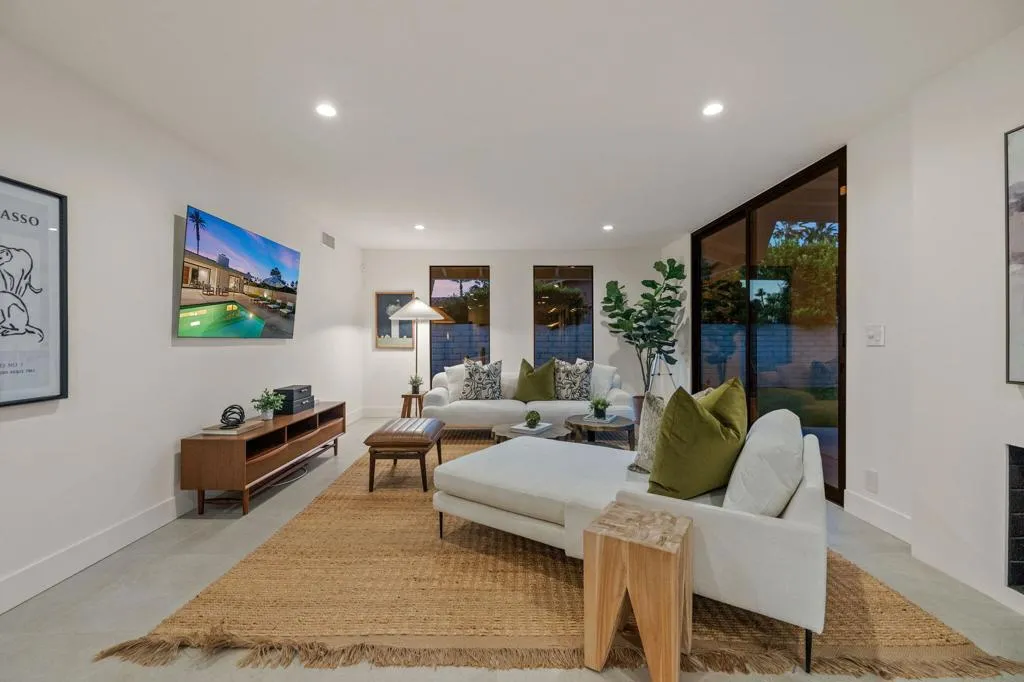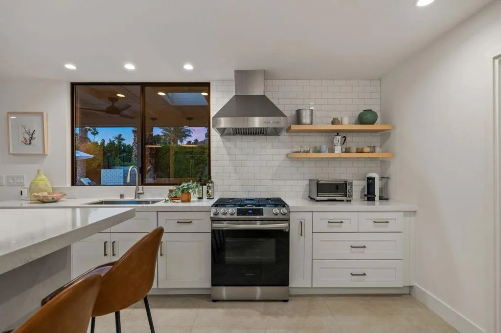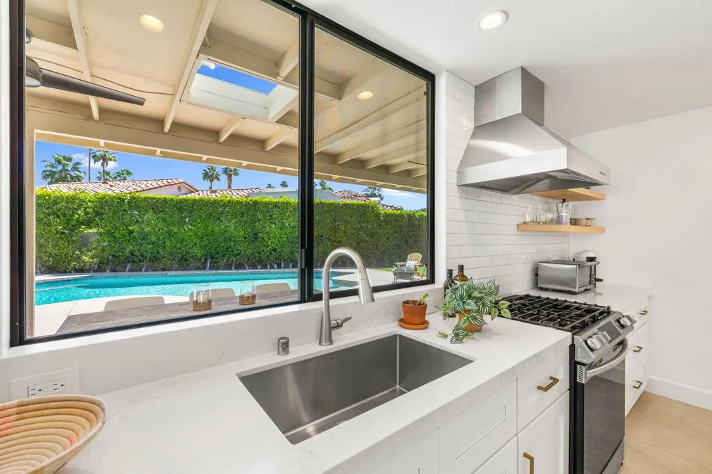 Located in the desirable non-gated neighborhood of Indian Wells, this extensively remodeled 3-bedroom home sits on an expansive lot and features a fully updated interior. The home offers 3 bedrooms and 2 bathrooms, with a complete renovation that includes an updated kitchen, updated bathrooms, new tile flooring throughout, and new windows. The open-concept living space flows into the kitchen, where an oversized island provides additional seating and serves as a central gathering point. Floor-to-ceiling windows and sliding glass doors bring in natural light and create a seamless transition to the backyard. The primary suite includes direct outdoor access and an en-suite bathroom with a sunken soaking tub, walk-in shower, and a large window that enhances the space with natural light. Situated on a 13,068 sq ft lot, the backyard offers a private setting with a pool, mountain views, and ample space for outdoor living, entertaining, or future expansion. Located on a residential street, this home is well-suited as a full-time residence or seasonal desert retreat. As a resident of Indian Wells, you'll have access to exclusive benefits, including discounted golf and dining, resort-style amenities, and privileges at the Indian Wells Tennis Garden.