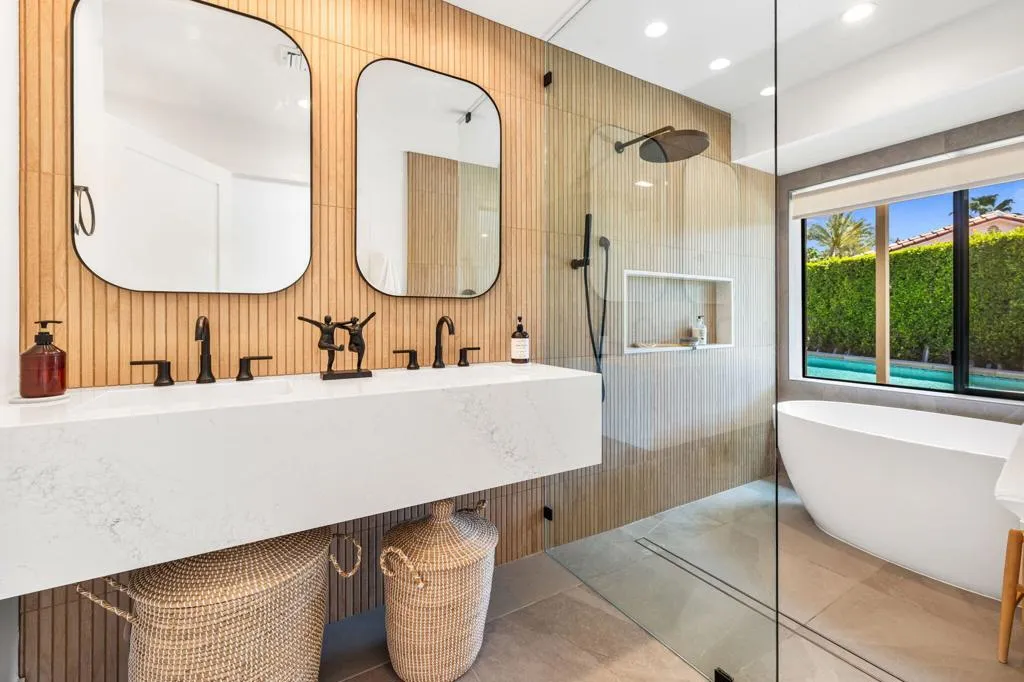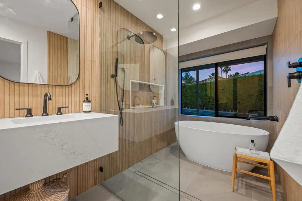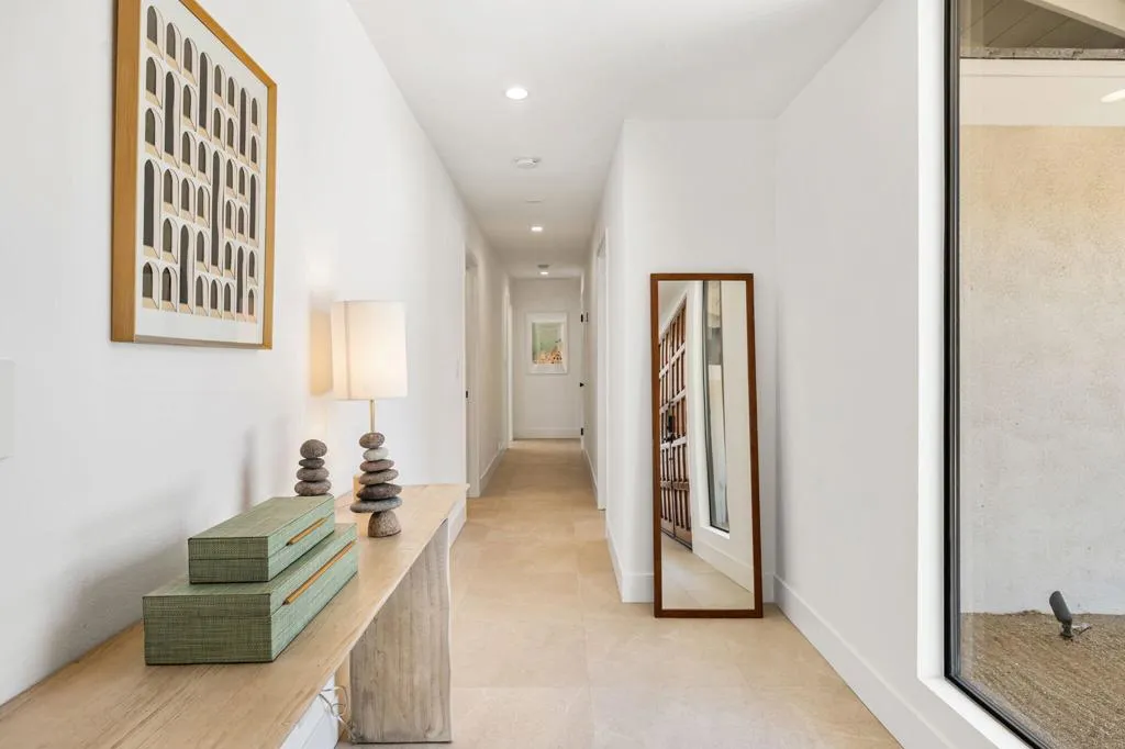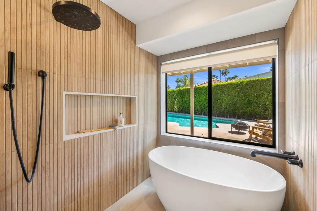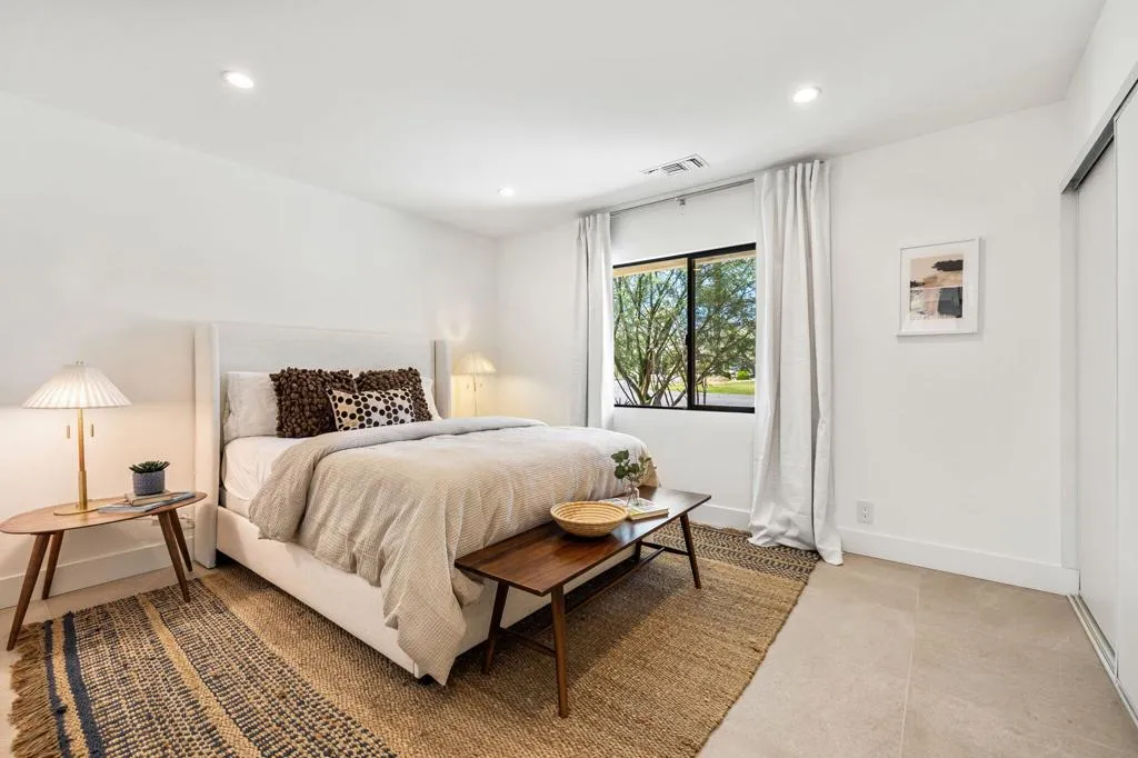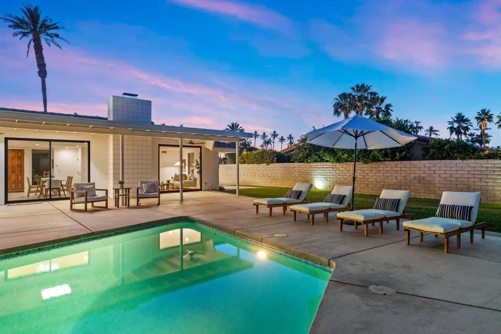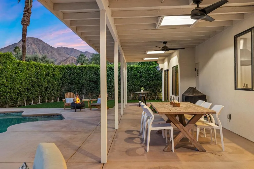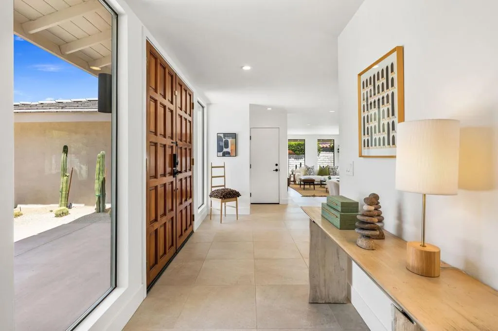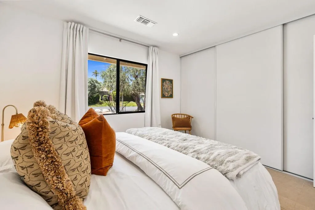 Located in the desirable non-gated neighborhood of Indian Wells, this extensively remodeled 3-bedroom home sits on an expansive lot and features a fully updated interior. The home offers 3 bedrooms and 2 bathrooms, with a complete renovation that includes an updated kitchen, updated bathrooms, new tile flooring throughout, and new windows. The open-concept living space flows into the kitchen, where an oversized island provides additional seating and serves as a central gathering point. Floor-to-ceiling windows and sliding glass doors bring in natural light and create a seamless transition to the backyard. The primary suite includes direct outdoor access and an en-suite bathroom with a sunken soaking tub, walk-in shower, and a large window that enhances the space with natural light. Situated on a 13,068 sq ft lot, the backyard offers a private setting with a pool, mountain views, and ample space for outdoor living, entertaining, or future expansion. Located on a residential street, this home is well-suited as a full-time residence or seasonal desert retreat. As a resident of Indian Wells, you'll have access to exclusive benefits, including discounted golf and dining, resort-style amenities, and privileges at the Indian Wells Tennis Garden.