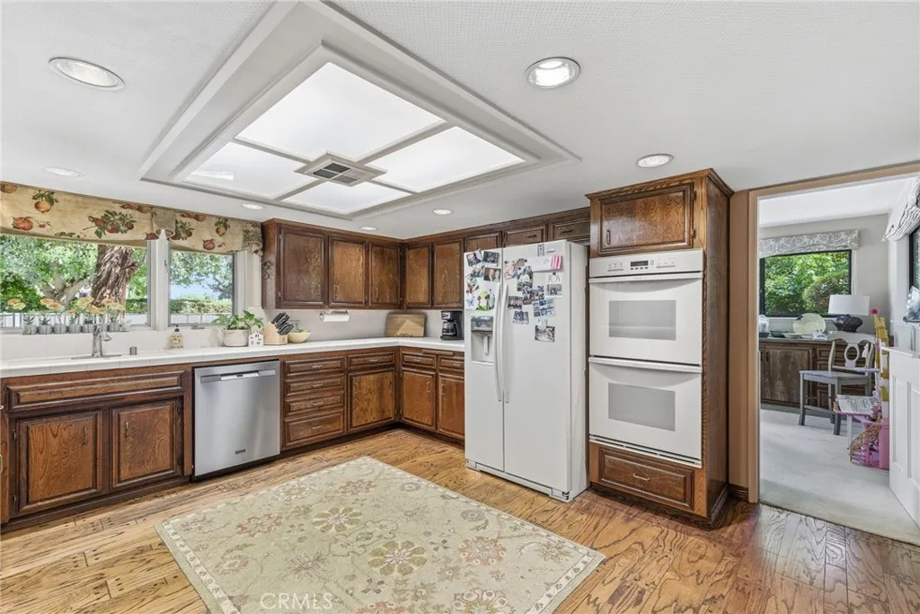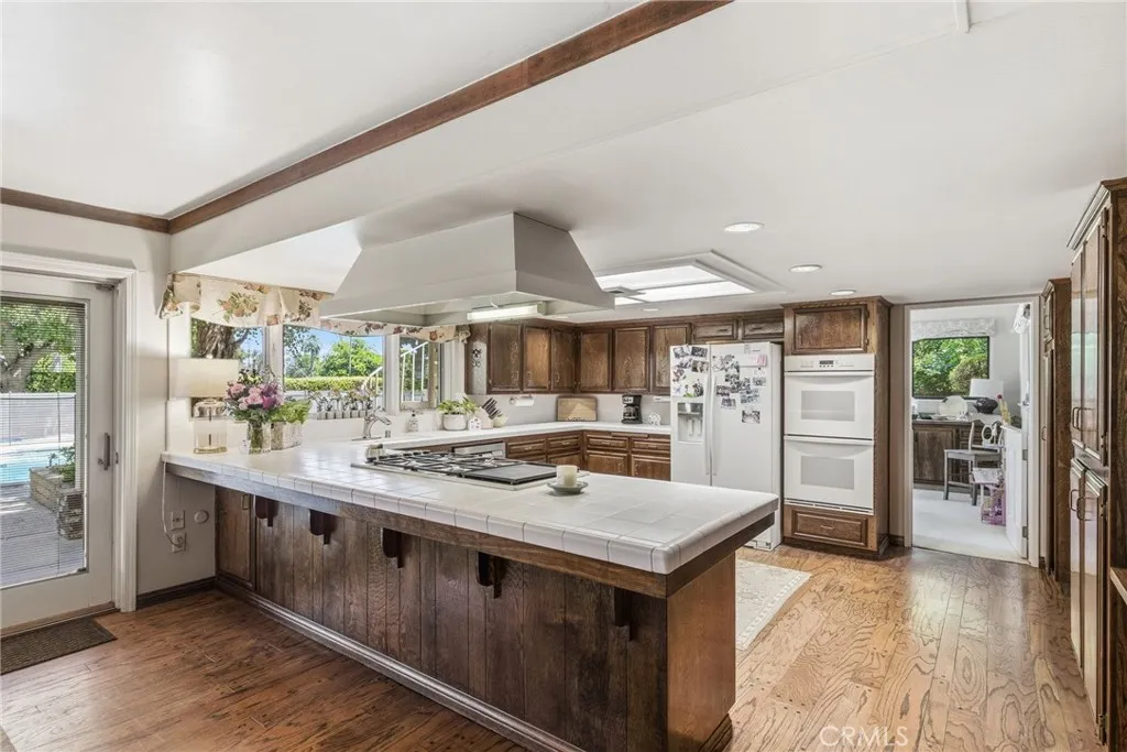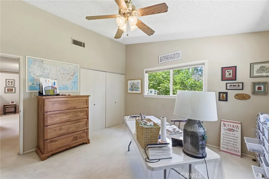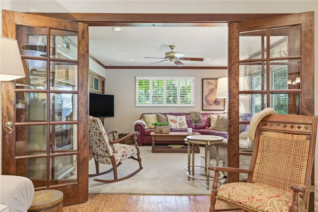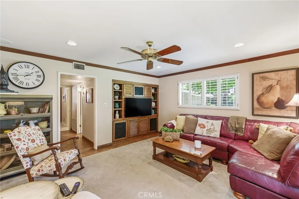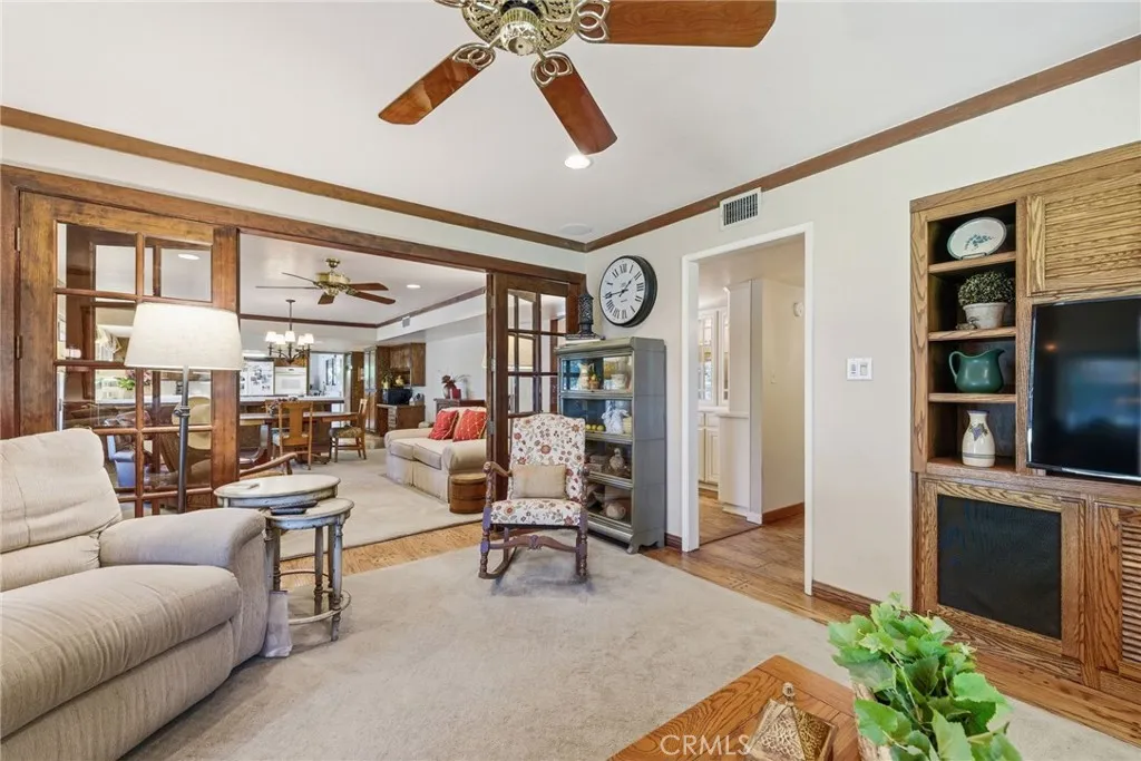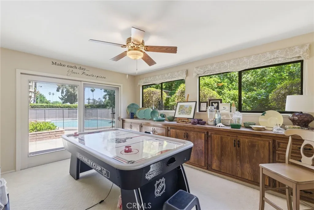 Classic Deeter-plan Calif. Contemporary home on 18th green of the Sundale Country Club & only a 150 yard walk to Clubhouse! Great location, on quiet cul-de-sac street, great views, in good condition, many upgrades, 1/2 acre lot, huge backyard, big trees, large fenced pool & spa, BBQ kitchen, Pergola, gas firepit, 2 large covered patios, plenty of room for everyone & everything, designed for enjoying all the important elements & occasions of life: family, friends, house guests, entertaining, extended family, pets, the outdoors, swimming, golfing, BBQing, gardening & an active lifestyle. 5 big bdrms, 3 baths, could easily be 6 bdrms, 3,415 sq.ft.. 1 bdrm & 1 bath on 1st floor-ideal for guests or extended family. Formal living rm with beautiful granite fireplace, dramatic vaulted ceilings, formal dining area, expansive kitchen with 2 Dacor ovens, 4-burner gas cooktop with electric griddle, full-sized vent hood, home desk & breakfast bar, game rm/office, family rm/breakfast area with fireplace/heating stove, den/media rm with custom wall unit (originally a 6th bedroom), laundry/craft rm, office off of Primary brdm. with built-in desks & cabinets. Big balcony, over-sized 2-car garage with lots of cabinets, workbenches & storage. Pomegranate, apricot, orange & lemon trees. Entire house replumbed with copper piping. Easily add RV parking next to garage. Classy & comfortable. Excellent price!