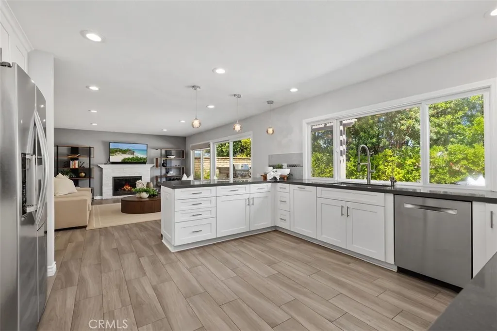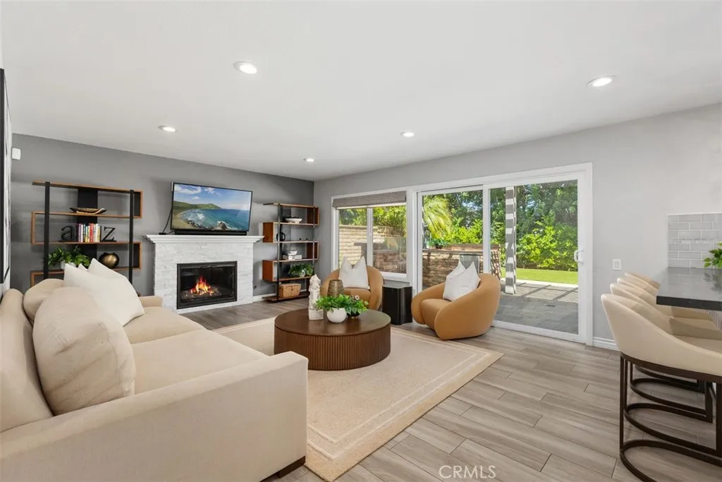 BEAUTIFULLY UPGRADED MADRID CASA SARGA HOME WITH POTENTIAL FOR DOWNSTAIRS 6TH BEDROOM OPTION AND POOL-SIZED ENTERTAINER’S BACKYARD! Welcome to 26841 Salinas Lane, nestled in the highly desirable Madrid South community of Mission Viejo. This stunning home welcomes you with soaring vaulted ceilings, a sweeping staircase, a formal living room, and an abundance of natural light streaming through expansive windows. The home features a soft, neutral color palette and stylish wood-look tile flooring. The beautifully remodeled kitchen showcases quartz countertops, white shaker cabinetry, stainless steel appliances, a walk-in pantry, and a convenient eat-in breakfast counter, all complemented by a picturesque window overlooking the backyard. The kitchen opens seamlessly to the family room with a cozy fireplace and sits adjacent to the dining room, creating an ideal layout for both everyday living and entertaining. Step outside to your meticulously maintained, pool-sized backyard, an entertainer’s dream, complete with a built-in BBQ, multiple seating areas, a fire pit, and a large open lawn with low-maintenance artificial turf. Upstairs, you’ll find luxury vinyl plank flooring throughout, no carpet. The spacious primary suite offers a large walk-in closet and an en-suite bathroom with dual sink vanity and a walk-in shower. Four additional bedrooms, a generous linen closet, and a secondary bathroom with dual sinks and a tub/shower combo featuring subway tile complete the upper level. Additional highlights include a new electrical panel, EV ready 220V outlets in garage, Google Nest smart thermostat, security cameras, an option for a downstairs 6th bedroom, indoor laundry, and a spacious 3-car garage with convenient storage cabinets and epoxy flooring. Inquire for information about MULTIPLE SCHOOL OPTIONS unique to this neighborhood. Enjoy your Lake Mission Viejo membership with swimming, BBQ’s, fishing, boat & paddleboard rentals, concerts & events. Just a short stroll away is SIERRA REC CENTER with multiple membership options to the pool, spa, water slide, fitness center, & more as well as walking and biking trails, Mission Viejo Country Club, the 5 freeway, shopping & restaurants and only a 10-15 minute drive to world class beaches, 5-star resorts, Laguna Beach, Dana Point Harbor, the Lantern District & MORE! Welcome Home!