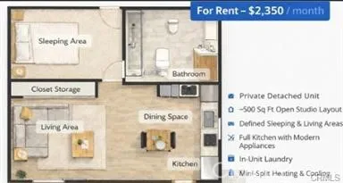Newly 2026 Built Studio for Rent – Whittier, CA. Welcome to this beautifully designed, newly built fully detached studio. This modern 500 sq ft unit offers a smart and functional layout, featuring a private small sleeping area, full bathroom, small kitchen, laundry hookup, combined living/dining space, private outdoor space-—perfect for comfortable everyday living, wall A/C mini-split unit. Since this is a new built, it's still not showing in GPS. Situated behind the main house, this unit provides added privacy with its own access through the driveway. Ideal for those seeking a quiet and convenient place to call home. Pet ok with deposit. Features: Street parking available, Located in a quiet residential neighborhood, Close to shopping, dining, and major freeways This is a great opportunity to live in a fresh, modern space in a desirable Whittier location. No Smoking.