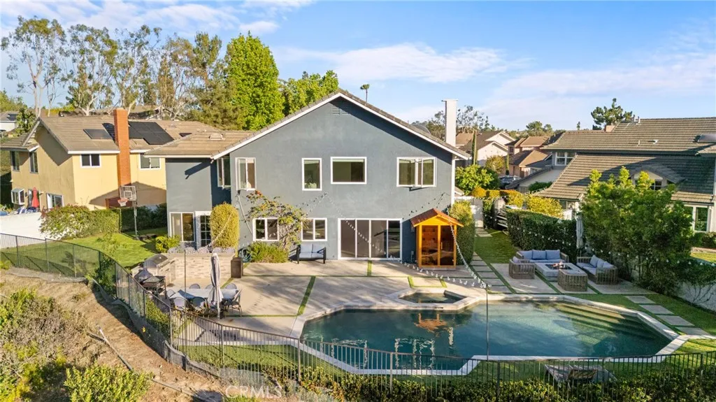 RARE!! DESIGNER HOME w/ PREMIUM VIEW & POOL LOT! This stunning, jaw-dropping residence offers 5 bedrooms, 3 full bathrooms, a 3-car attached garage, and an expansive 9,600 SqFt view lot - truly a rare opportunity. This is what you've been waiting for! The light-filled, open floor plan showcases thoughtfully curated designer upgrades, including custom paint, newer windows, custom light fixtures, custom cabinetry throughout, upgraded flooring, recessed lighting, and beautifully remodeled designer bathrooms, kitchen, and laundry room + more. Every detail has been executed with precision and care. The oversized kitchen and spacious family room seamlessly overlook the exceptional backyard, featuring a private pool and sweeping views. The 9,600 SqFt lot is both rare and remarkably private, enhanced by professional landscaping. Situated at the end of a cul-de-sac on a single loaded street, this home enjoys added privacy with no rear neighbors and a serene view, the space behind the home is HOA-maintained greenery. The home enjoys breathtaking 180-degree views of rolling hillsides, city lights, and year-round sunsets. The expansive side yards are low maintenance, featuring custom turf and offering ideal spaces for entertaining. Inside, the first floor includes a desirable main-level bedroom, a full bathroom with shower, and an individual laundry room complete with custom built-ins and drying racks. Upstairs, the generous primary suite offers picture windows framing spectacular sunset views, elevated ceilings, a custom-designed bathroom, closet built-ins, and more. Three additional upstairs bedrooms are spacious and well-appointed, complemented by an oversized hall bathroom. The three-car garage provides direct access and ample storage. This home strikes the perfect balance between an entertainer’s dream and a private retreat, embodying pristine quality throughout. Truly a MUST-SEE property—just bring your toothbrush and move right in. Enjoy all that Laguna Niguel has to offer, including nearby parks, scenic trails, and open spaces that enhance the lifestyle appeal. Experience resort-style living right in your own neighborhood! Conveniently located near shopping, entertainment, fine dining, top-rated schools, and more.Schedule your private showing today, this exceptional home will not last long!!
