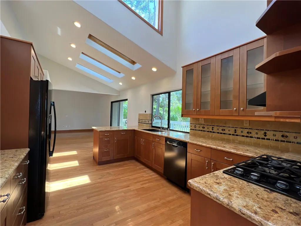 Nestled among lush greenery in the highly sought-after Turtle Rock Vista neighborhood, this exceptionally private and quiet home offers a spacious layout designed to maximize its beautiful surroundings. The home features a unique reverse floorplan, placing the main living areas and three bedrooms on the upper level to take advantage of the sweeping sightlines. You can enjoy Southern California's indoor-outdoor lifestyle with multiple outdoor spaces on this floor alone, including a living room balcony with stunning city views, a second balcony off the kitchen and den, and a private patio connected to the primary bedroom. Property Highlights: Main Level (Upstairs): 3 bedrooms (including the primary suite with patio), kitchen/den with balcony, and a living area with a city-view balcony. Lower Level (Downstairs): 2 private bedrooms, a full bathroom, a laundry room, and a utility room. Parking & Storage: Attached 2-car garage with convenient utility room access, plus plenty of additional exterior parking. The Atmosphere: Surrounded by mature trees and greenery, offering ultimate privacy and a peaceful, quiet environment. This layout is incredibly versatile, making the downstairs area perfect for a guest suite, multi-generational living, or a quiet and secluded home workspace.