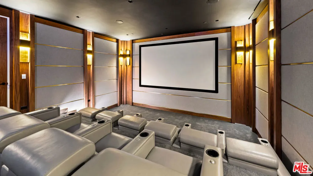 An extraordinary architectural estate by Iconic x Paul McLean, this warm, organic masterpiece showcases sweeping views of Downtown and Century City and offers 5 bedrooms with an option for 6, 10 bathrooms, and an unparalleled collection of amenities. Designed for elevated living and entertaining, the expansive backyard unfolds with a full outdoor kitchen, generous seating areas, fire pit, pool cabana, and a striking 80-foot zero-edge infinity pool with a jacuzzi accommodating up to 20 people, all seamlessly connected to the home through walls of floor-to-ceiling glass. Inside, soaring ceilings and abundant natural light define the open-concept layout, where a formal living room, elegant dining space, and a sophisticated wet bar with wine refrigerators complement a glamorous chef's kitchen featuring bespoke white cabinetry and top-of-the-line Miele and Sub-Zero appliances. The primary suite is a true retreat, complete with a dramatic stone fireplace, private deck overlooking the grounds, showroom-style walk-in closets with custom walnut cabinetry, and a luxurious bath with double shower and freestanding soaking tub. Wellness and lifestyle amenities abound, including a daylit gym with a stone waterfall, a serene spa with sauna, steam shower, and massage room, a private theater, climate-controlled wine cellar, and an office with its own entrance. A tranquil Zen-inspired entry sets the tone, while Crestron control, Lutron lighting and shades, and parking for four cars complete this one-of-a-kind residence in one of the most desirable zip codes in the world.